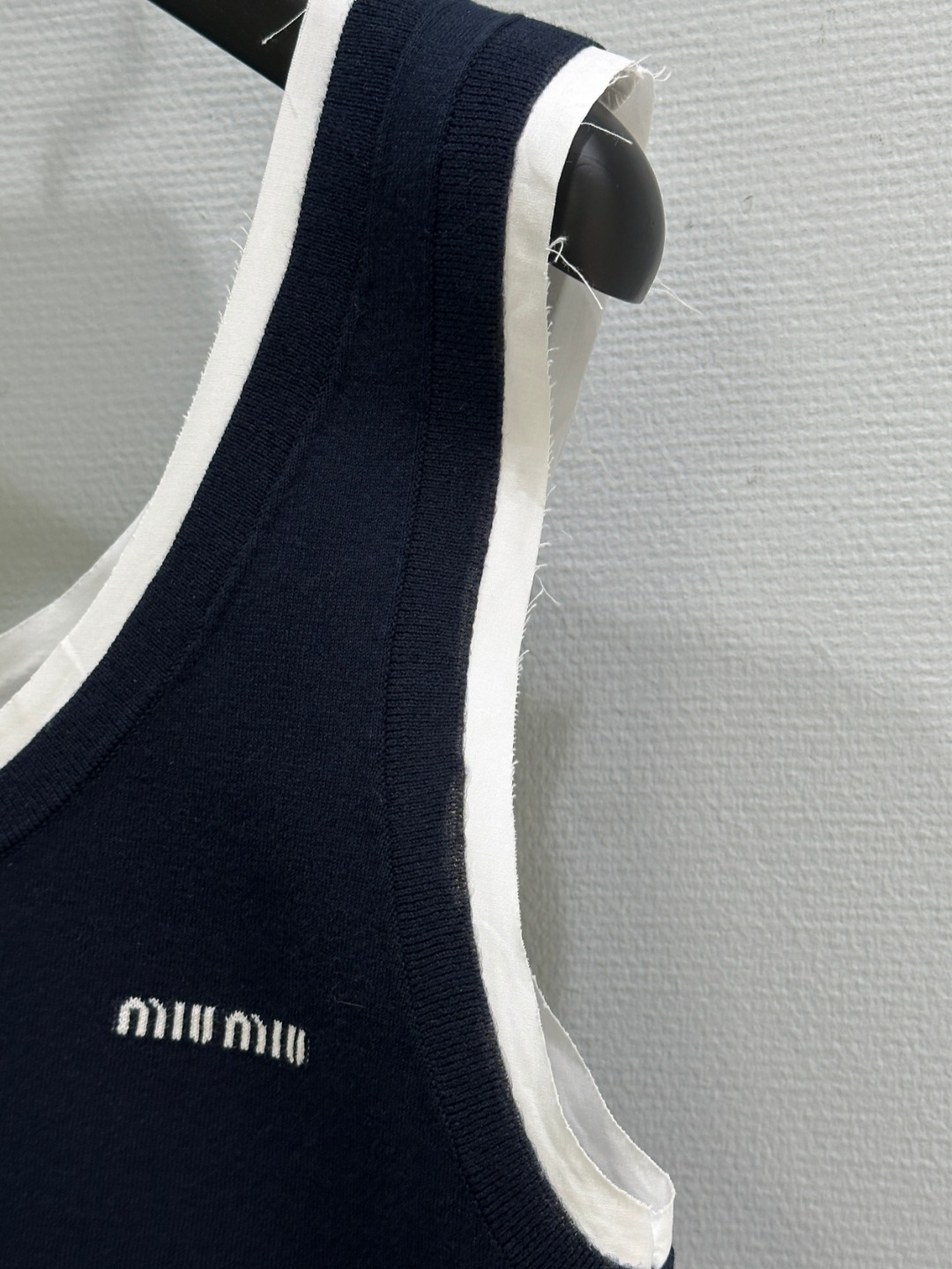 这款衣服是AAAAA 1:1 质量 (非常棒). 使用了和原版一模一样的材料. 商标部分也保持了和缪缪/Miu Miu一样. 图片拍摄是实物衣服拍摄, 您所收到的实物保证和我们图片一模一样.
