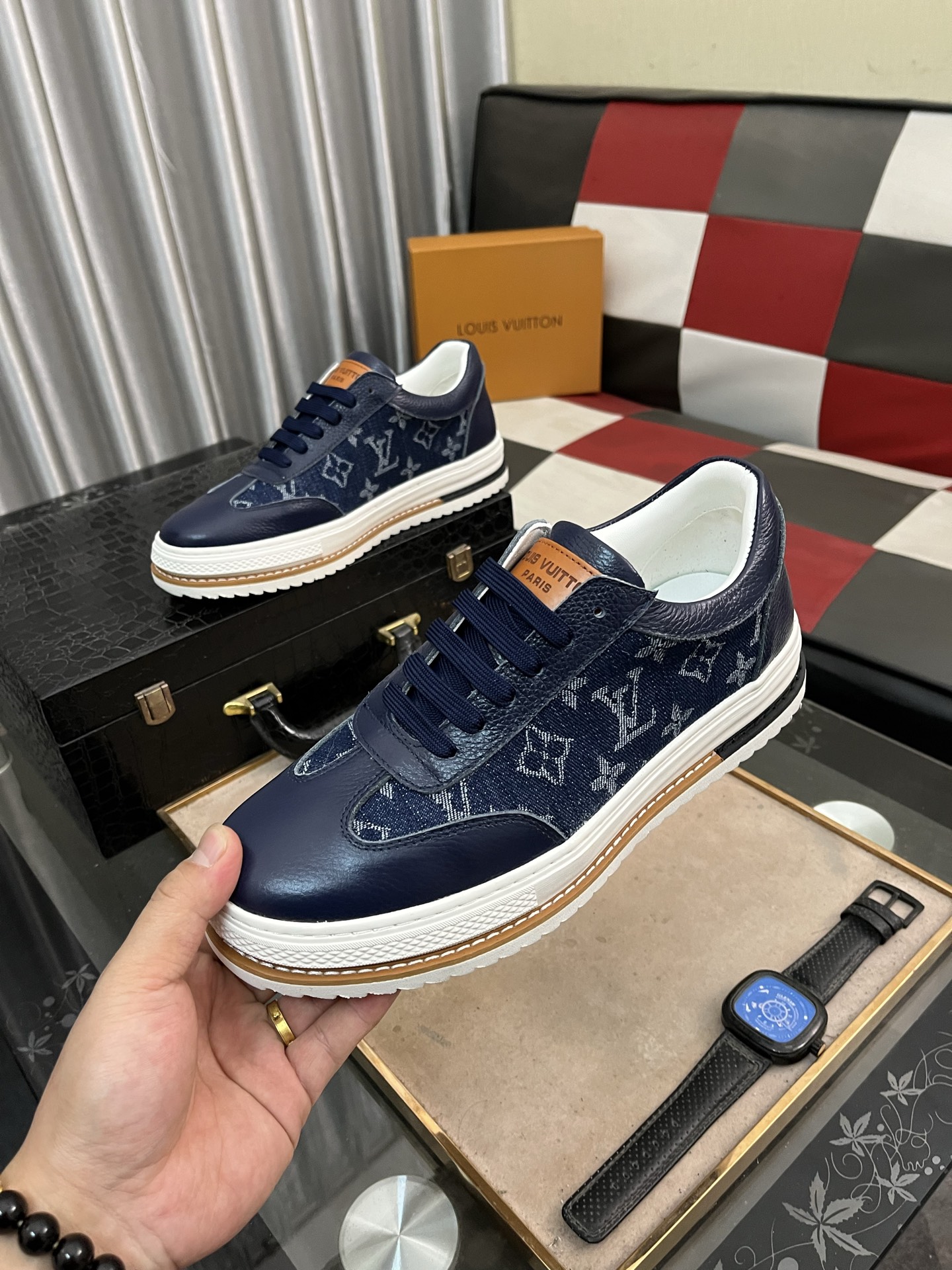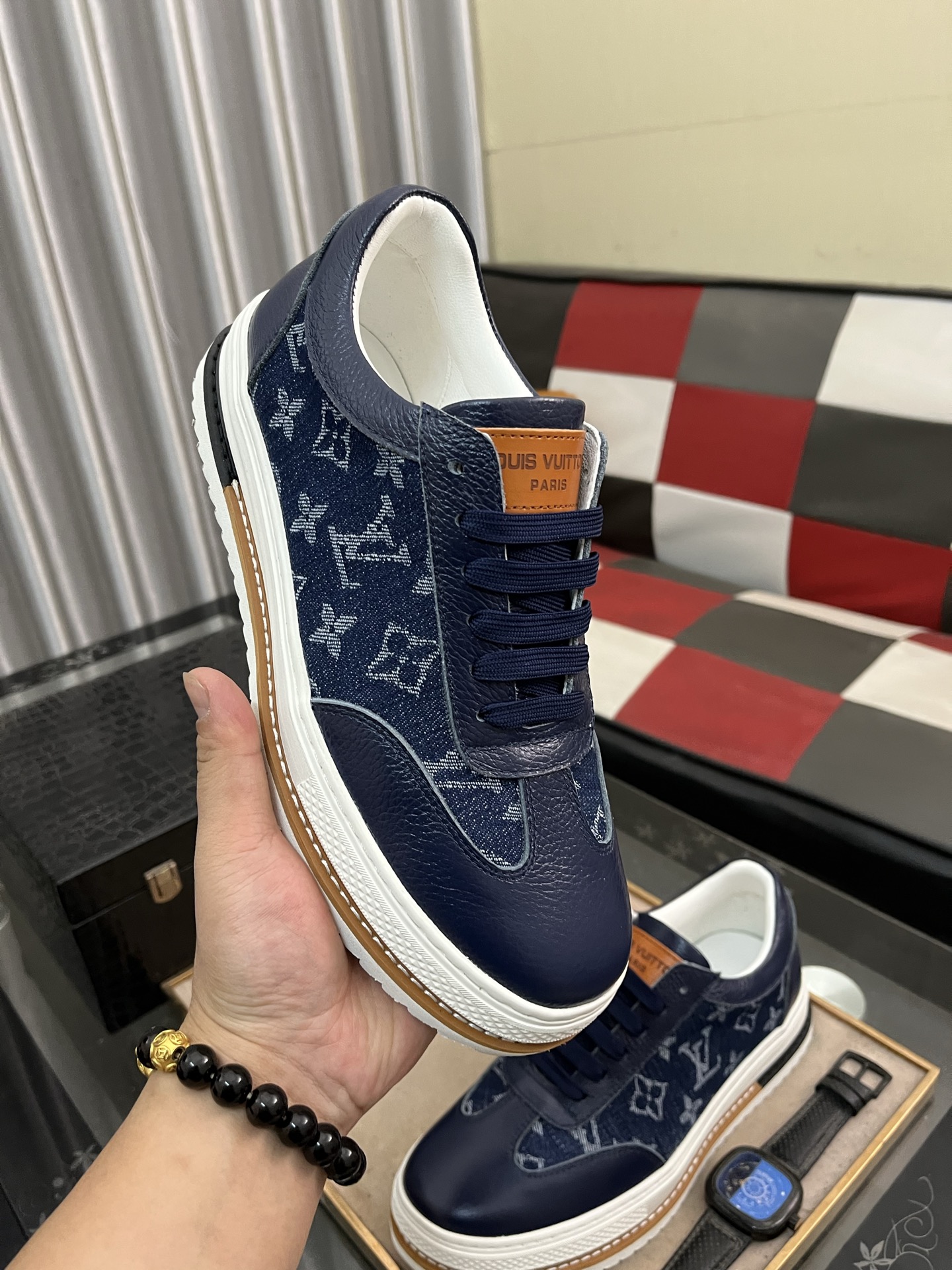 这款鞋子是AAAAA 1:1 质量 (非常棒). 使用了和原版一模一样的材料. 商标部分也保持了和路易威登/Louis Vuitton一样. 图片拍摄是实物鞋子拍摄, 您所收到的实物保证和我们图片一模一样.