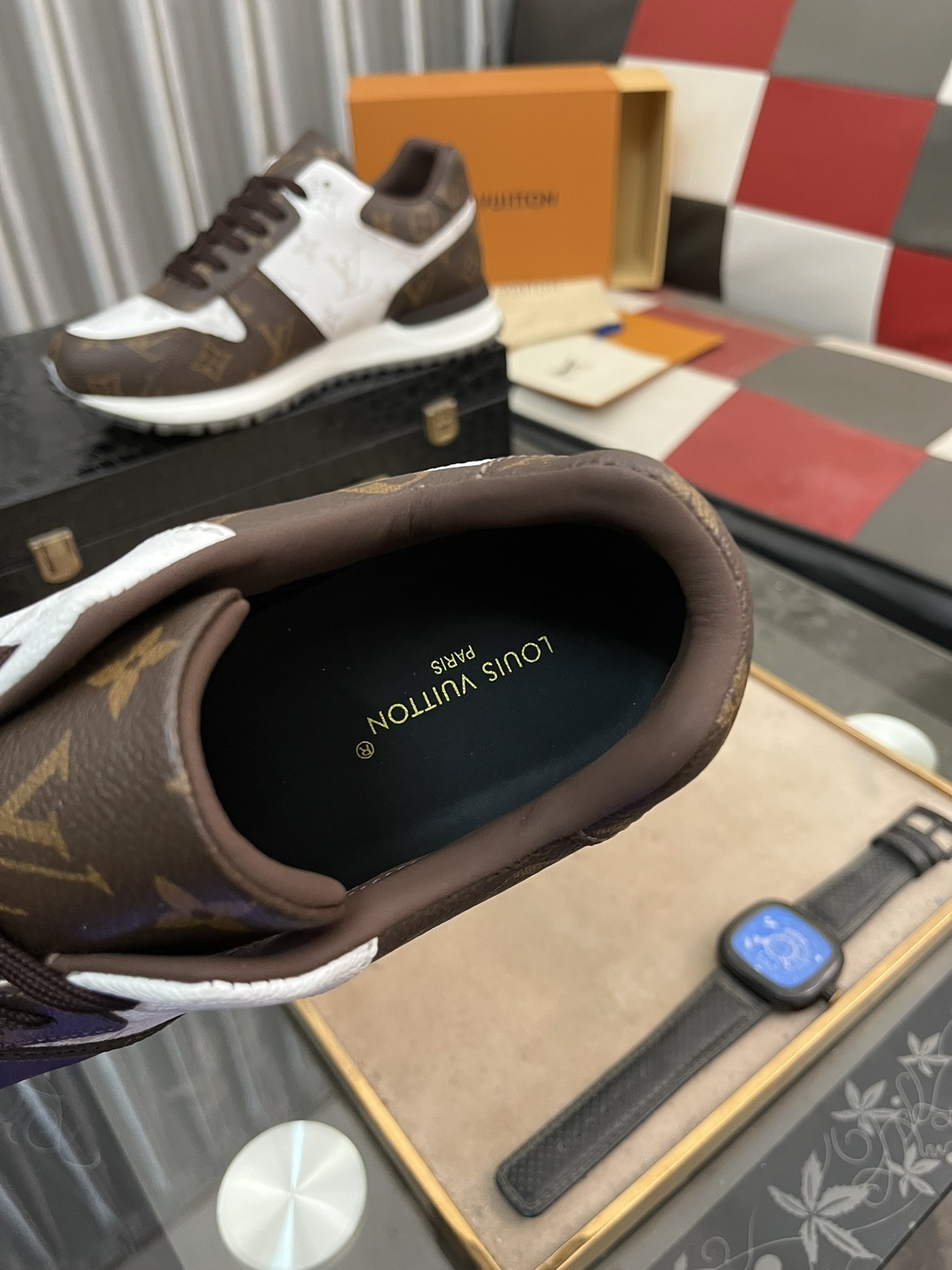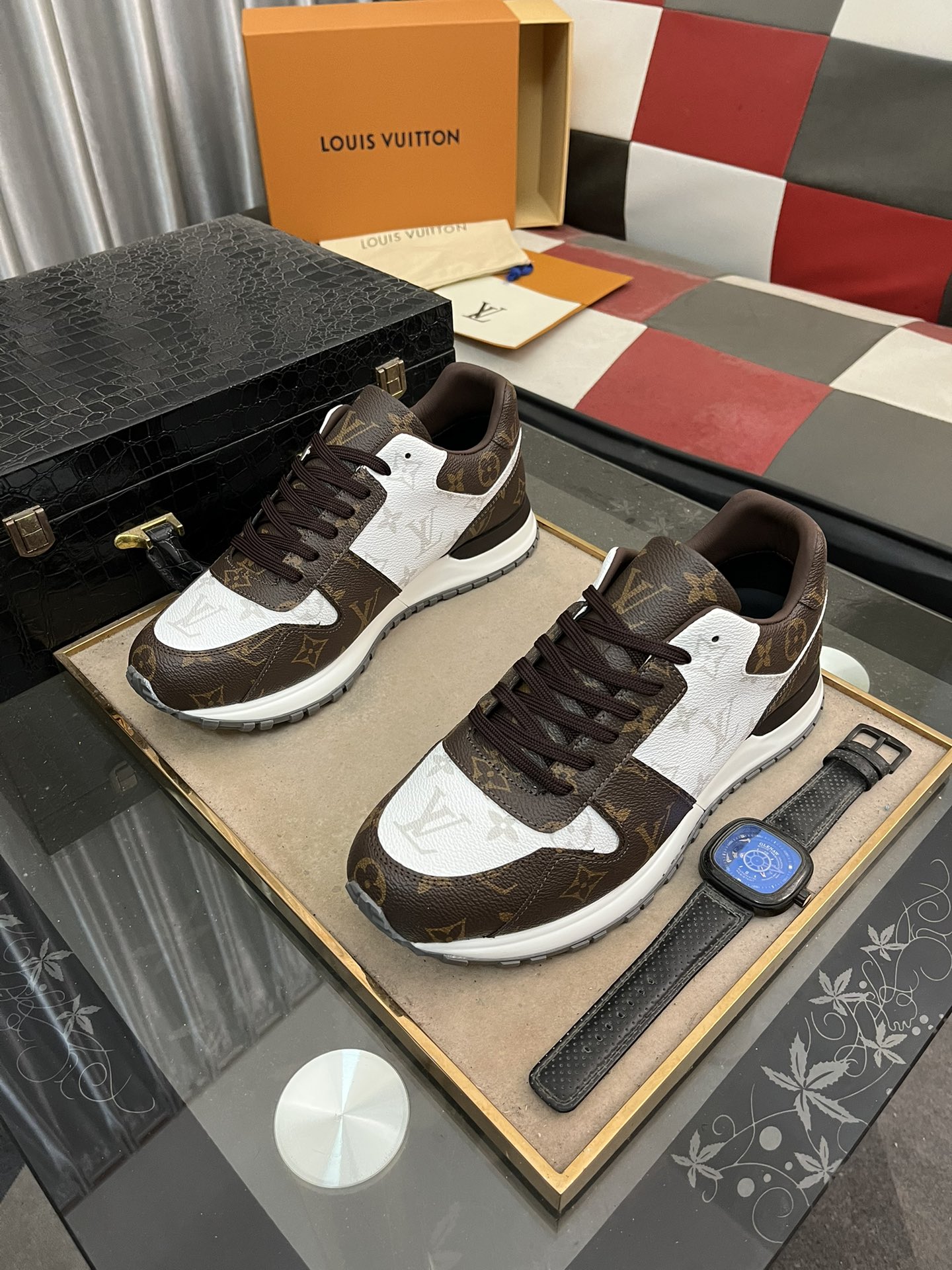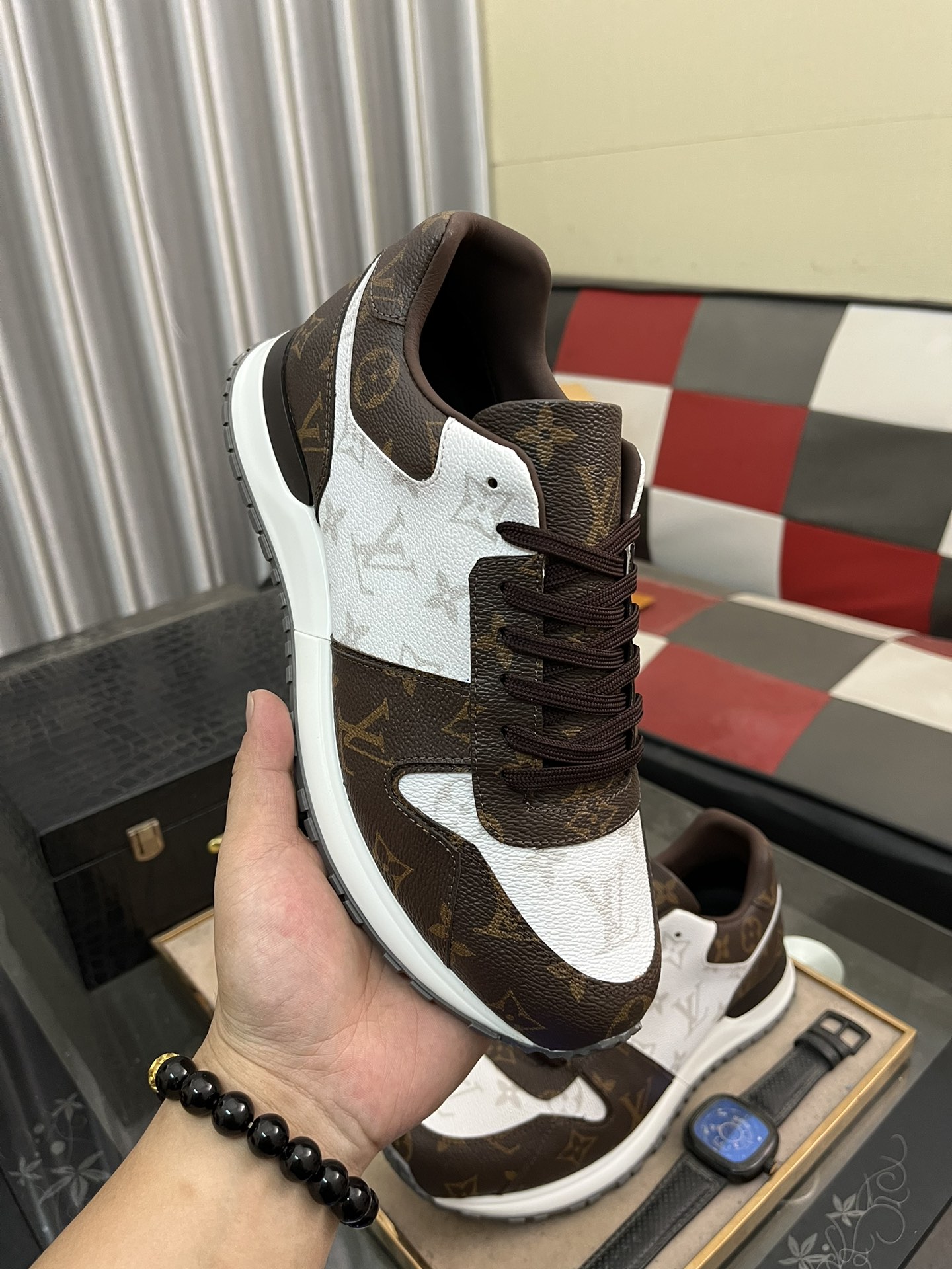 这款鞋子是AAAAA 1:1 质量 (非常棒). 使用了和原版一模一样的材料. 商标部分也保持了和路易威登/Louis Vuitton一样. 图片拍摄是实物鞋子拍摄, 您所收到的实物保证和我们图片一模一样.