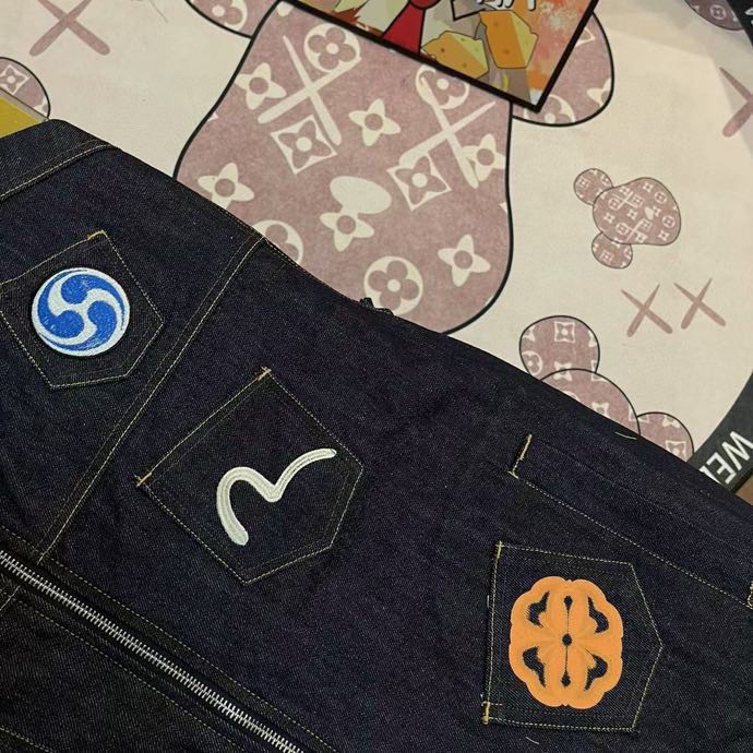 这款衣服是AAAAA 1:1 质量 (非常棒). 使用了和原版一模一样的材料. 商标部分也保持了和EVISU一样. 图片拍摄是实物衣服拍摄, 您所收到的实物保证和我们图片一模一样.