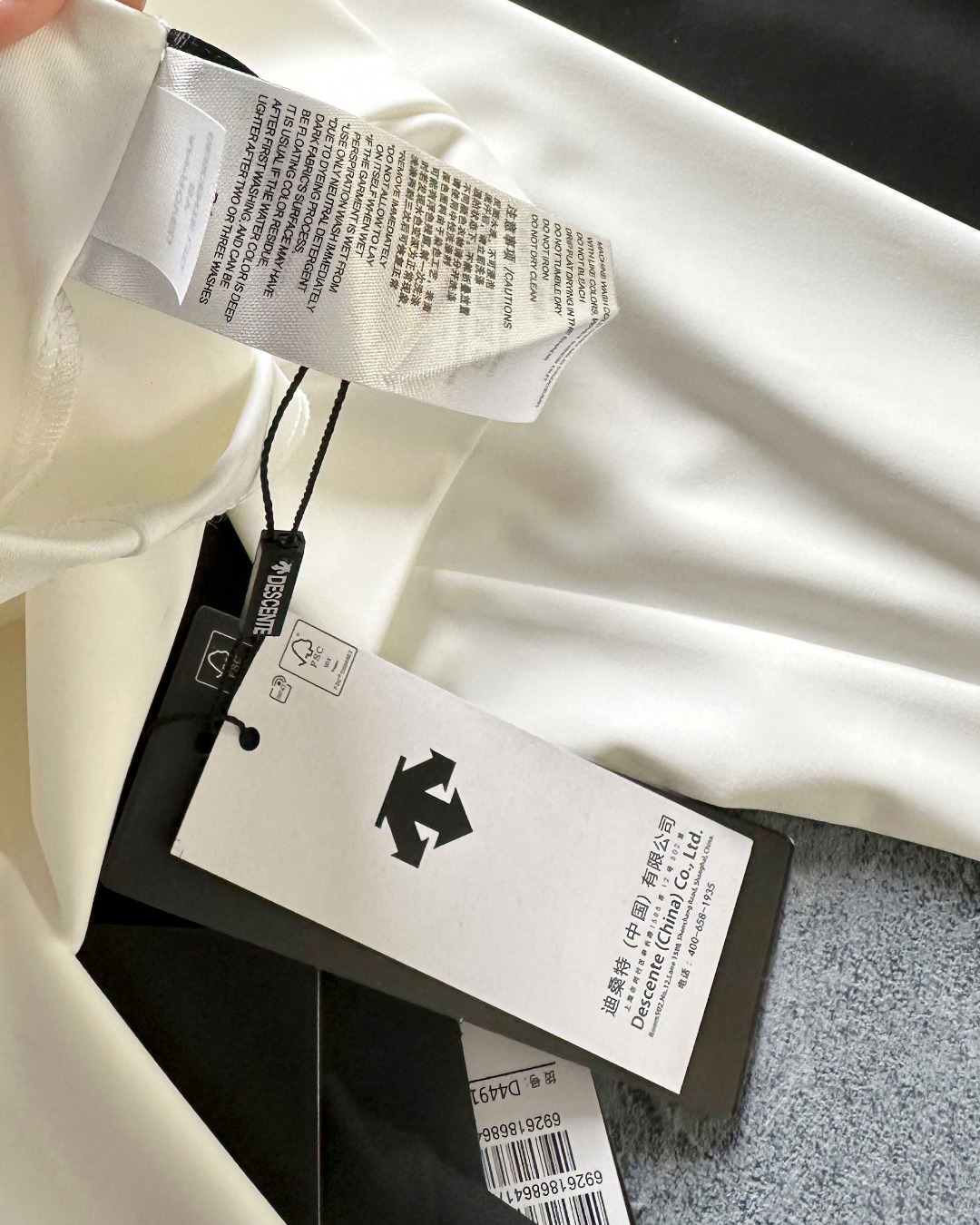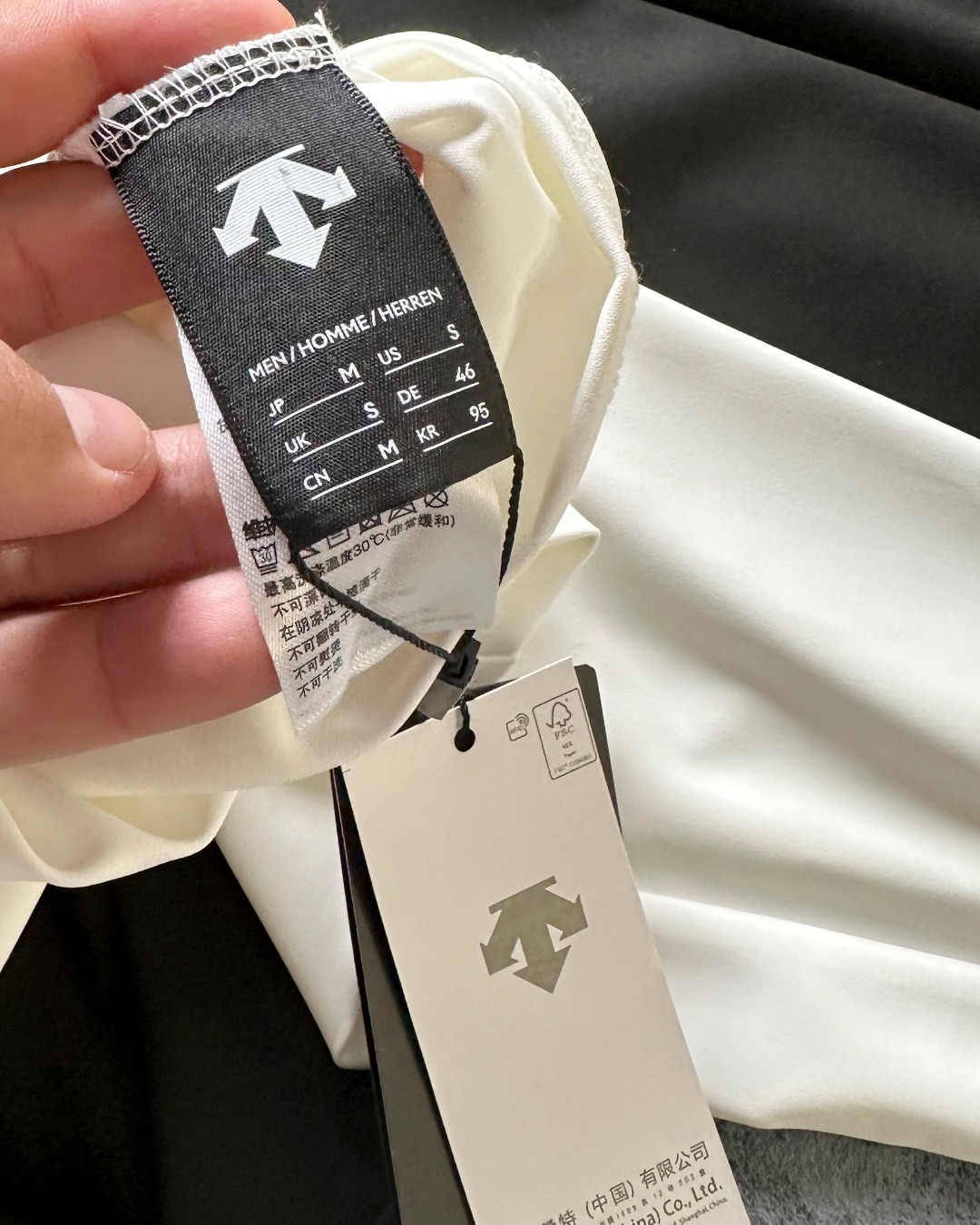这款衣服是AAAAA 1:1 质量 (非常棒). 使用了和原版一模一样的材料. 商标部分也保持了和Descente一样. 图片拍摄是实物衣服拍摄, 您所收到的实物保证和我们图片一模一样.