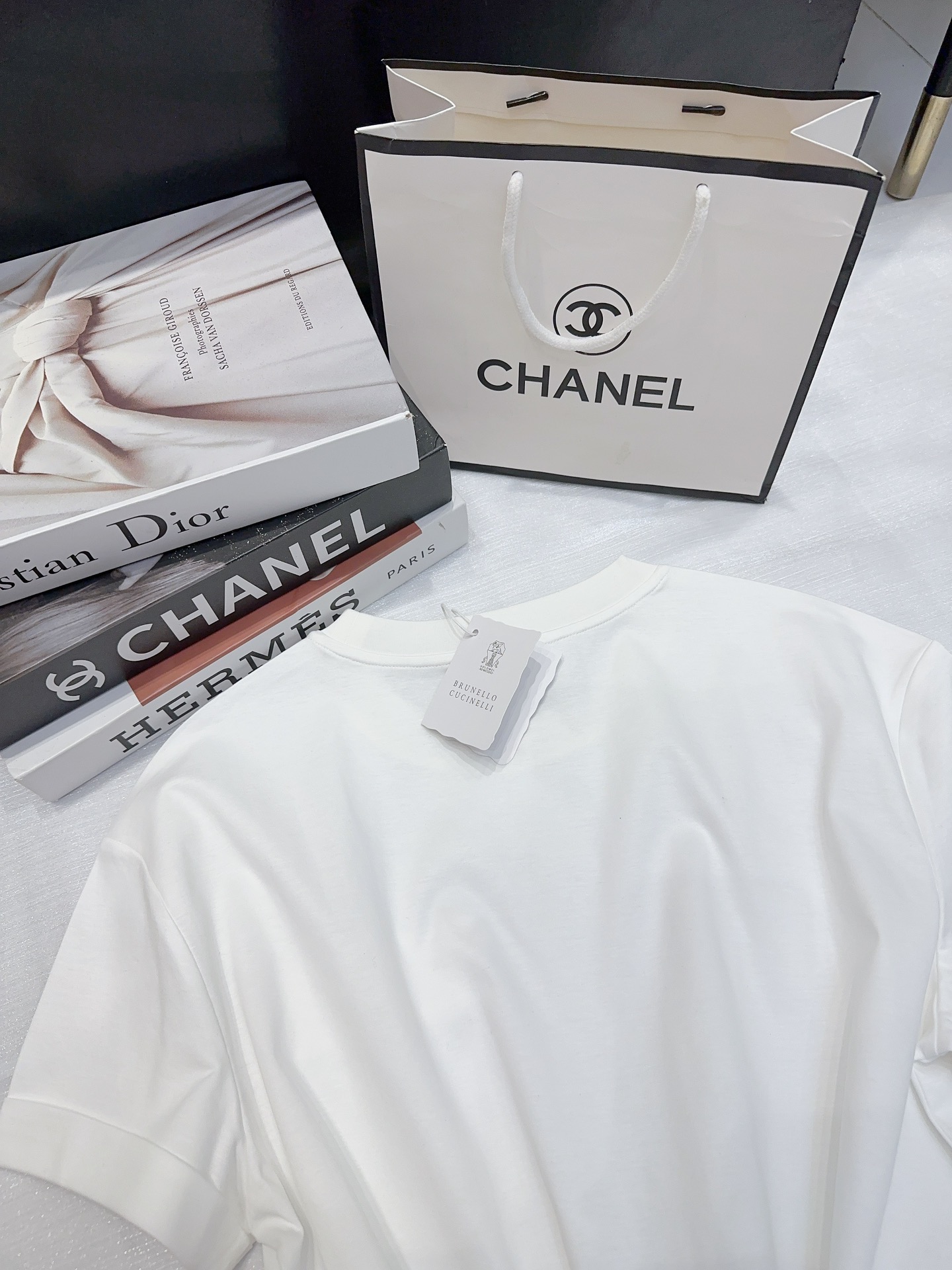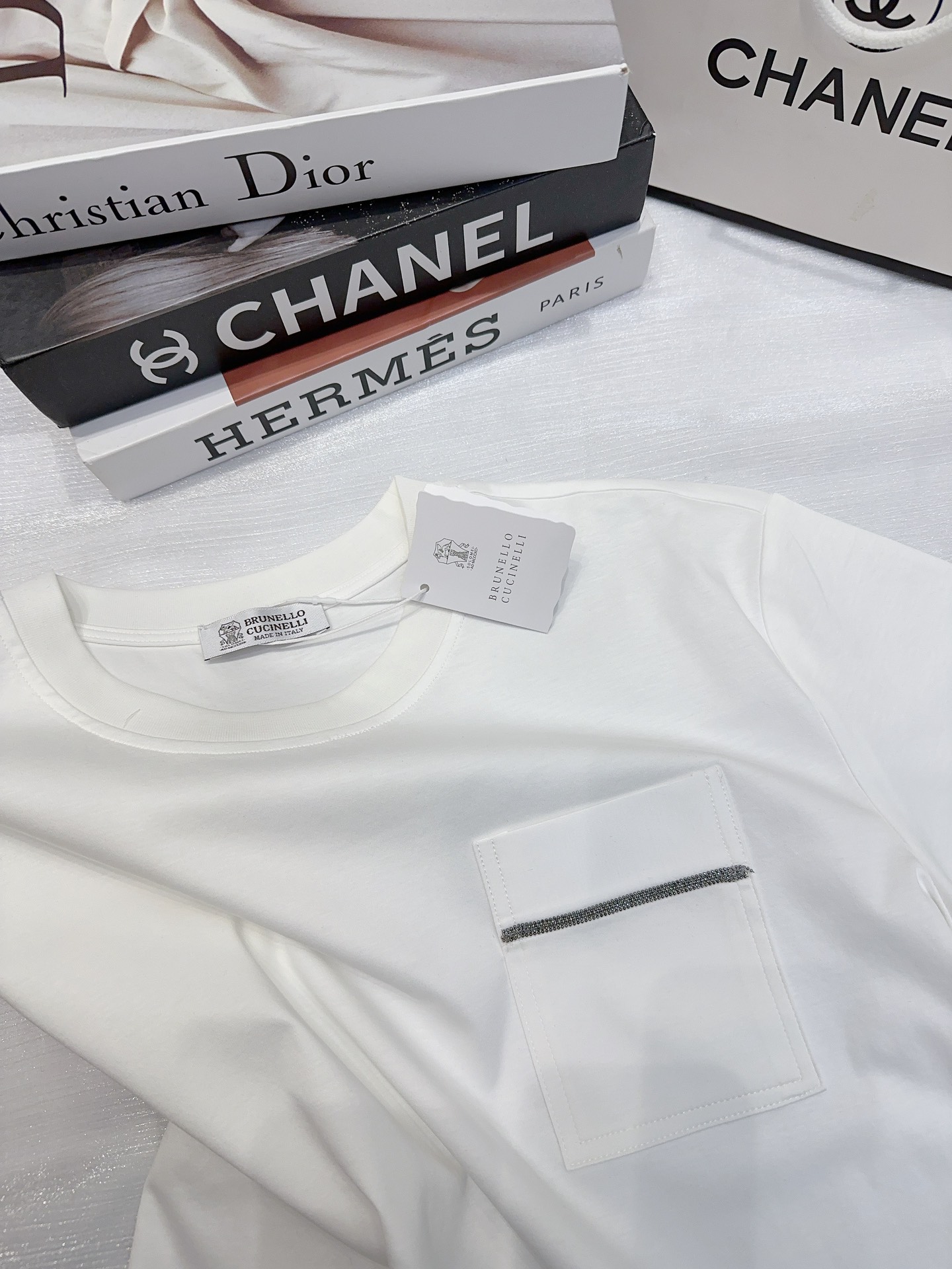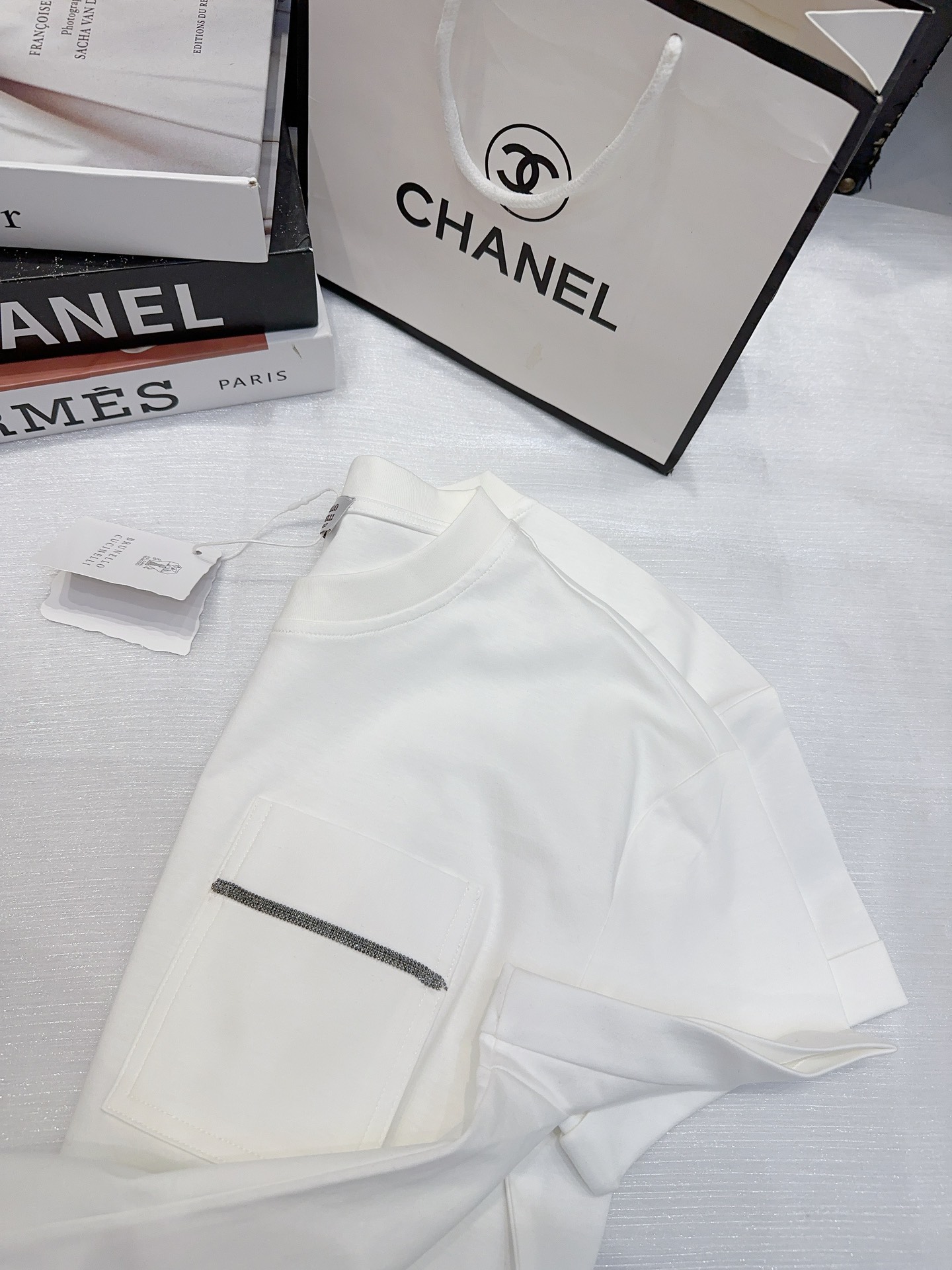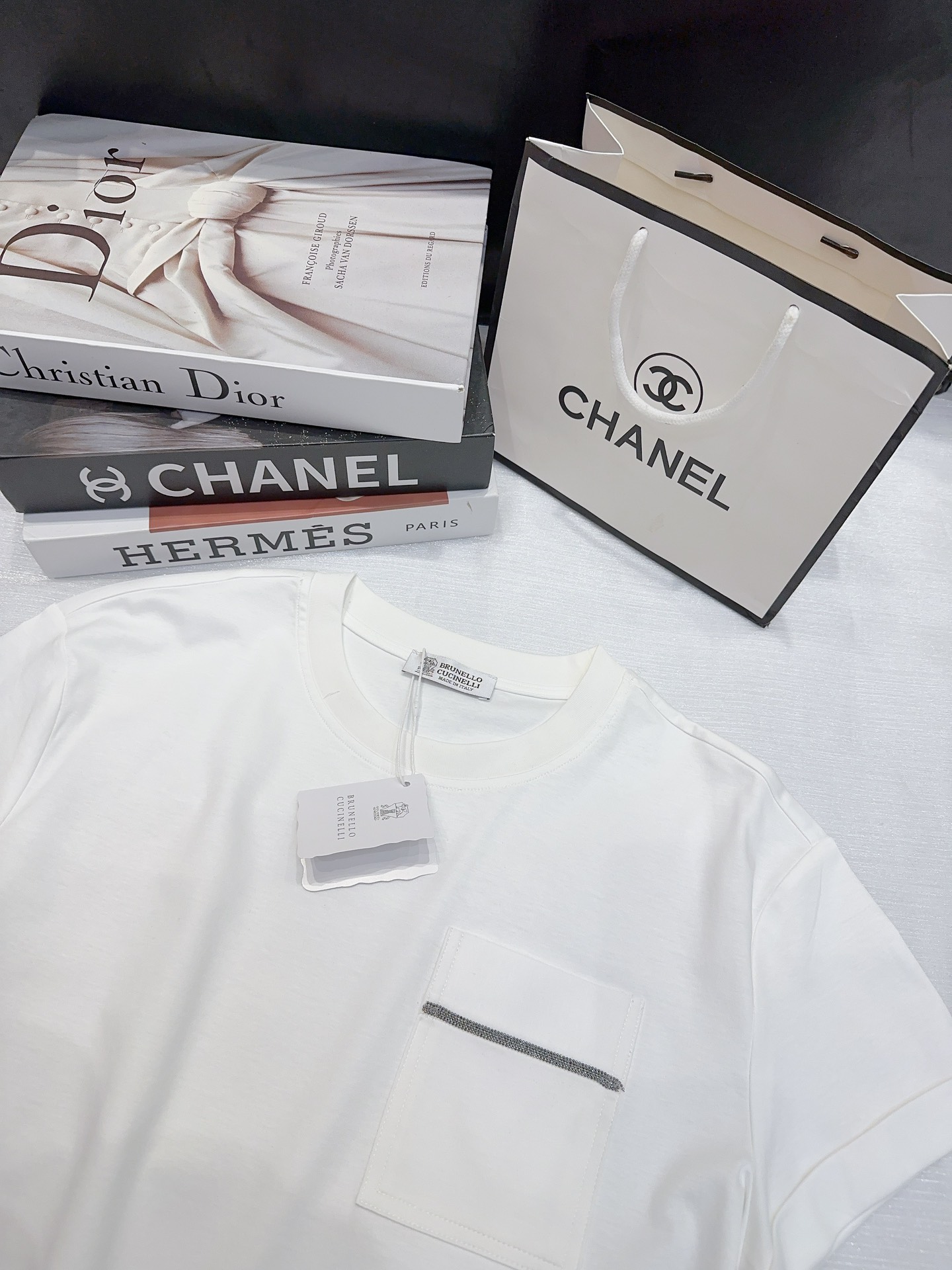 这款衣服是AAAAA 1:1 质量 (非常棒). 使用了和原版一模一样的材料. 商标部分也保持了和Brunello Cucinelli一样. 图片拍摄是实物衣服拍摄, 您所收到的实物保证和我们图片一模一样.