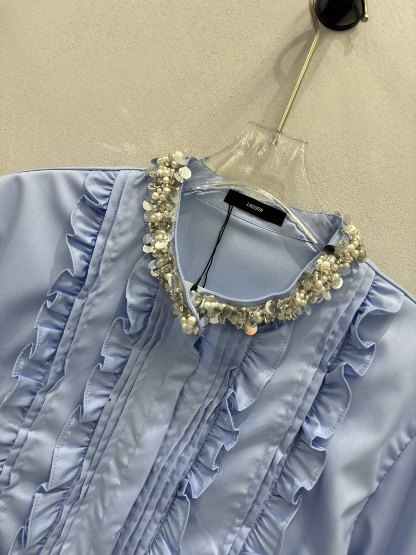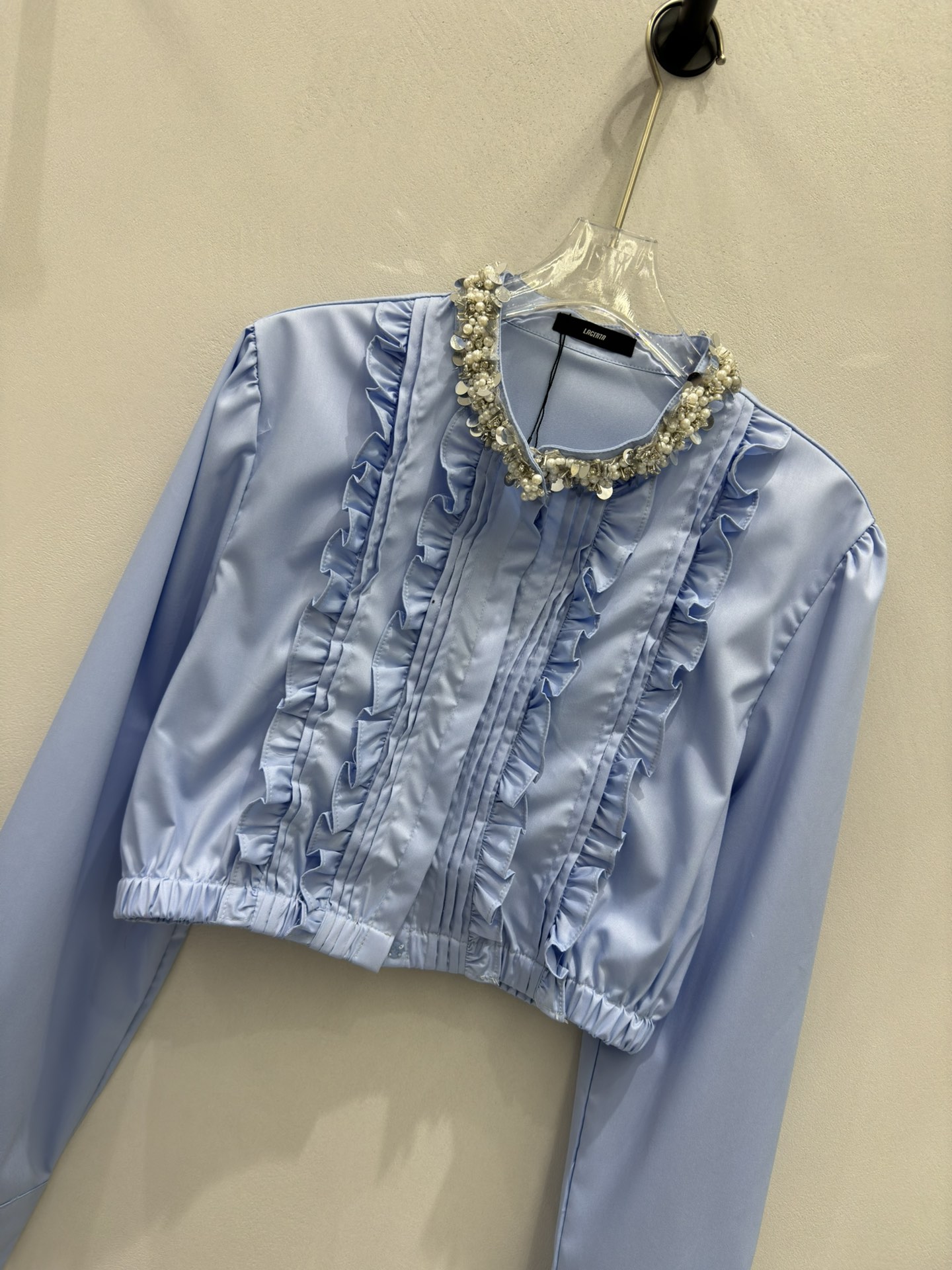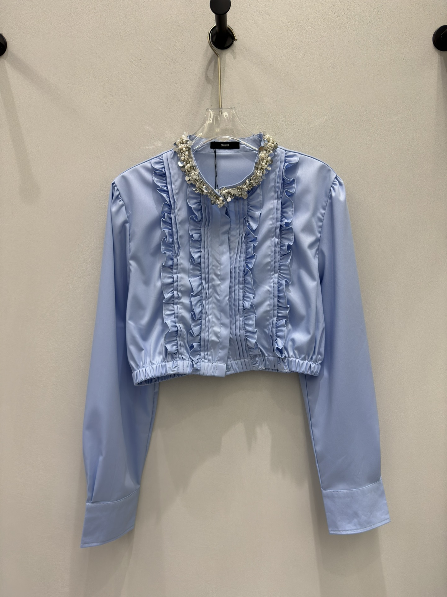 这款衣服是AAAAA 1:1 质量 (非常棒). 使用了和原版一模一样的材料. 商标部分也保持了和缪缪/Miu Miu一样. 图片拍摄是实物衣服拍摄, 您所收到的实物保证和我们图片一模一样.