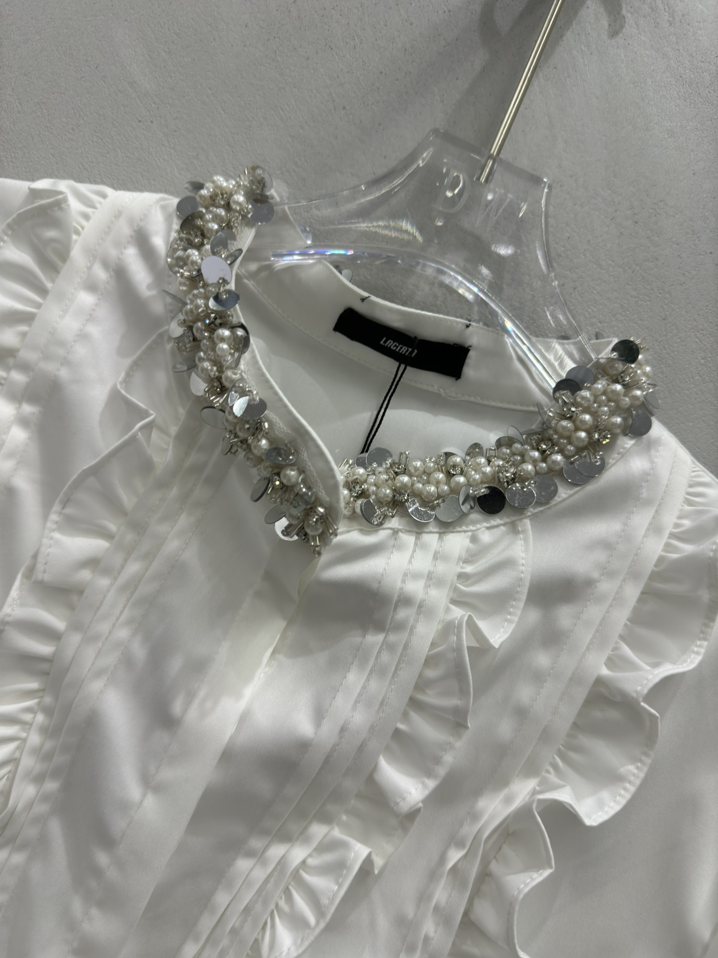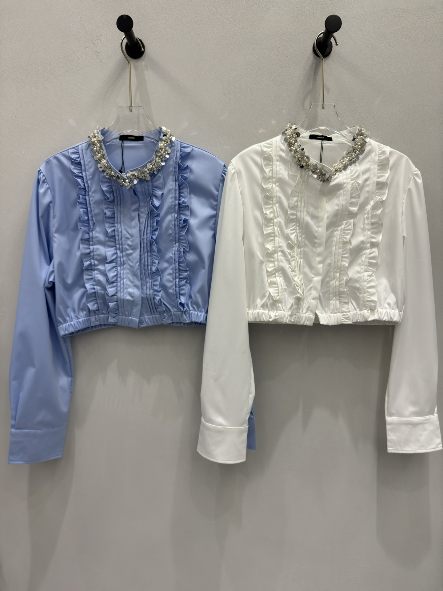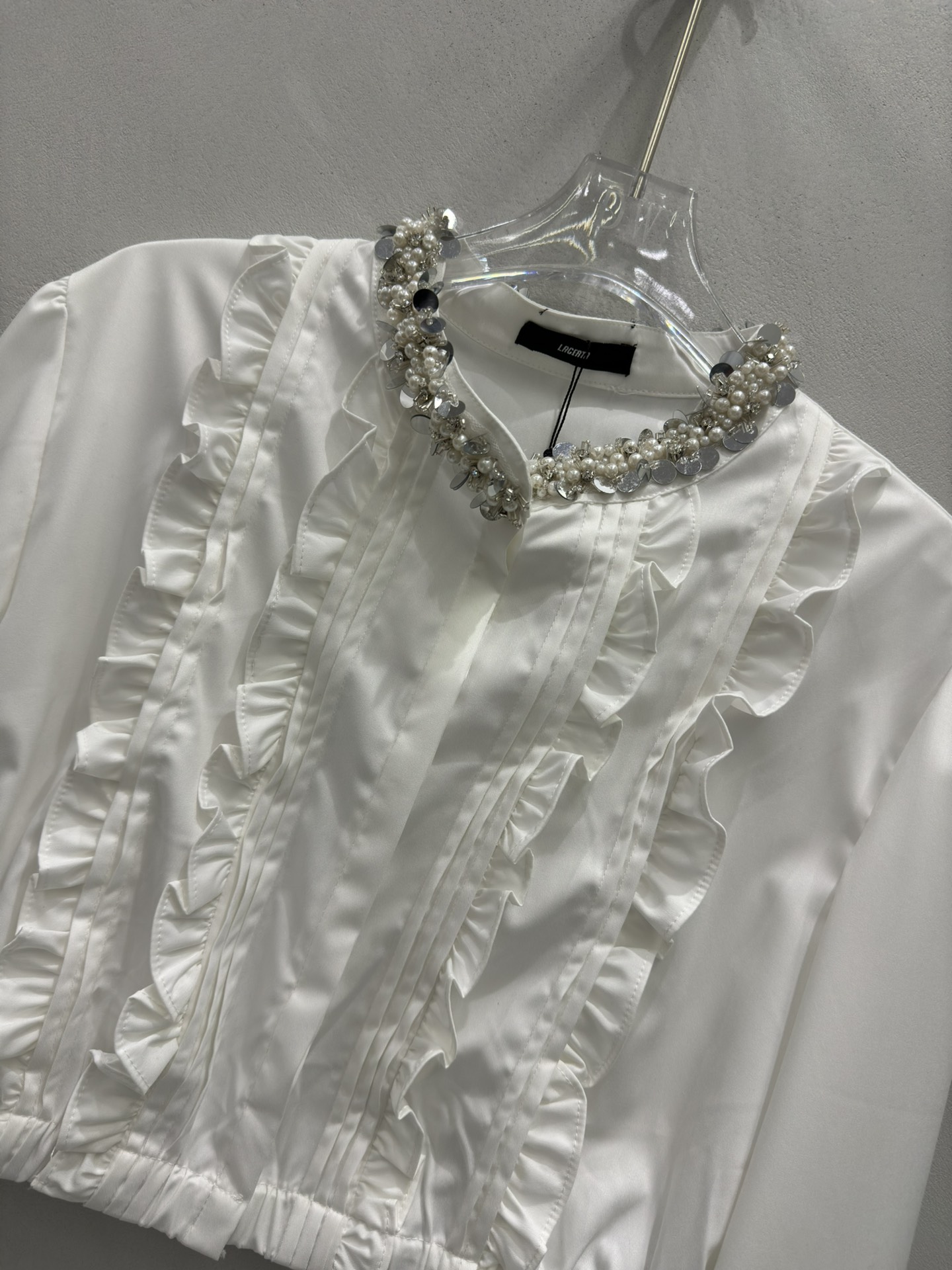 这款衣服是AAAAA 1:1 质量 (非常棒). 使用了和原版一模一样的材料. 商标部分也保持了和缪缪/Miu Miu一样. 图片拍摄是实物衣服拍摄, 您所收到的实物保证和我们图片一模一样.