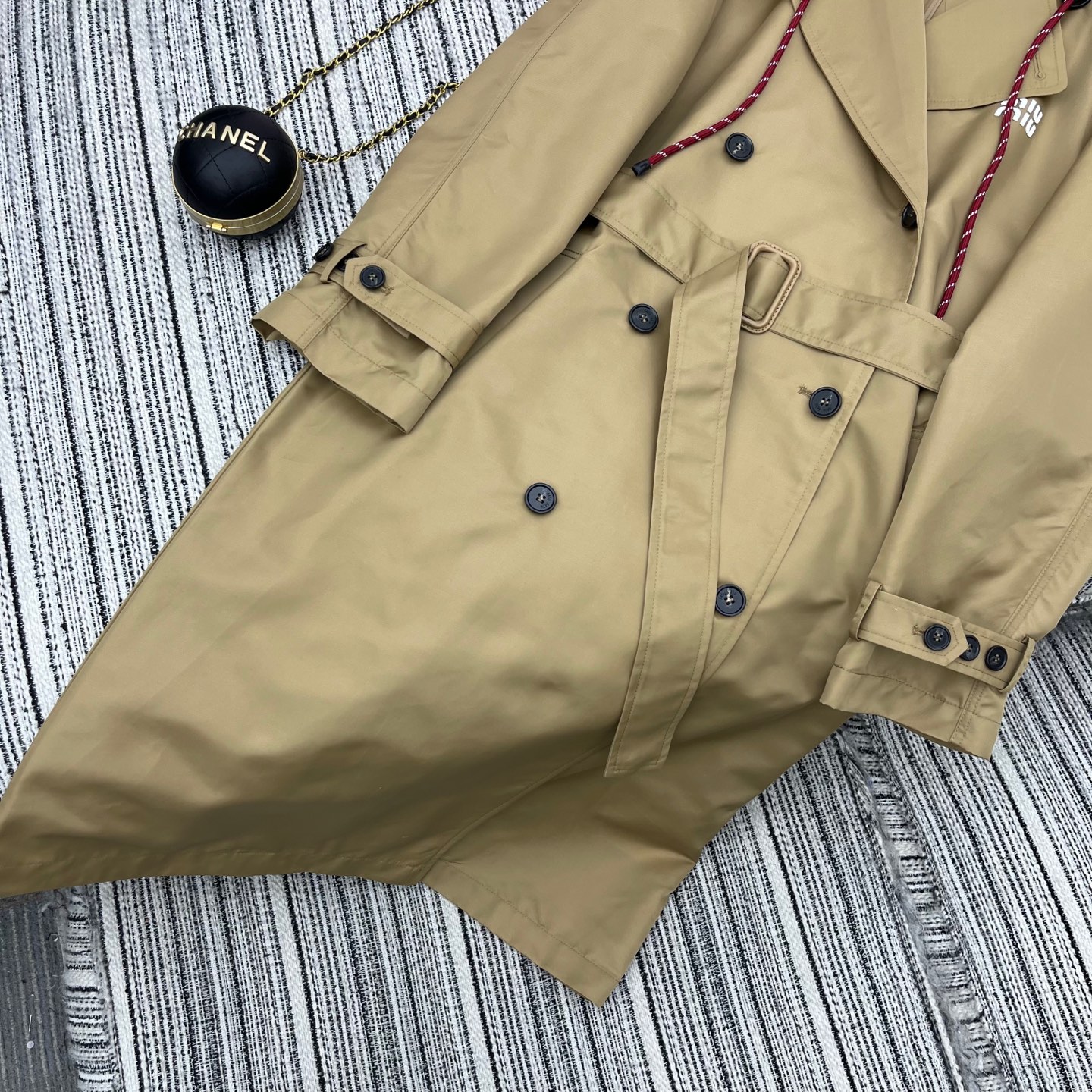 这款衣服是AAAAA 1:1 质量 (非常棒). 使用了和原版一模一样的材料. 商标部分也保持了和缪缪/Miu Miu一样. 图片拍摄是实物衣服拍摄, 您所收到的实物保证和我们图片一模一样.