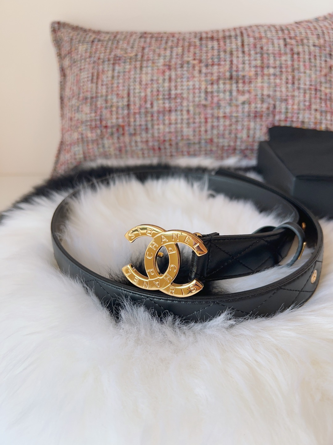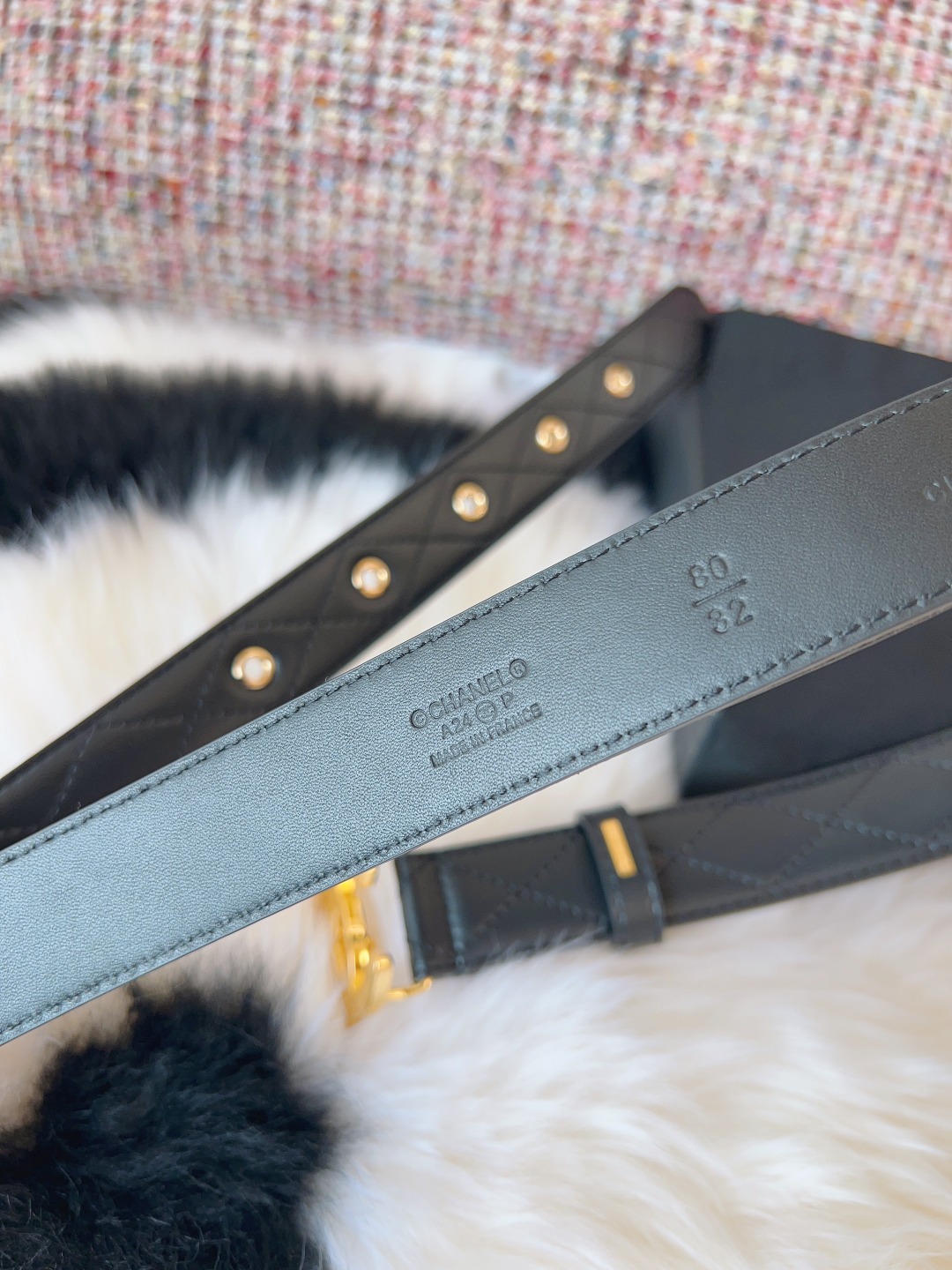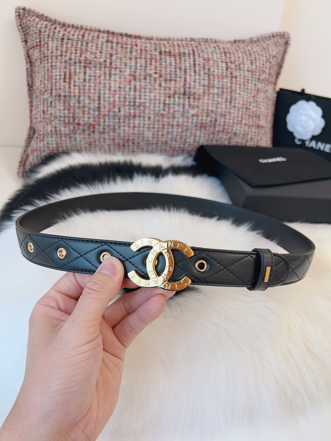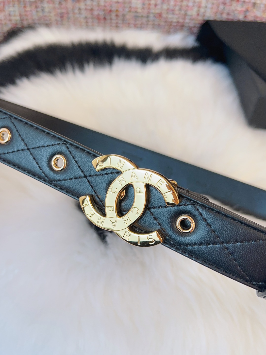 这款皮带是AAAAA 1:1 质量 (非常棒). 使用了和原版一模一样的材料. 商标部分也保持了和香奈儿/Chanel一样. 图片拍摄是实物皮带拍摄, 您所收到的实物保证和我们图片一模一样.