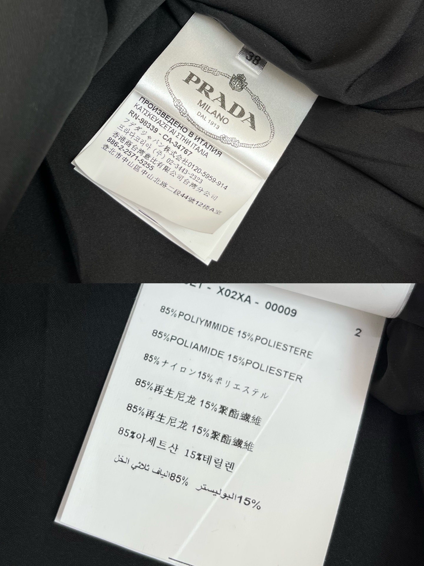 这款衣服是AAAAA 1:1 质量 (非常棒). 使用了和原版一模一样的材料. 商标部分也保持了和普拉达/Prada一样. 图片拍摄是实物衣服拍摄, 您所收到的实物保证和我们图片一模一样.