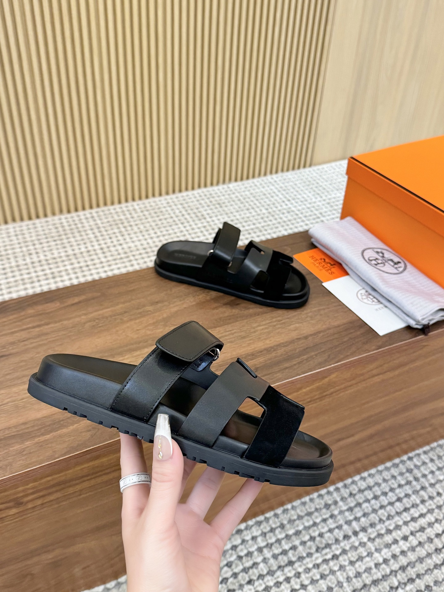 这款鞋子是AAAAA 1:1 质量 (非常棒). 使用了和原版一模一样的材料. 商标部分也保持了和爱马仕/Hermes一样. 图片拍摄是实物鞋子拍摄, 您所收到的实物保证和我们图片一模一样.