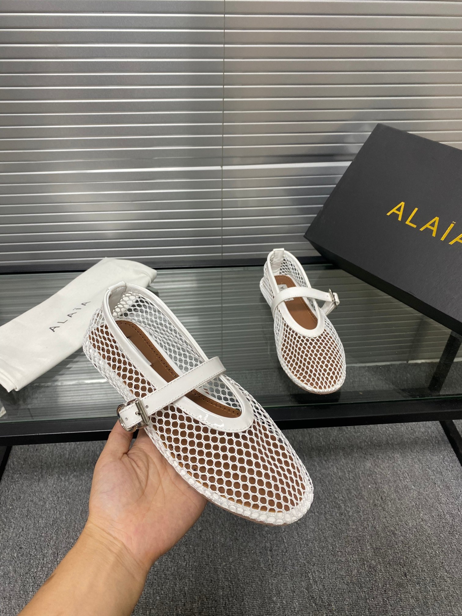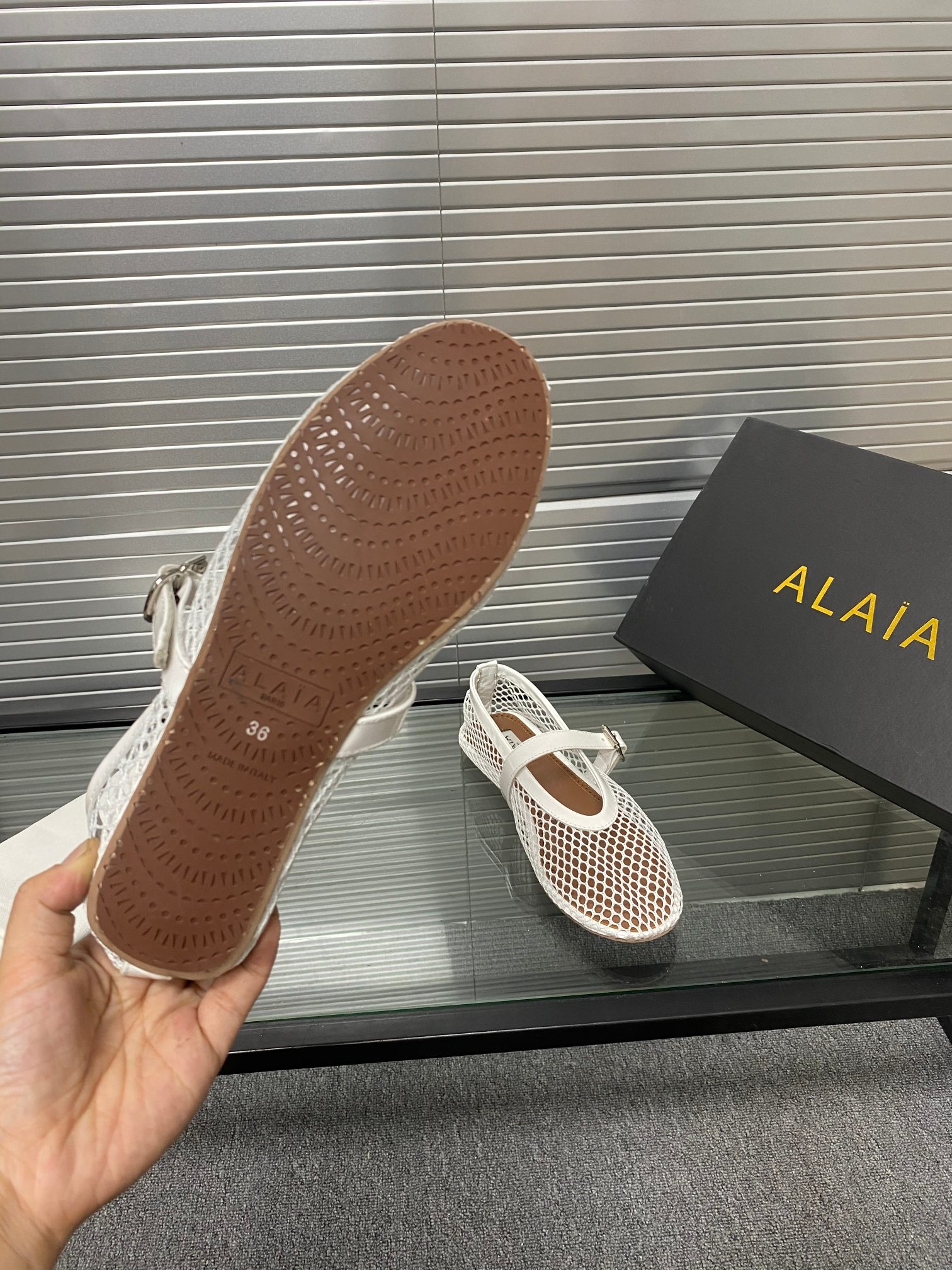 这款鞋子是AAAAA 1:1 质量 (非常棒). 使用了和原版一模一样的材料. 商标部分也保持了和Alaia一样. 图片拍摄是实物鞋子拍摄, 您所收到的实物保证和我们图片一模一样.