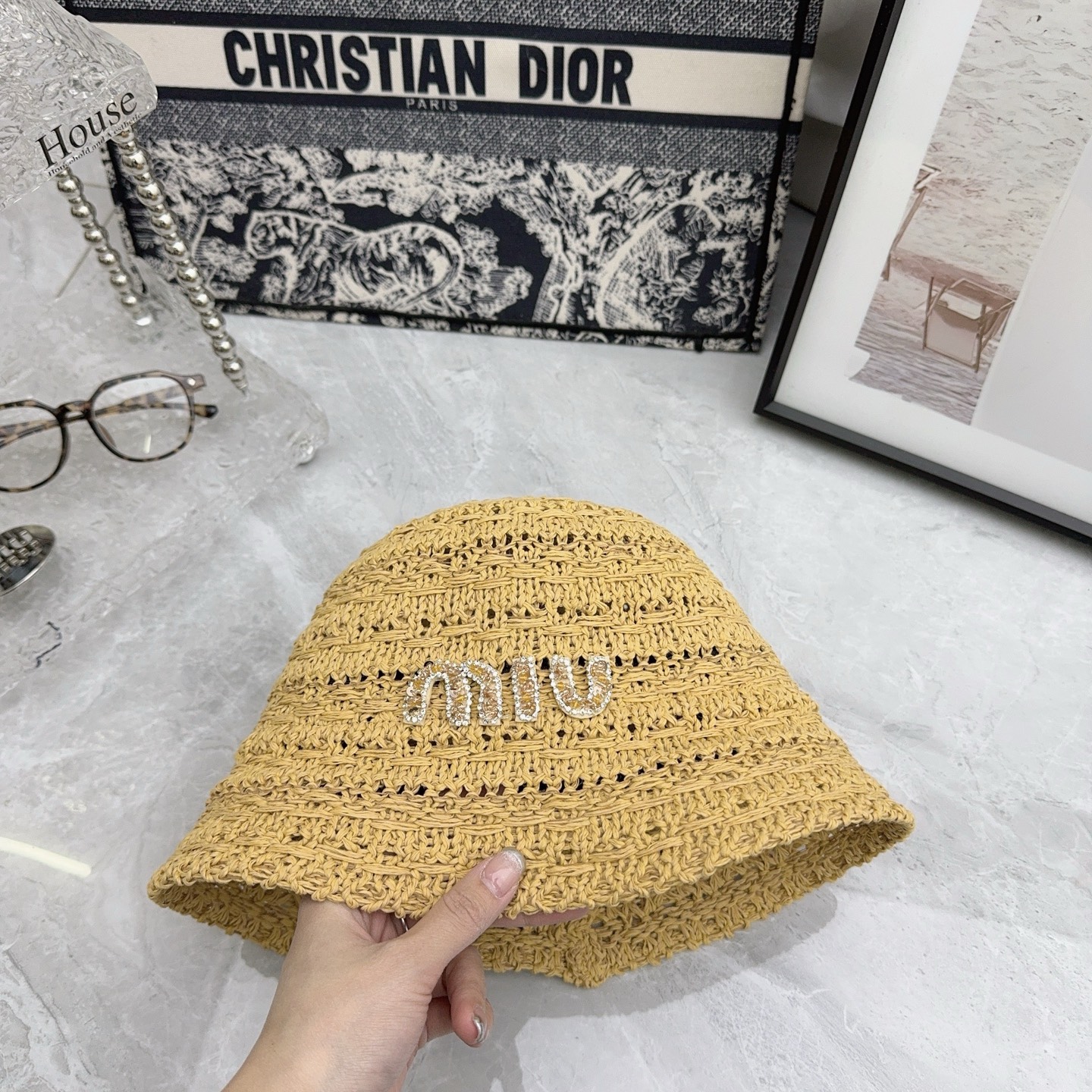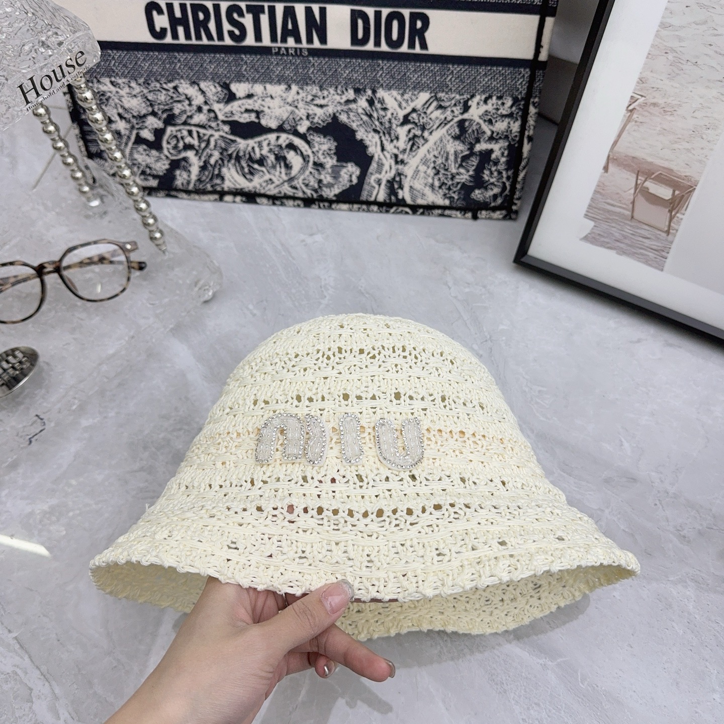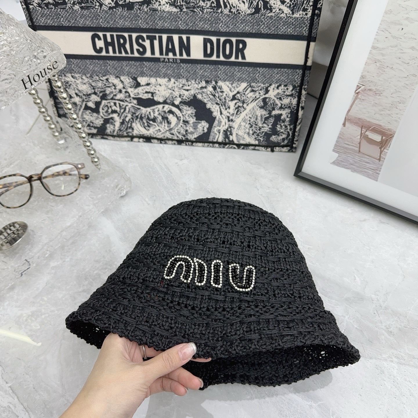 这款帽子是AAAAA 1:1 质量 (非常棒). 使用了和原版一模一样的材料. 商标部分也保持了和缪缪/Miu Miu一样. 图片拍摄是实物帽子拍摄, 您所收到的实物保证和我们图片一模一样.