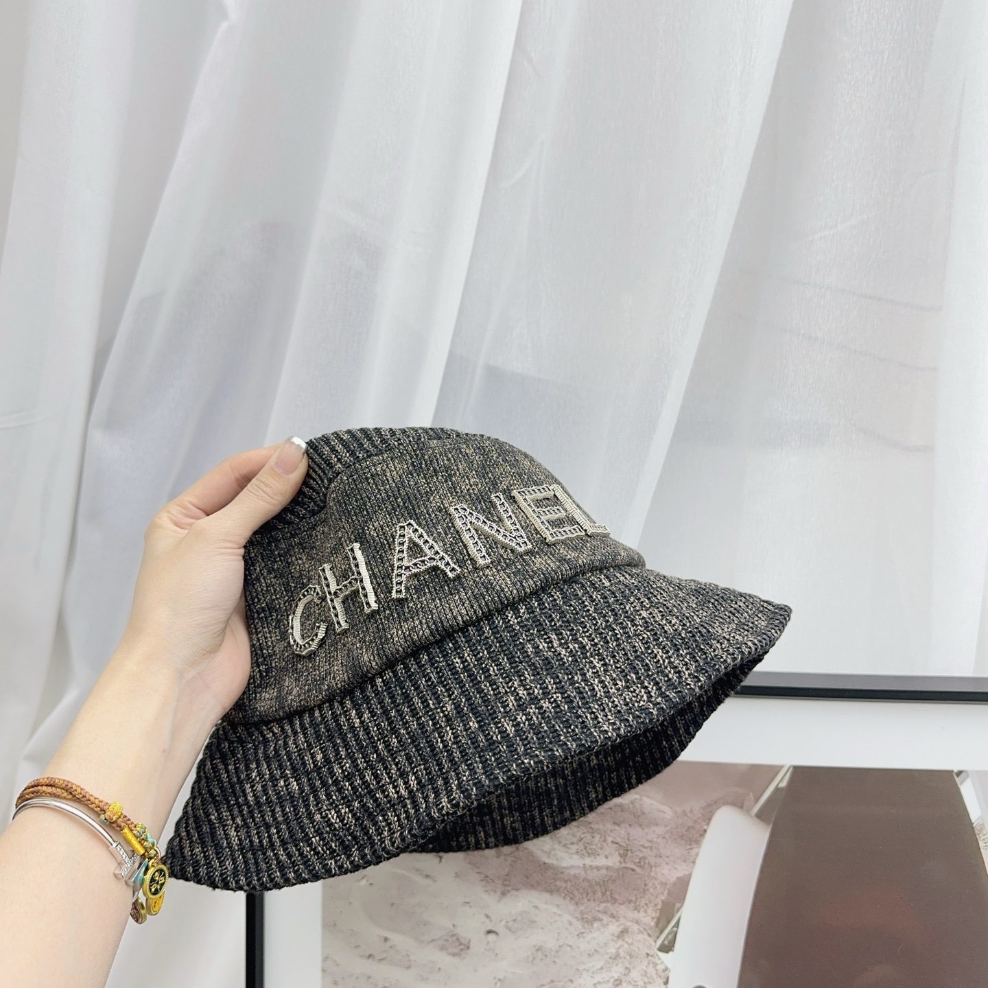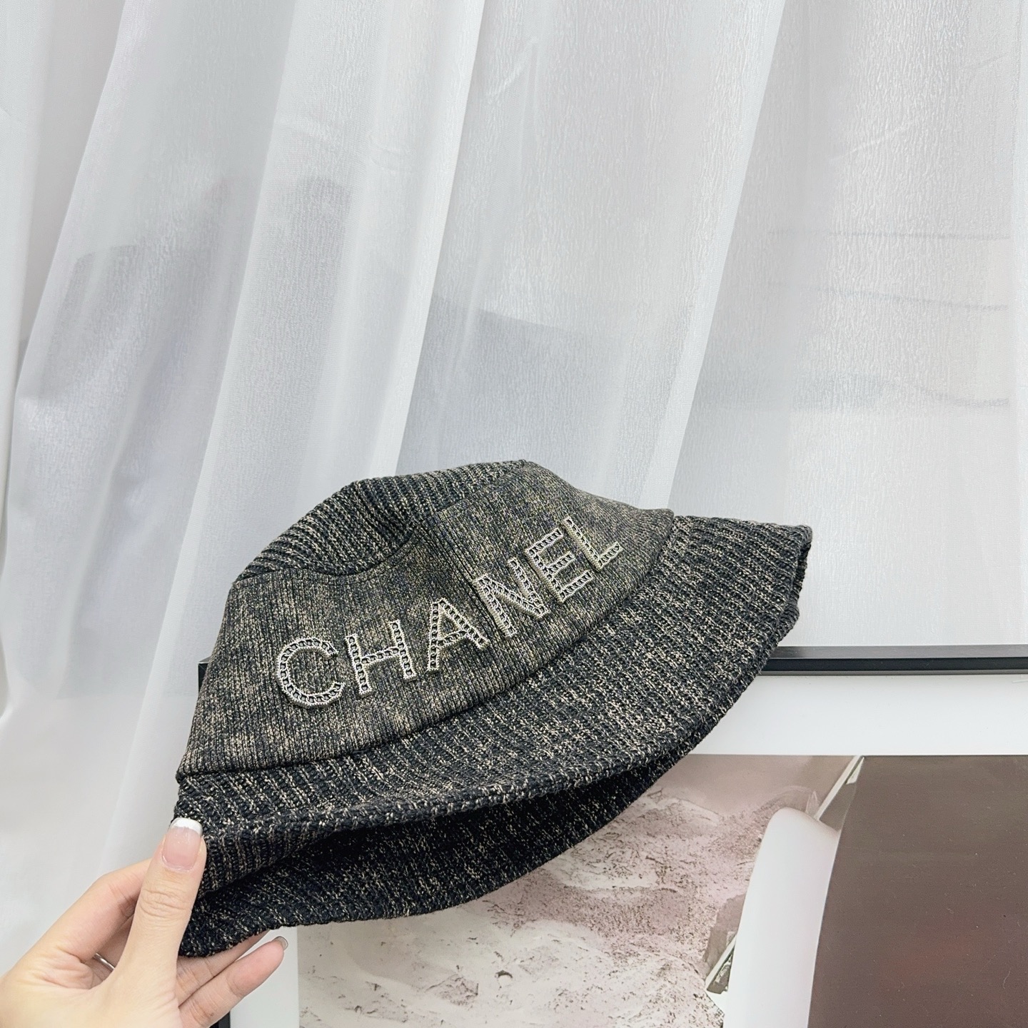 这款帽子是AAAAA 1:1 质量 (非常棒). 使用了和原版一模一样的材料. 商标部分也保持了和香奈儿/Chanel一样. 图片拍摄是实物帽子拍摄, 您所收到的实物保证和我们图片一模一样.