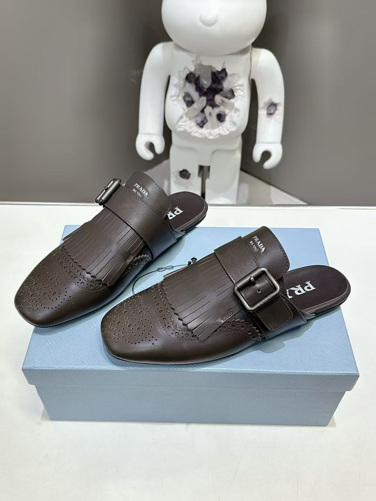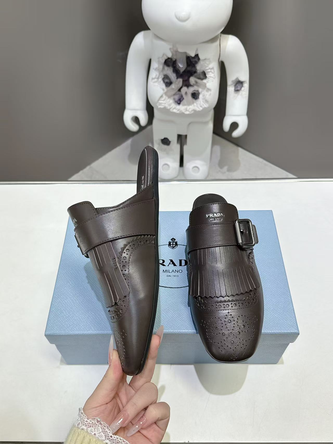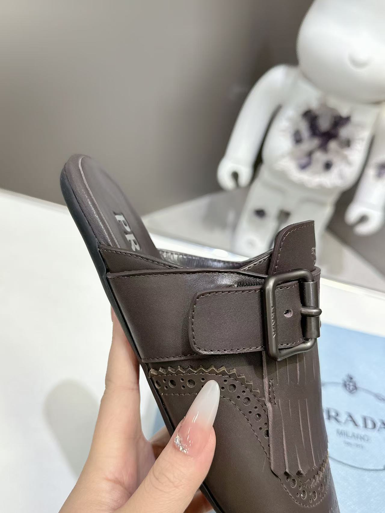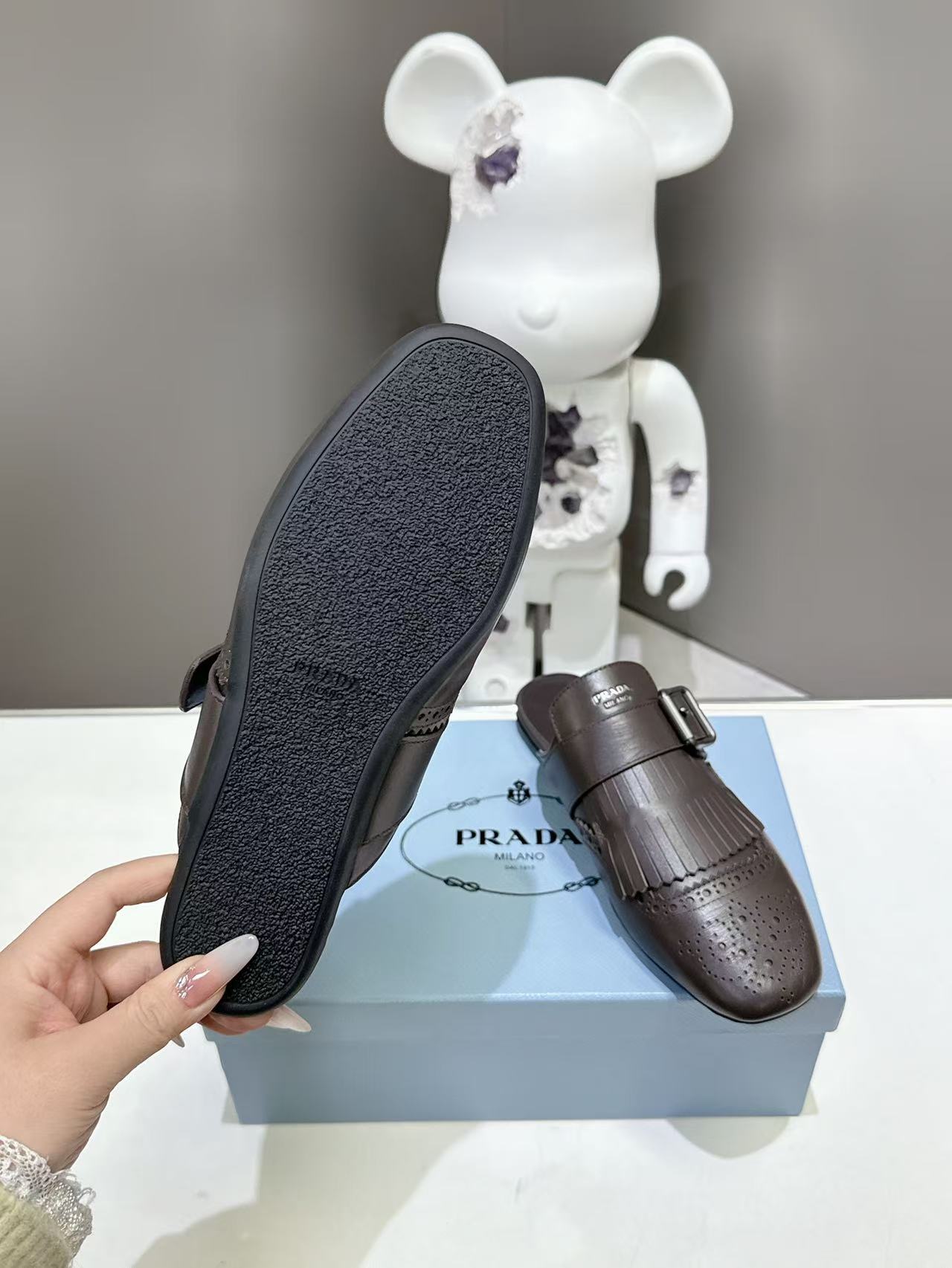 这款鞋子是AAAAA 1:1 质量 (非常棒). 使用了和原版一模一样的材料. 商标部分也保持了和普拉达/Prada一样. 图片拍摄是实物鞋子拍摄, 您所收到的实物保证和我们图片一模一样.