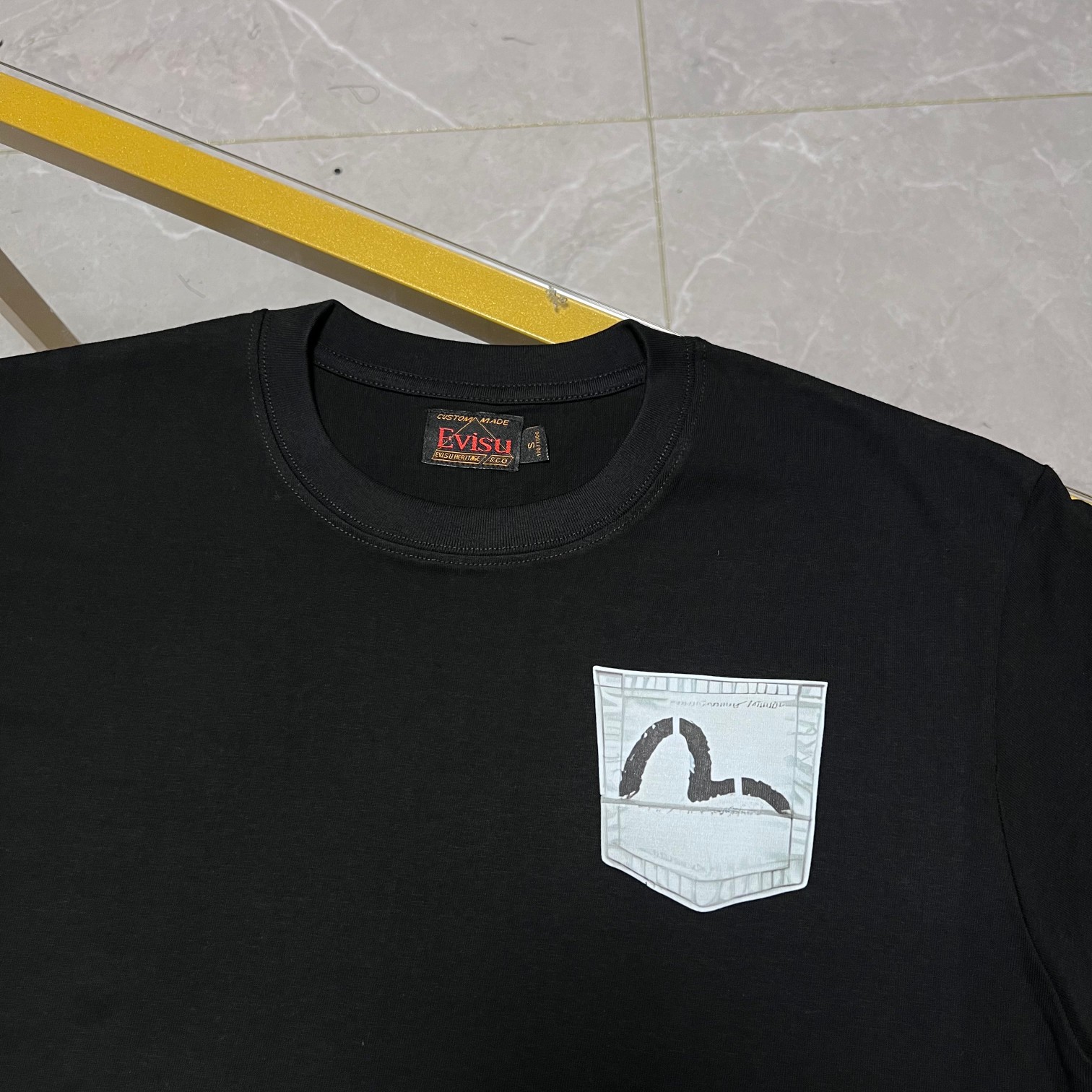 这款衣服是AAAAA 1:1 质量 (非常棒). 使用了和原版一模一样的材料. 商标部分也保持了和EVISU一样. 图片拍摄是实物衣服拍摄, 您所收到的实物保证和我们图片一模一样.