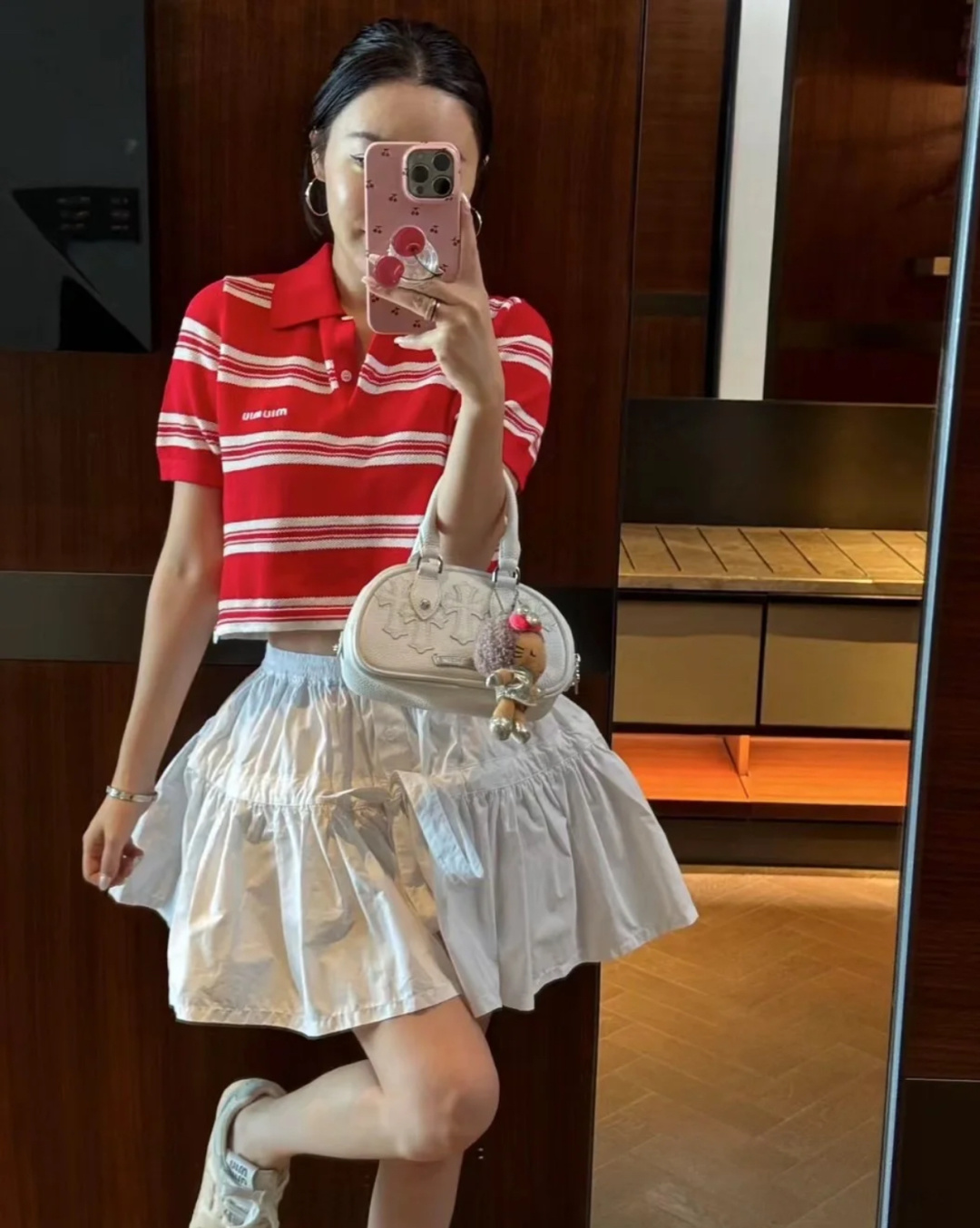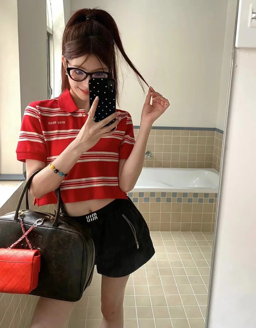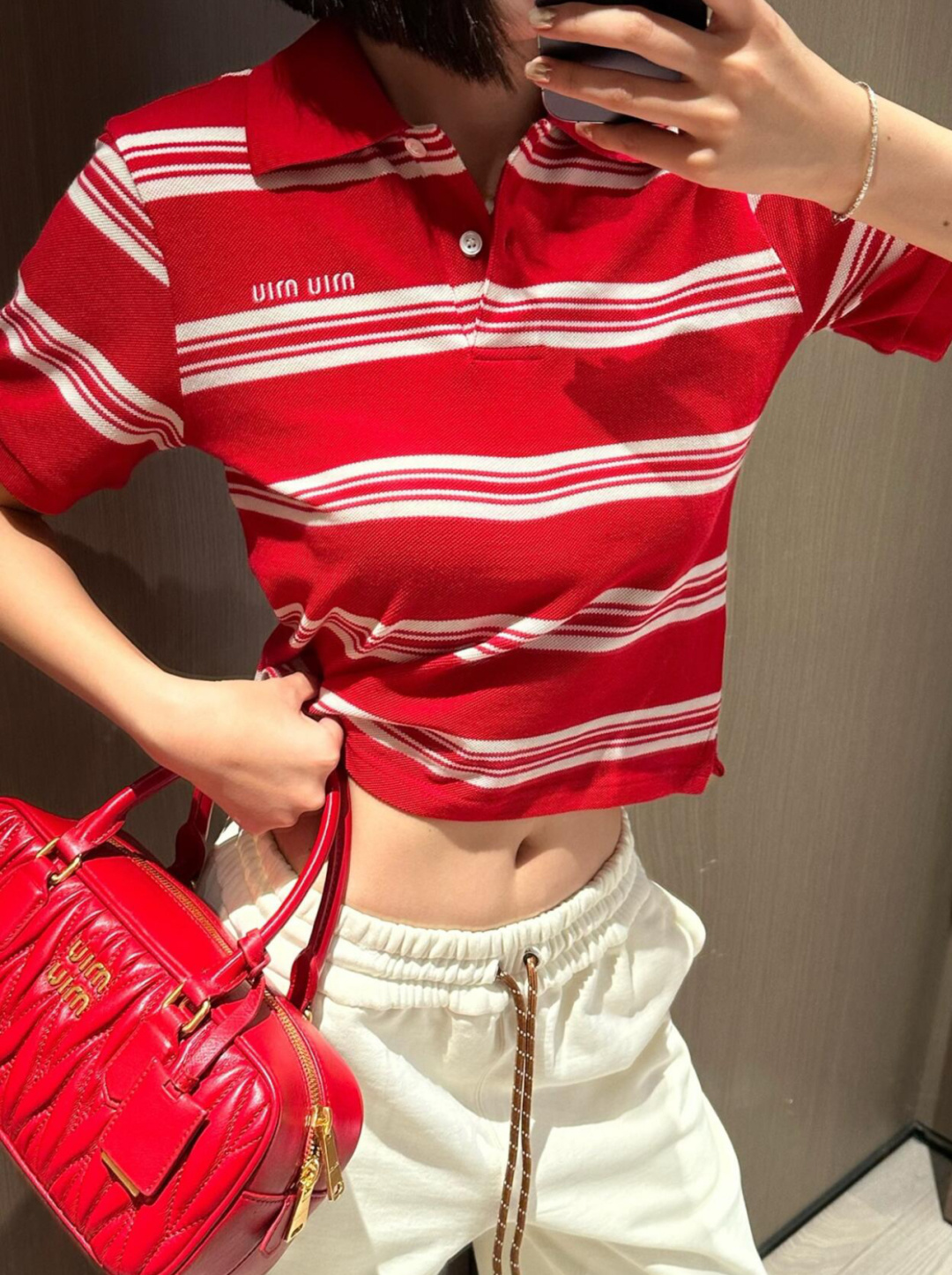 这款衣服是AAAAA 1:1 质量 (非常棒). 使用了和原版一模一样的材料. 商标部分也保持了和缪缪/Miu Miu一样. 图片拍摄是实物衣服拍摄, 您所收到的实物保证和我们图片一模一样.