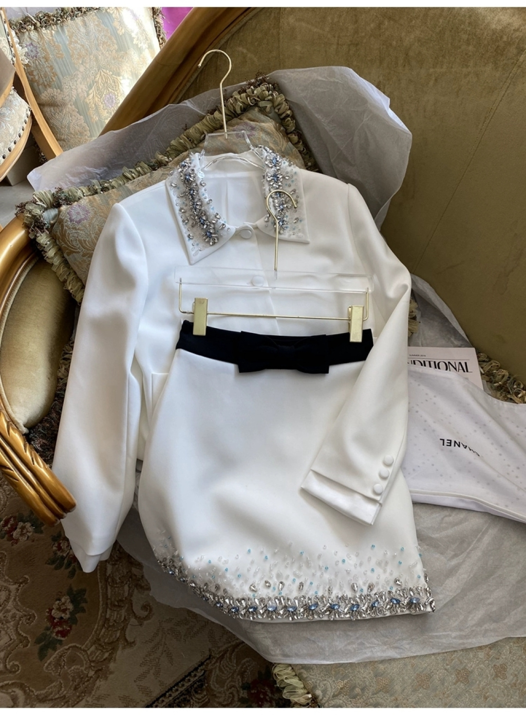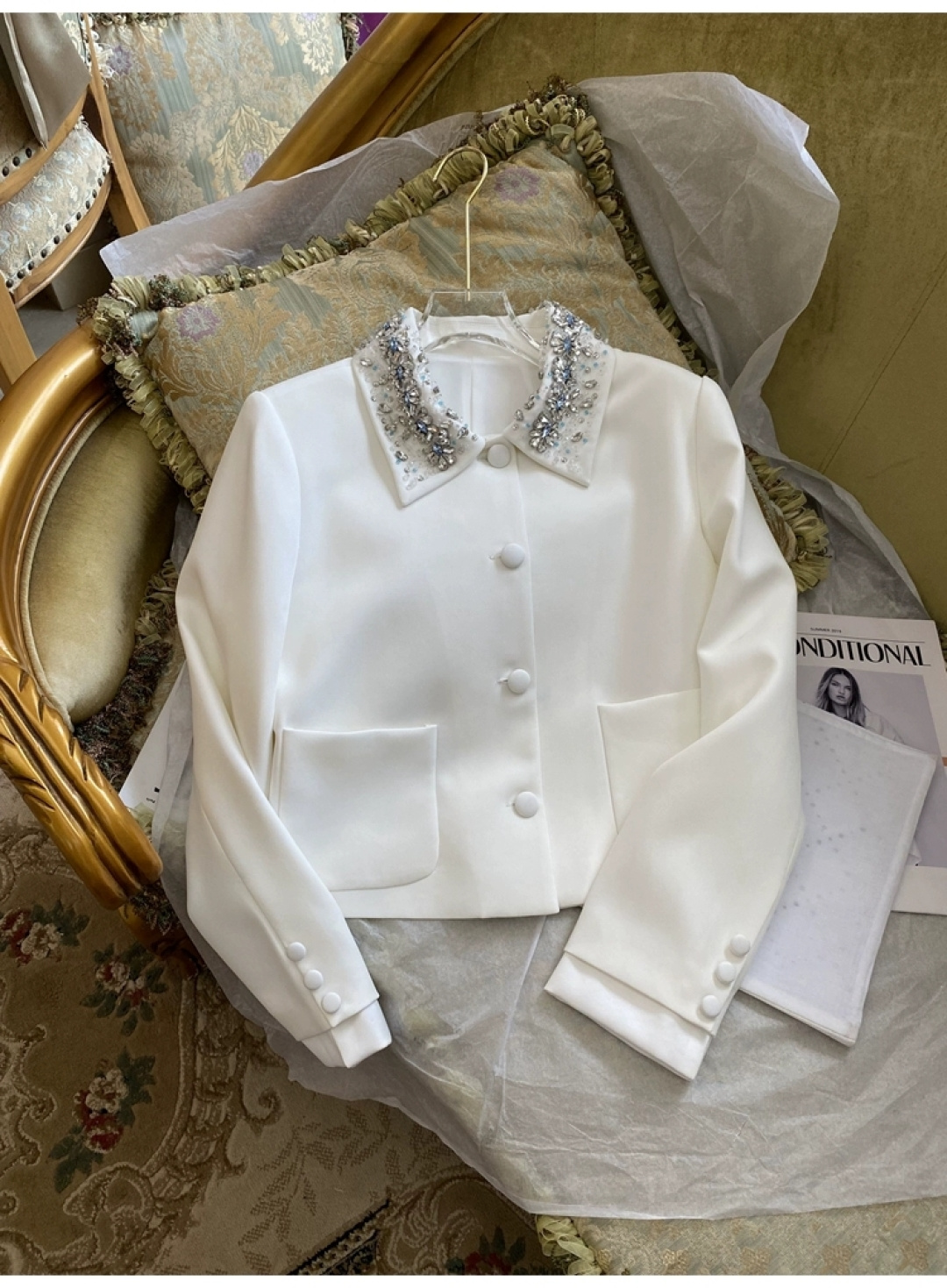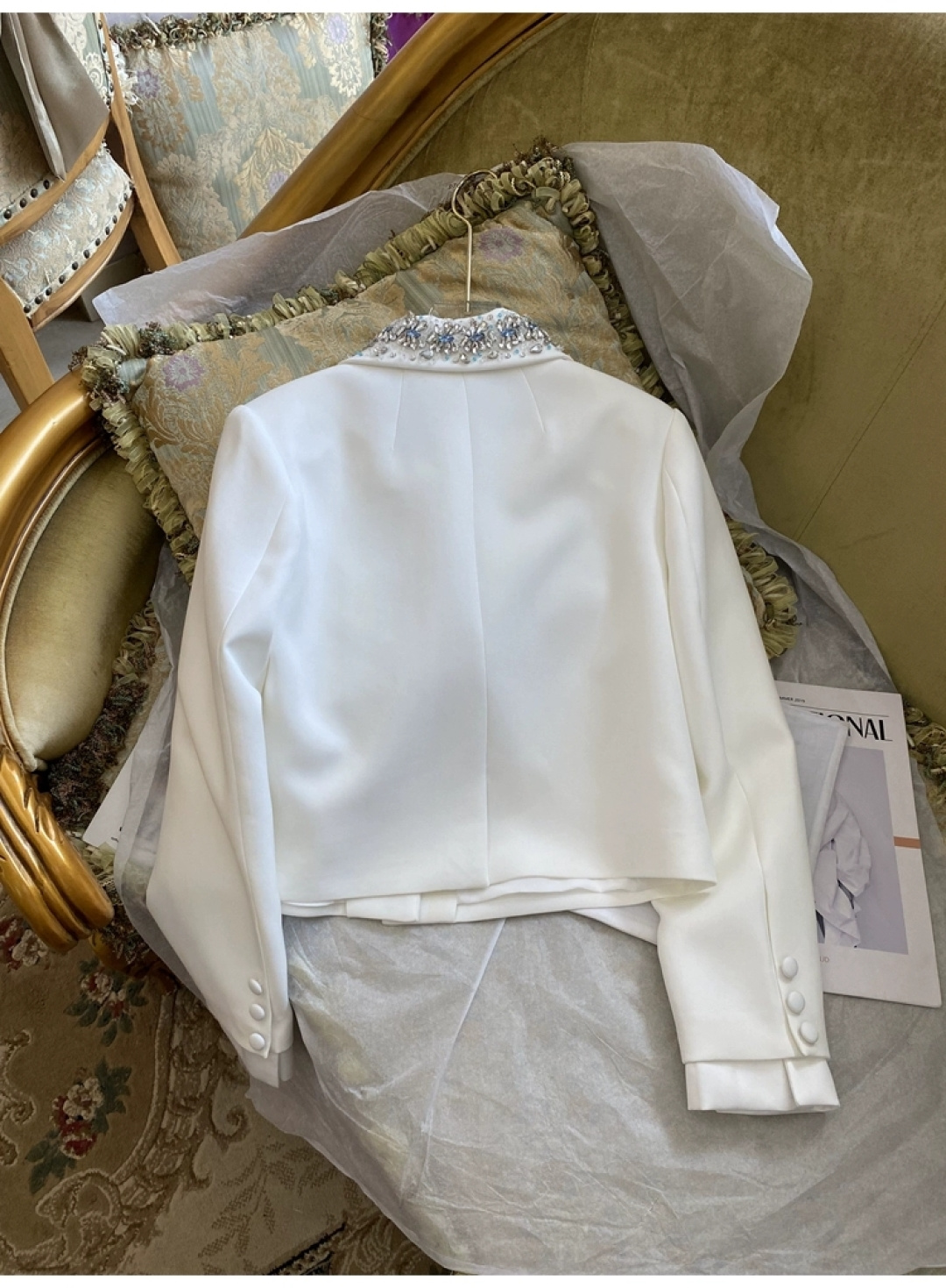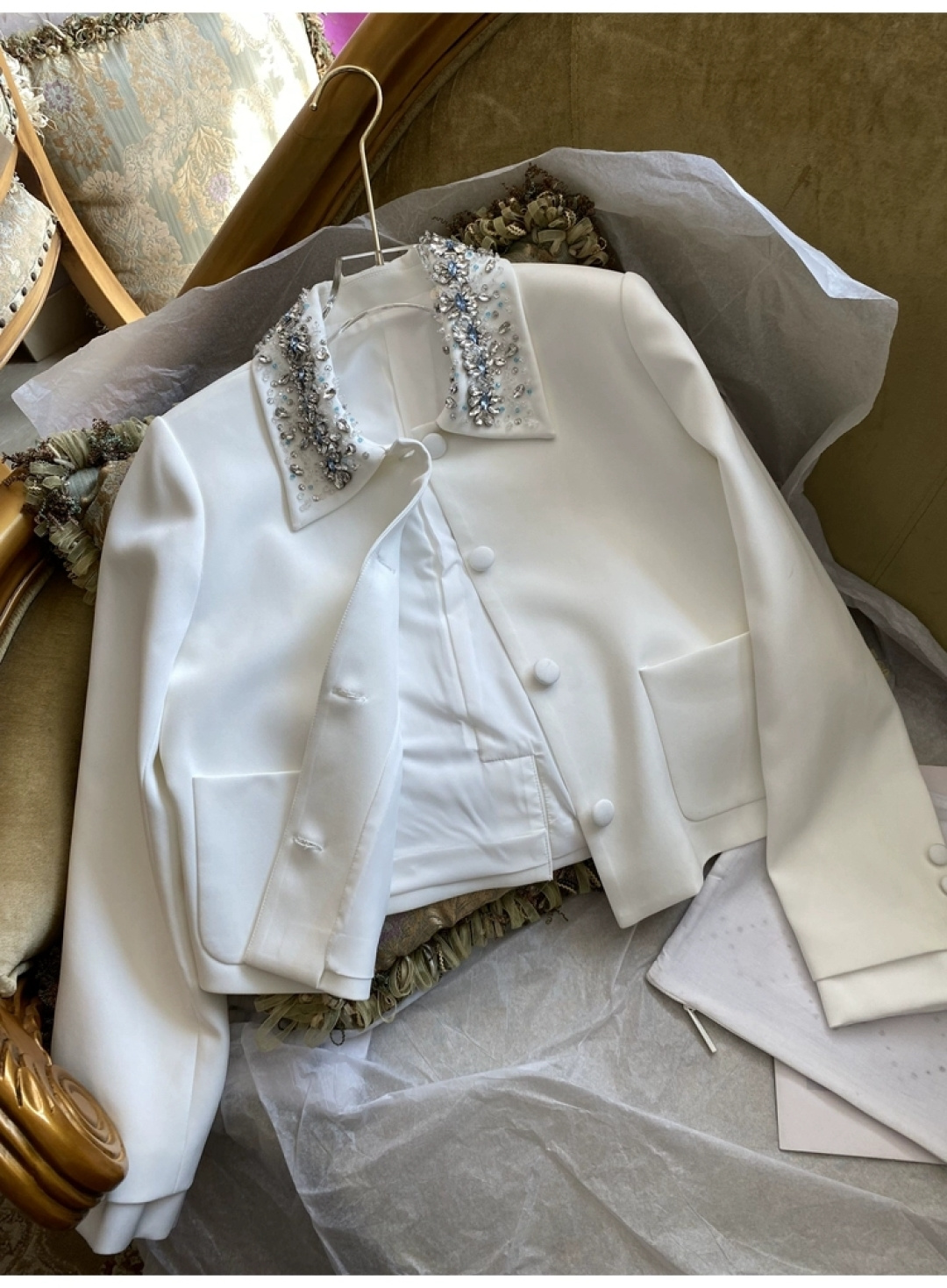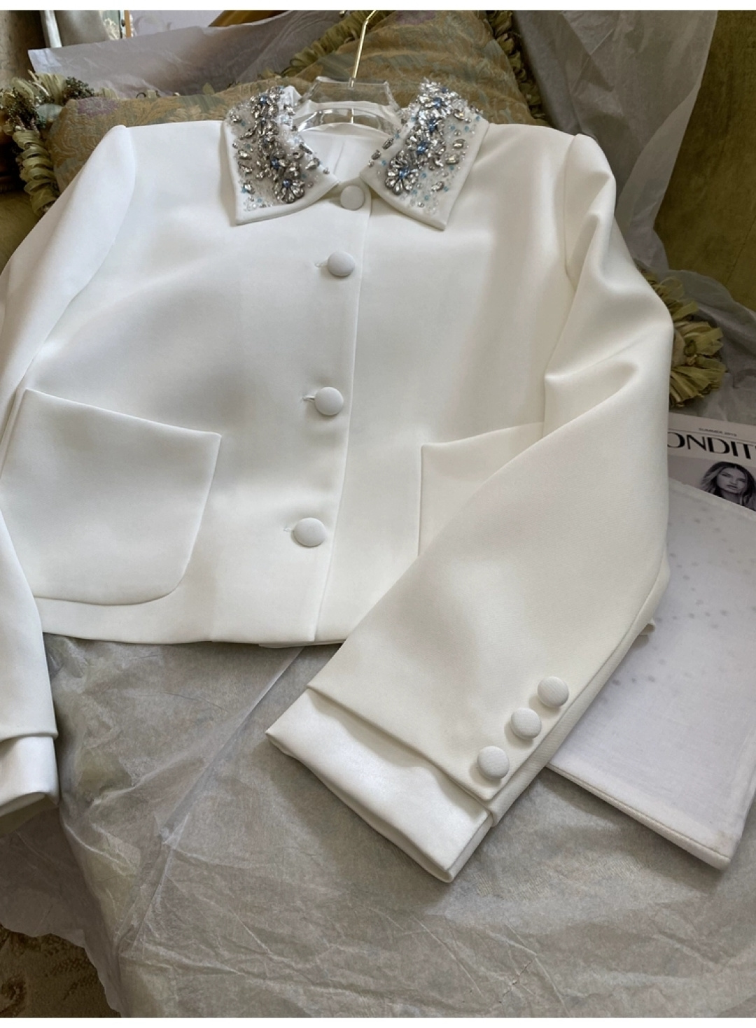 这款衣服是AAAAA 1:1 质量 (非常棒). 使用了和原版一模一样的材料. 商标部分也保持了和缪缪/Miu Miu一样. 图片拍摄是实物衣服拍摄, 您所收到的实物保证和我们图片一模一样.