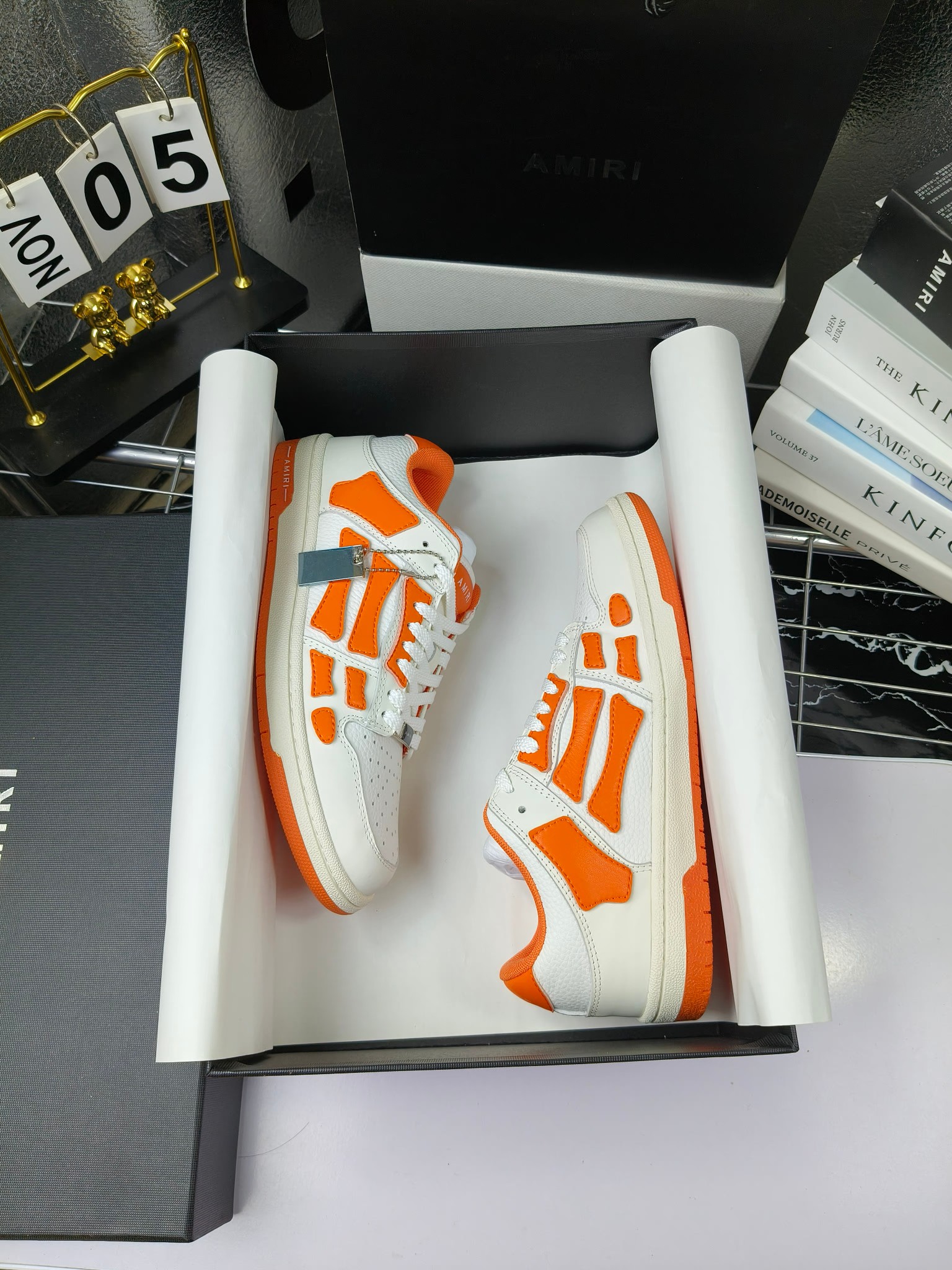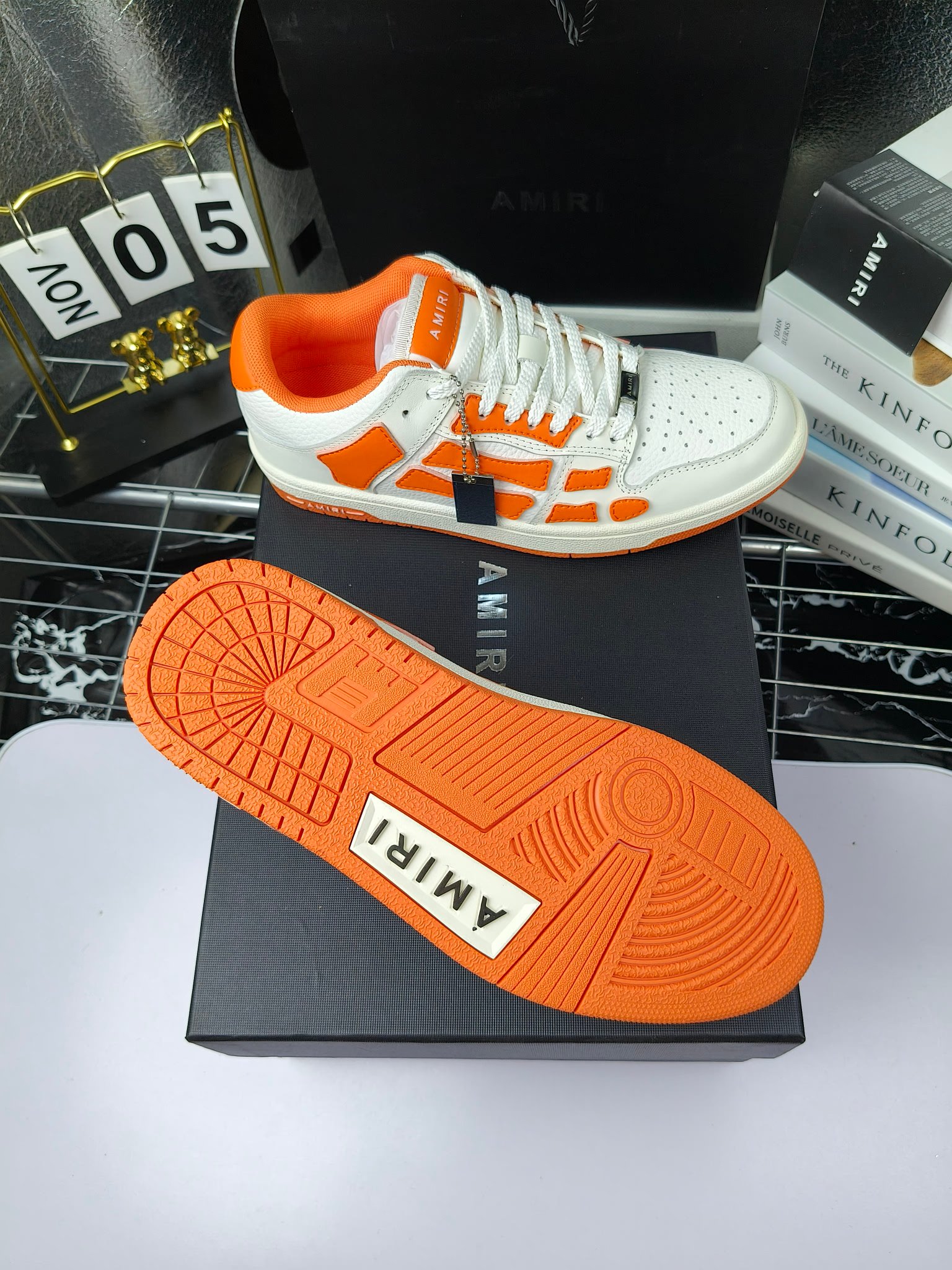 这款鞋子是AAAAA 1:1 质量 (非常棒). 使用了和原版一模一样的材料. 商标部分也保持了和AMIRI一样. 图片拍摄是实物鞋子拍摄, 您所收到的实物保证和我们图片一模一样.