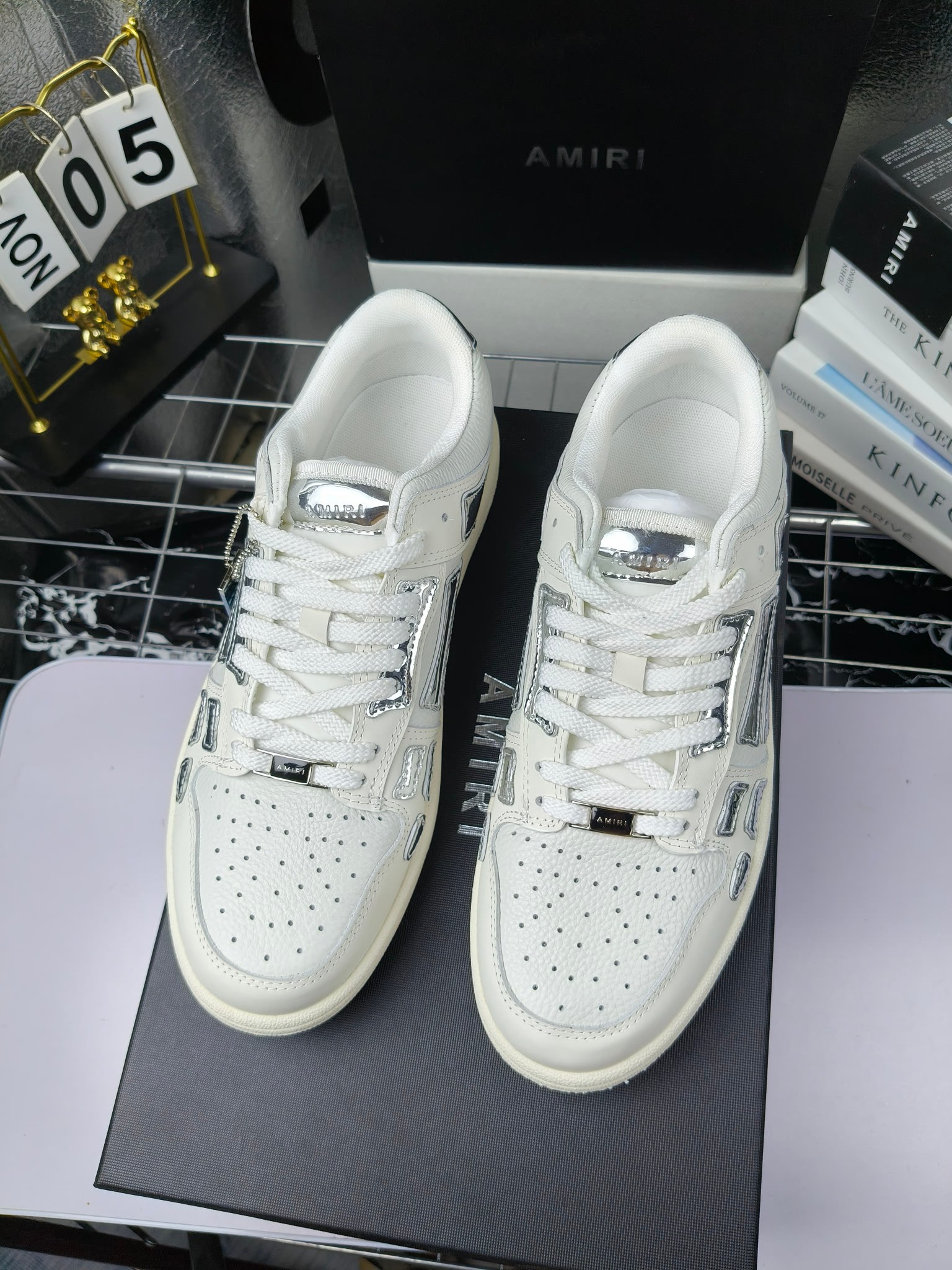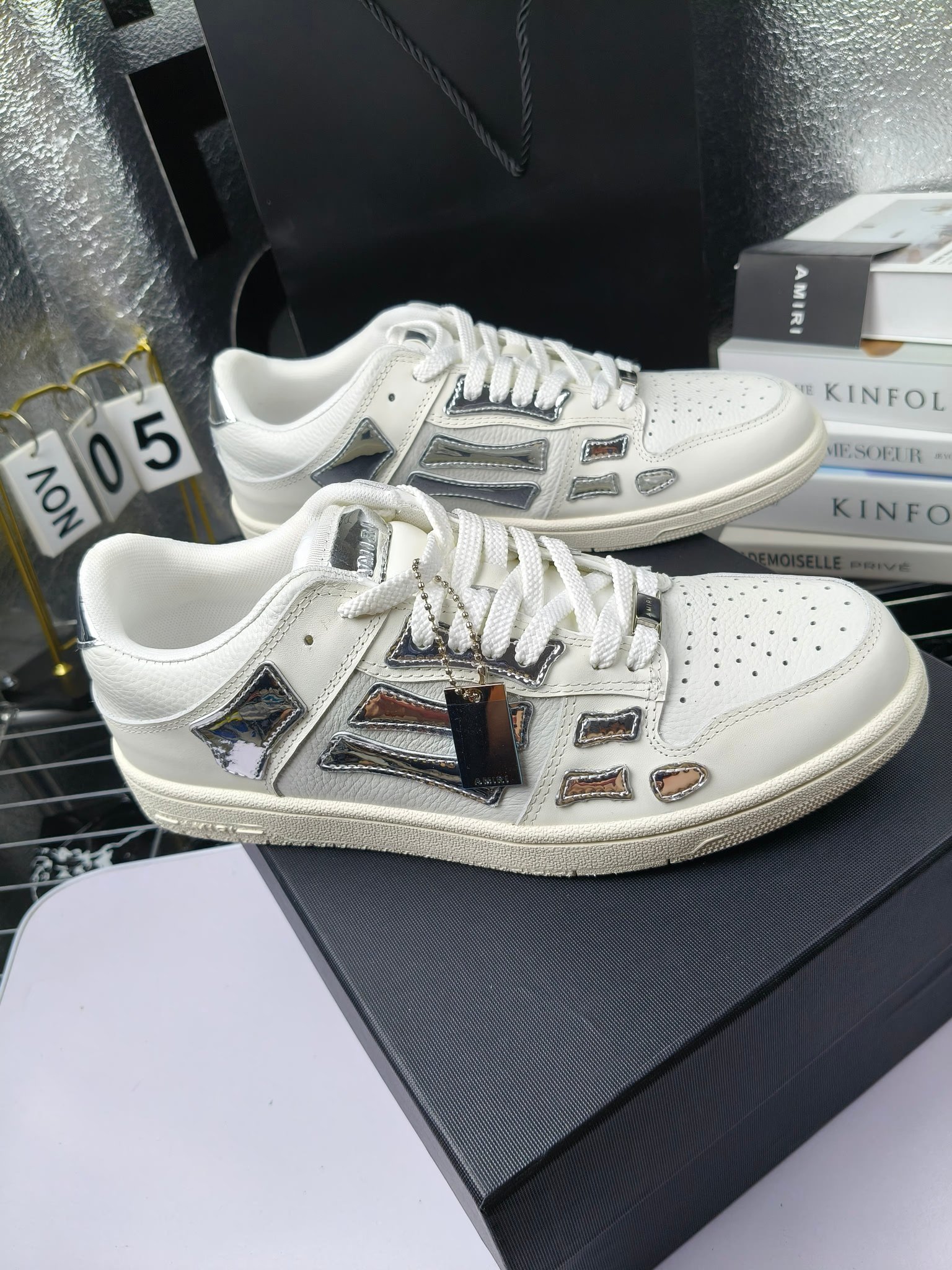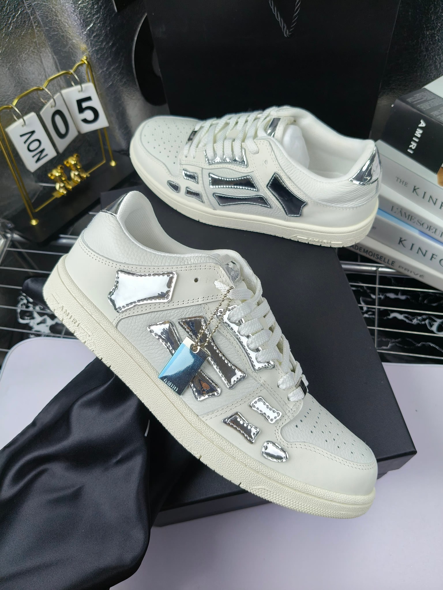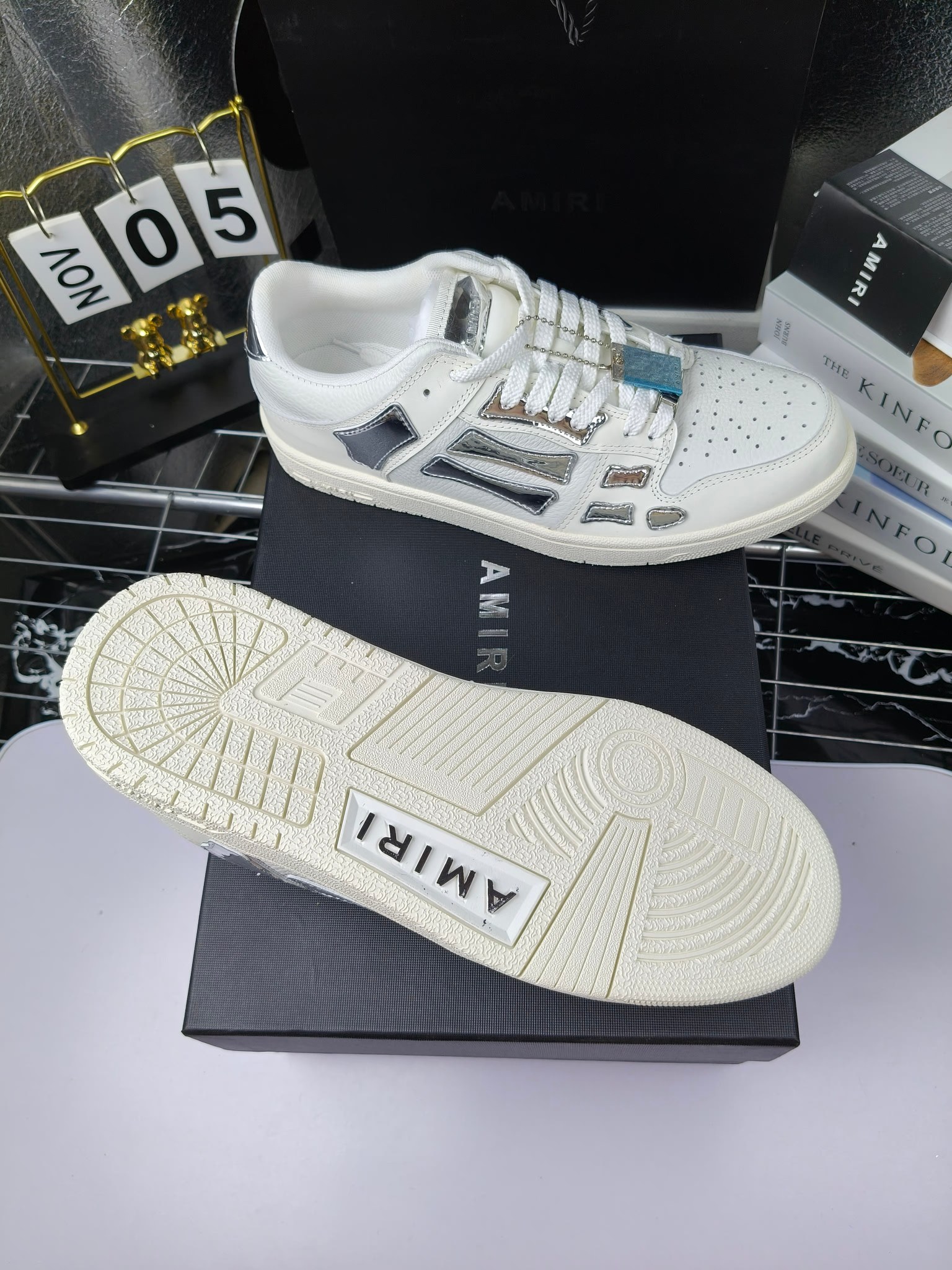 这款鞋子是AAAAA 1:1 质量 (非常棒). 使用了和原版一模一样的材料. 商标部分也保持了和AMIRI一样. 图片拍摄是实物鞋子拍摄, 您所收到的实物保证和我们图片一模一样.