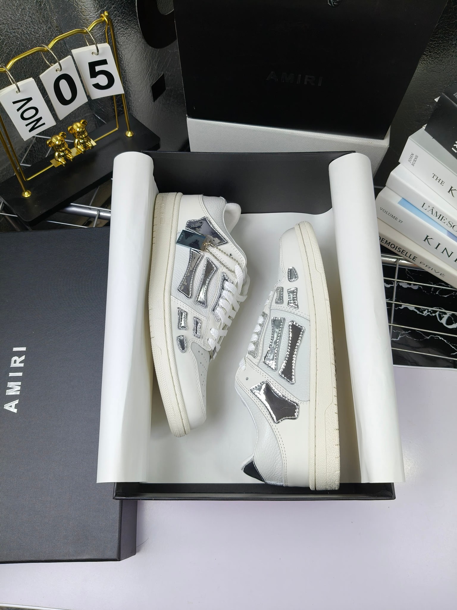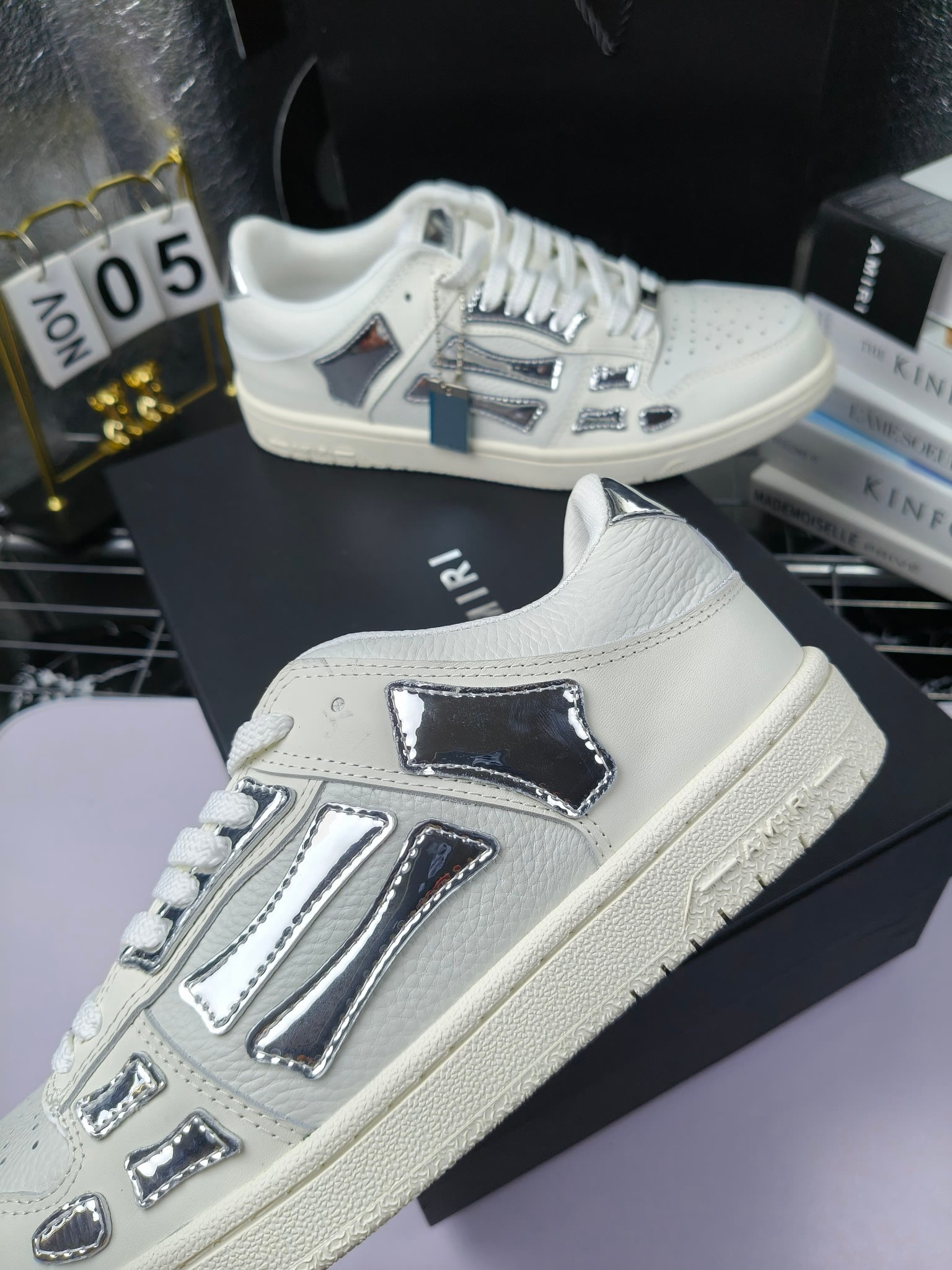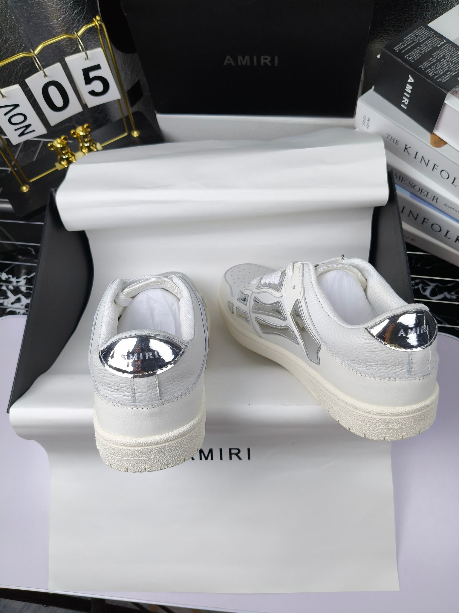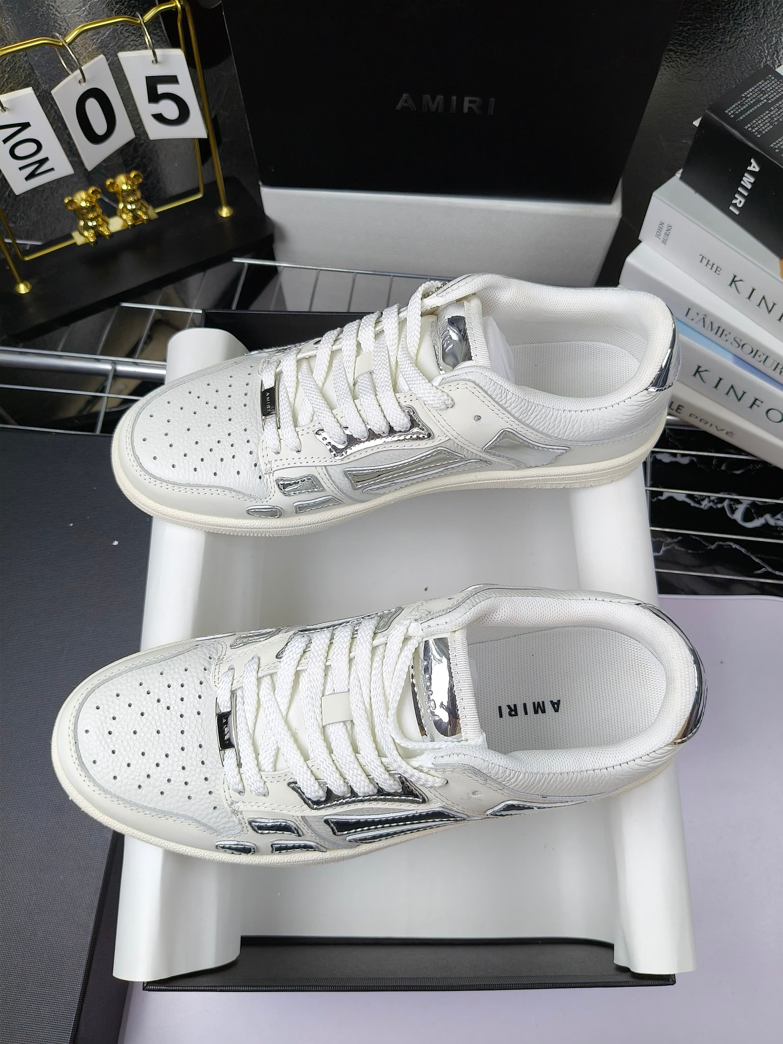 这款鞋子是AAAAA 1:1 质量 (非常棒). 使用了和原版一模一样的材料. 商标部分也保持了和AMIRI一样. 图片拍摄是实物鞋子拍摄, 您所收到的实物保证和我们图片一模一样.