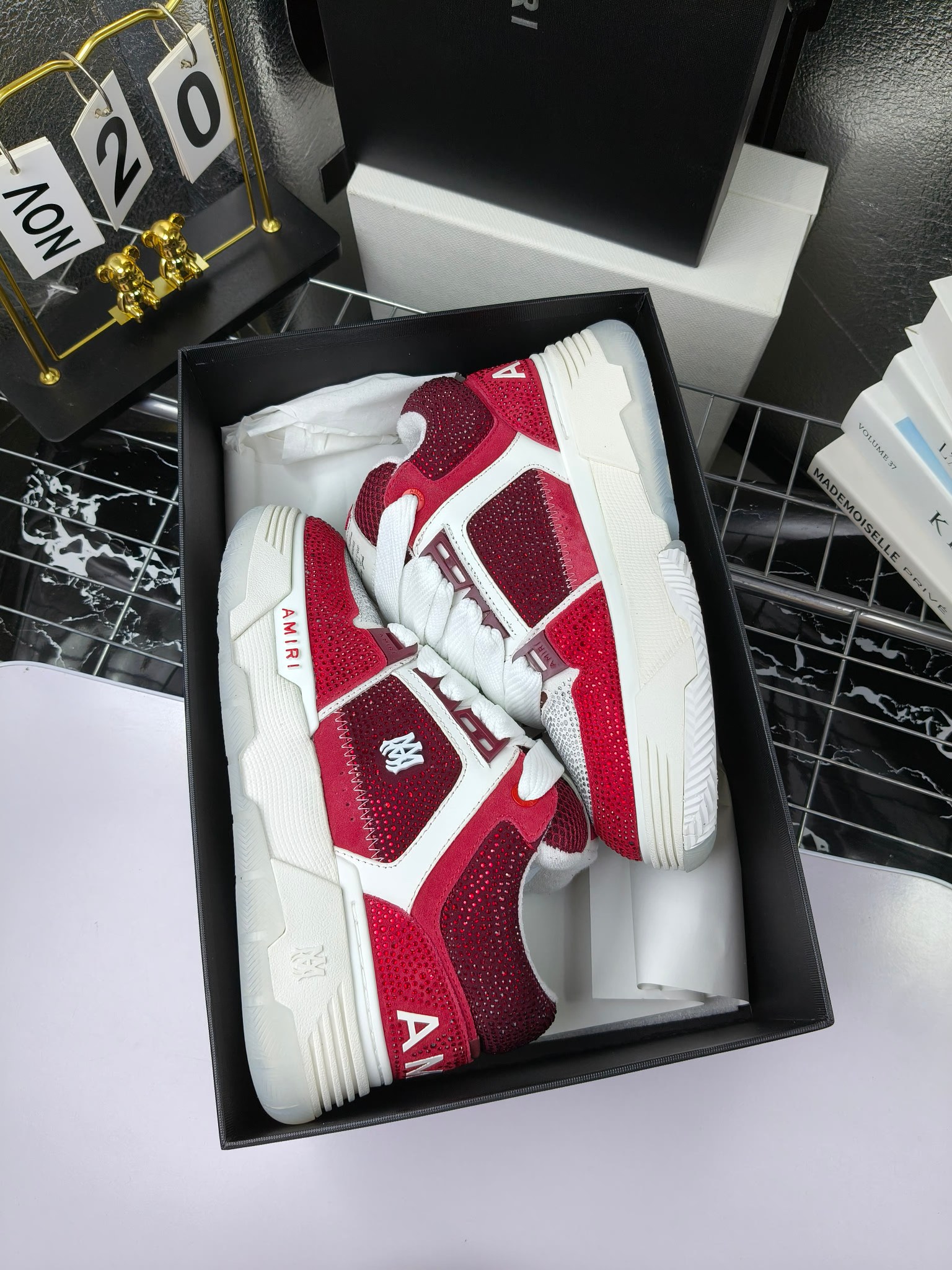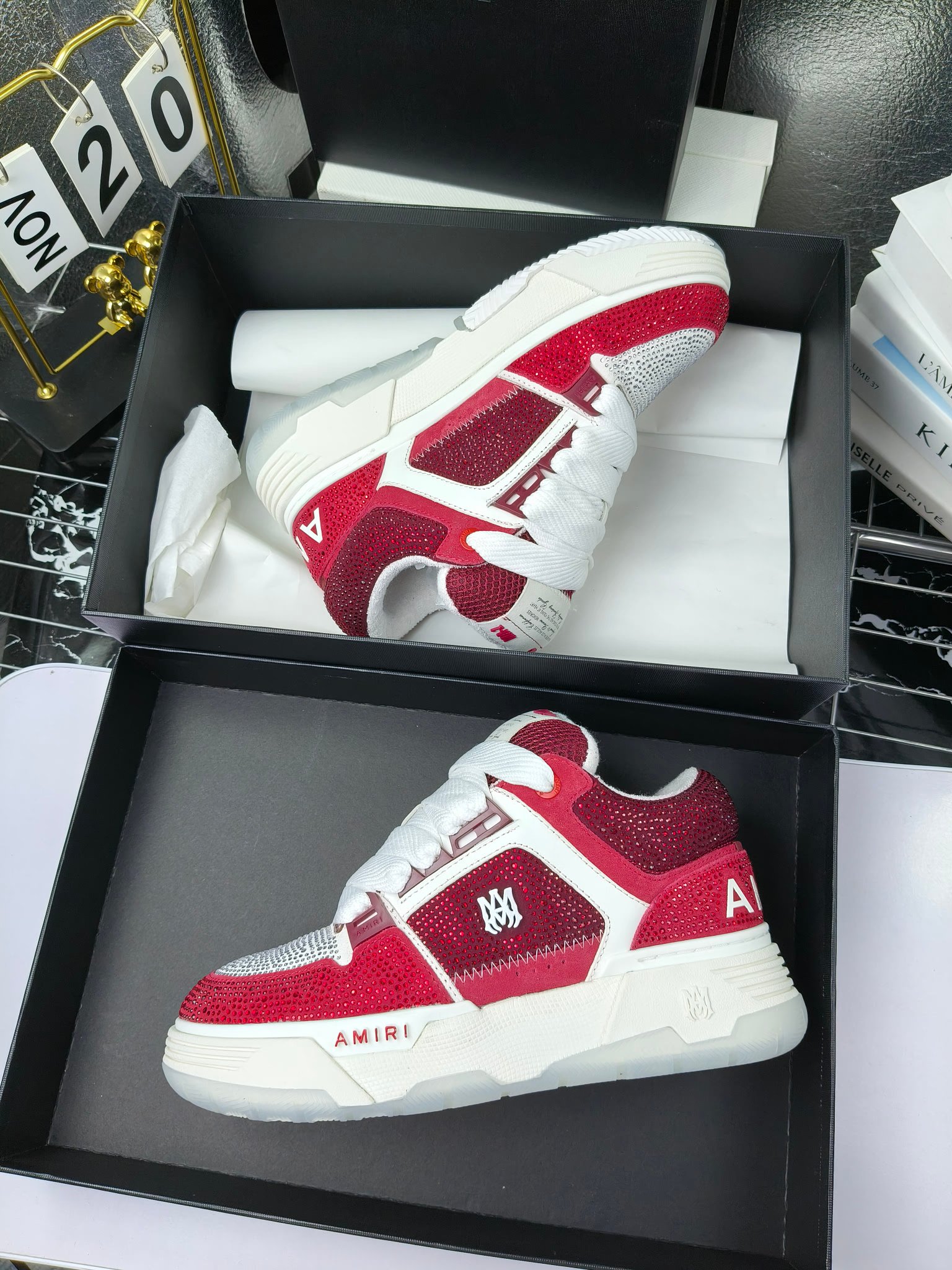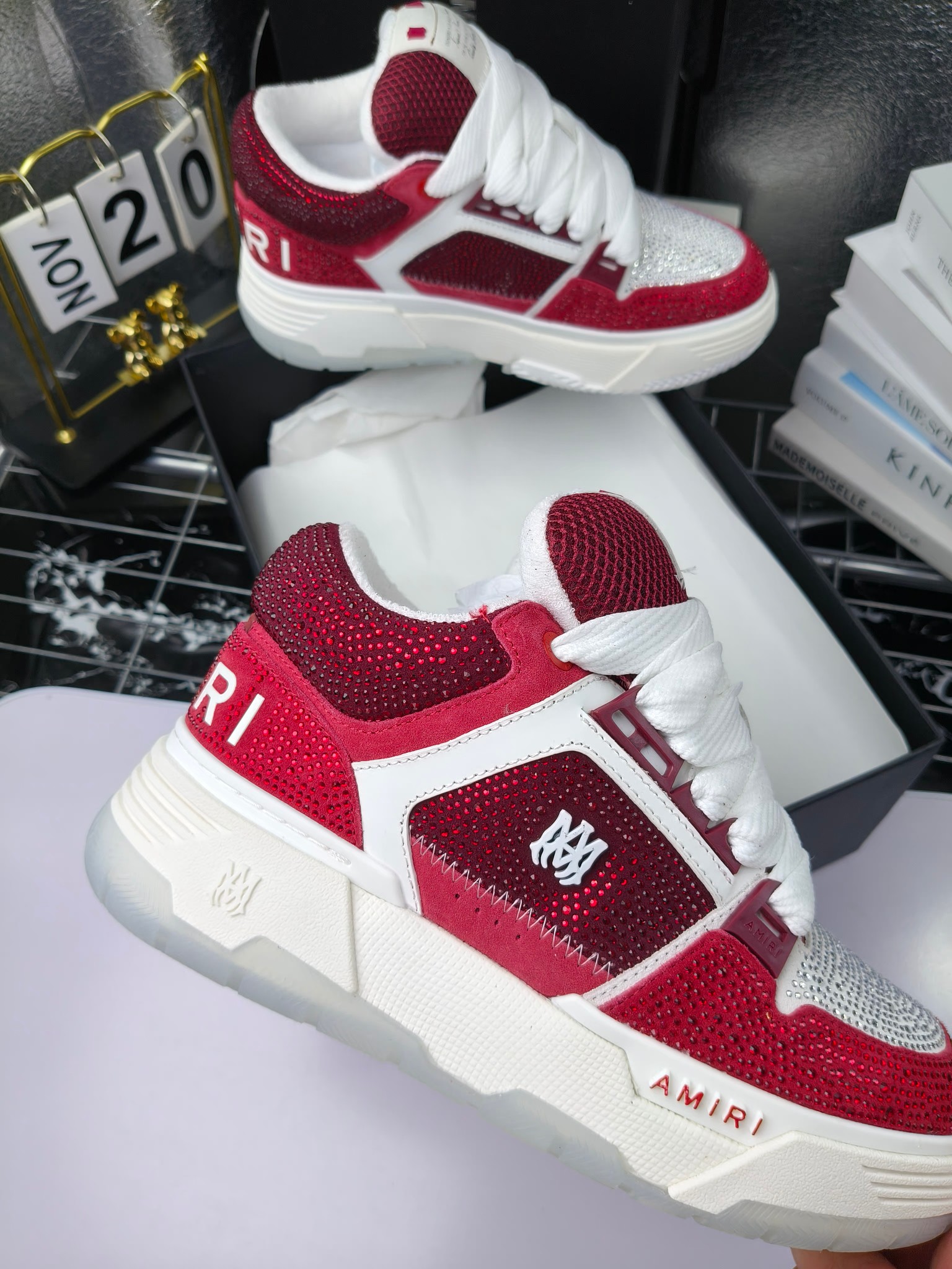 这款鞋子是AAAAA 1:1 质量 (非常棒). 使用了和原版一模一样的材料. 商标部分也保持了和AMIRI一样. 图片拍摄是实物鞋子拍摄, 您所收到的实物保证和我们图片一模一样.