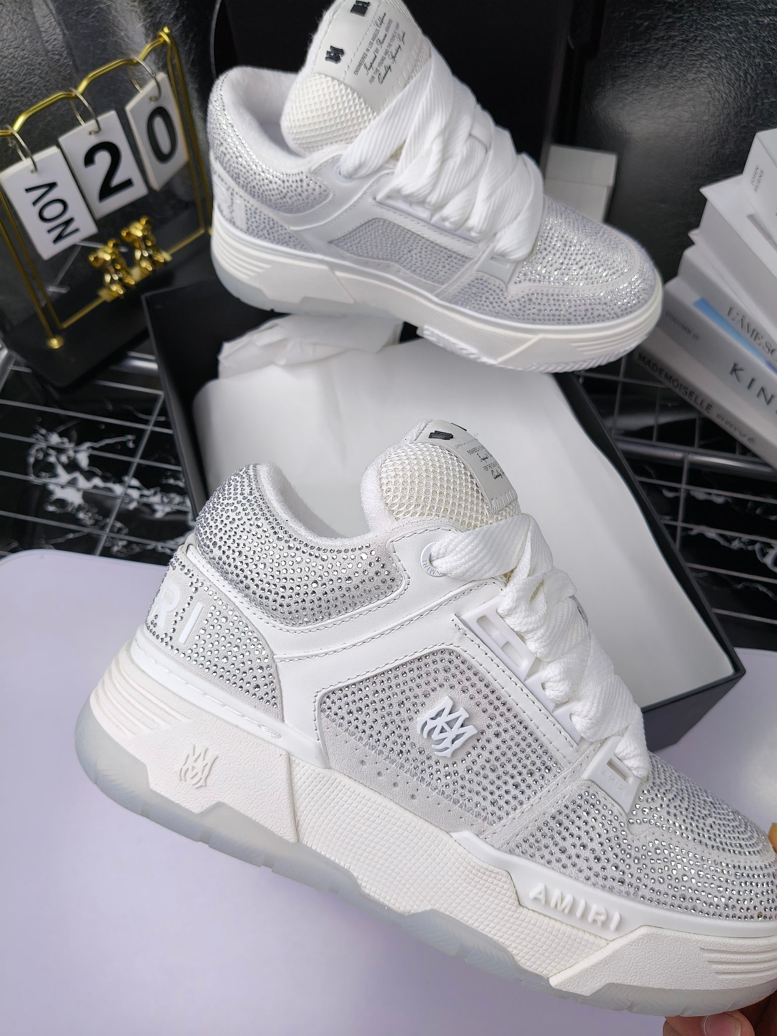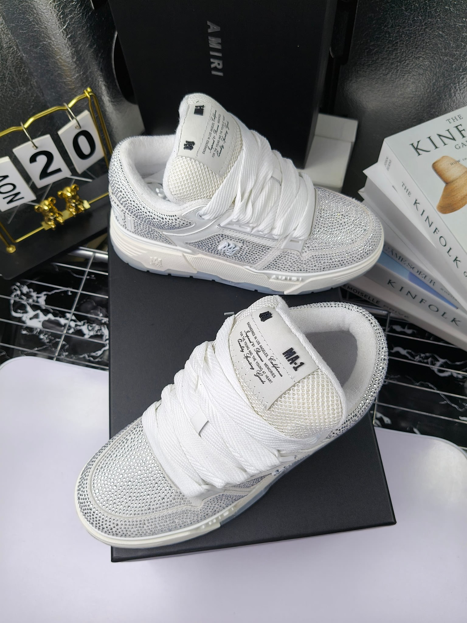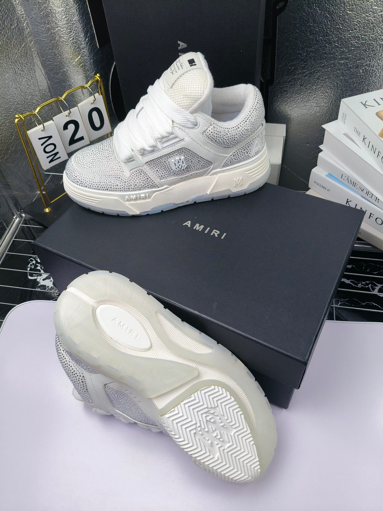 这款鞋子是AAAAA 1:1 质量 (非常棒). 使用了和原版一模一样的材料. 商标部分也保持了和AMIRI一样. 图片拍摄是实物鞋子拍摄, 您所收到的实物保证和我们图片一模一样.
