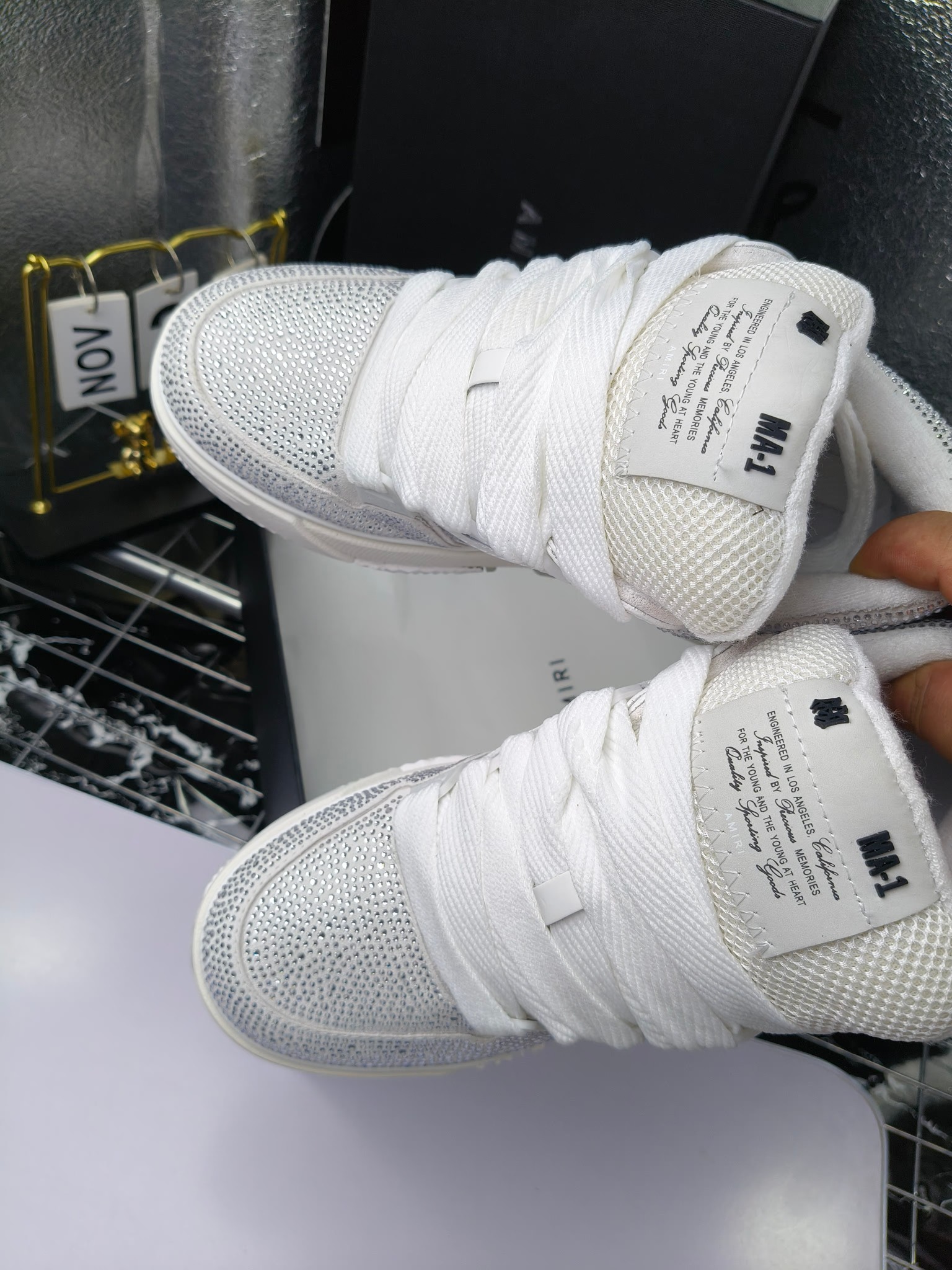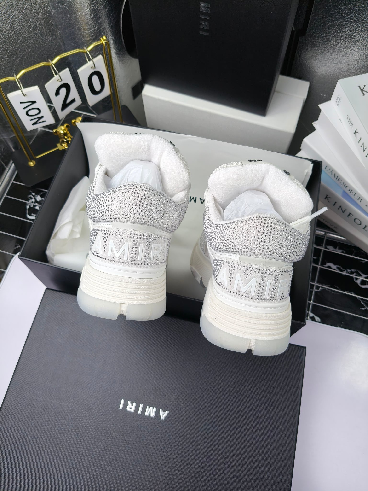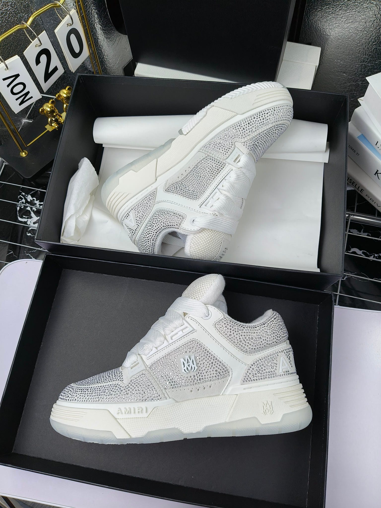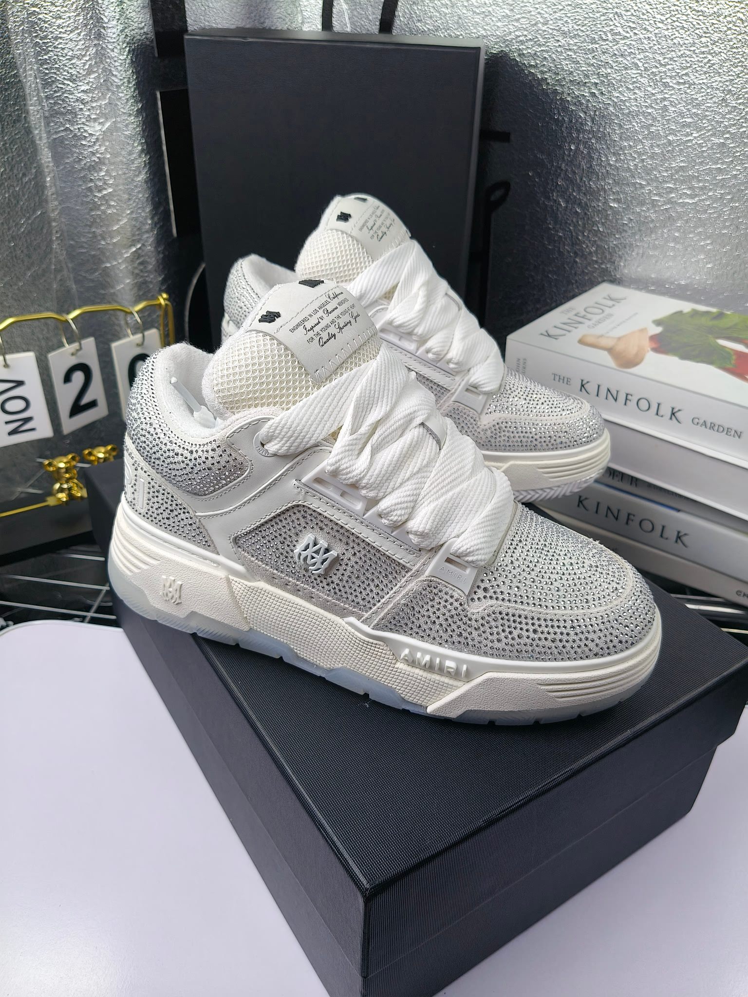 这款鞋子是AAAAA 1:1 质量 (非常棒). 使用了和原版一模一样的材料. 商标部分也保持了和AMIRI一样. 图片拍摄是实物鞋子拍摄, 您所收到的实物保证和我们图片一模一样.