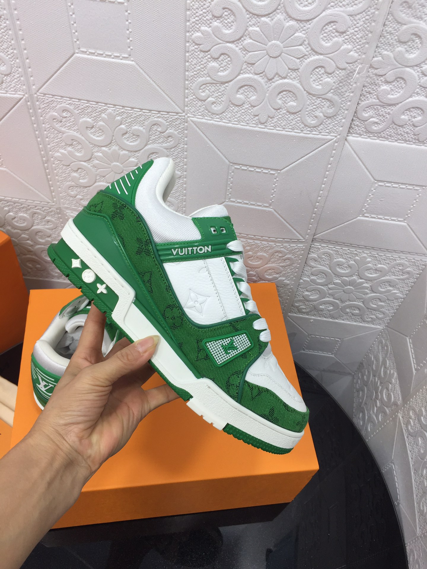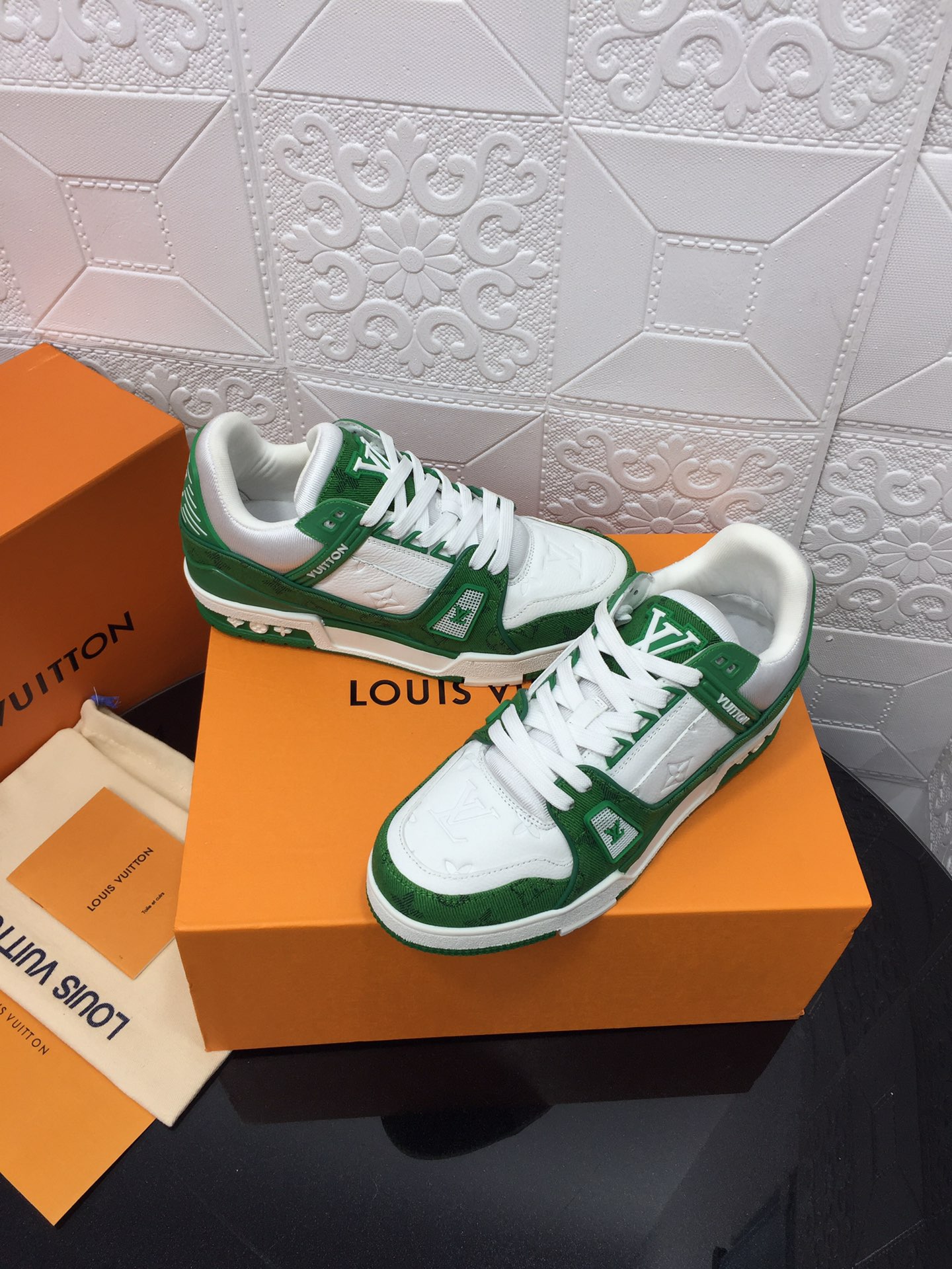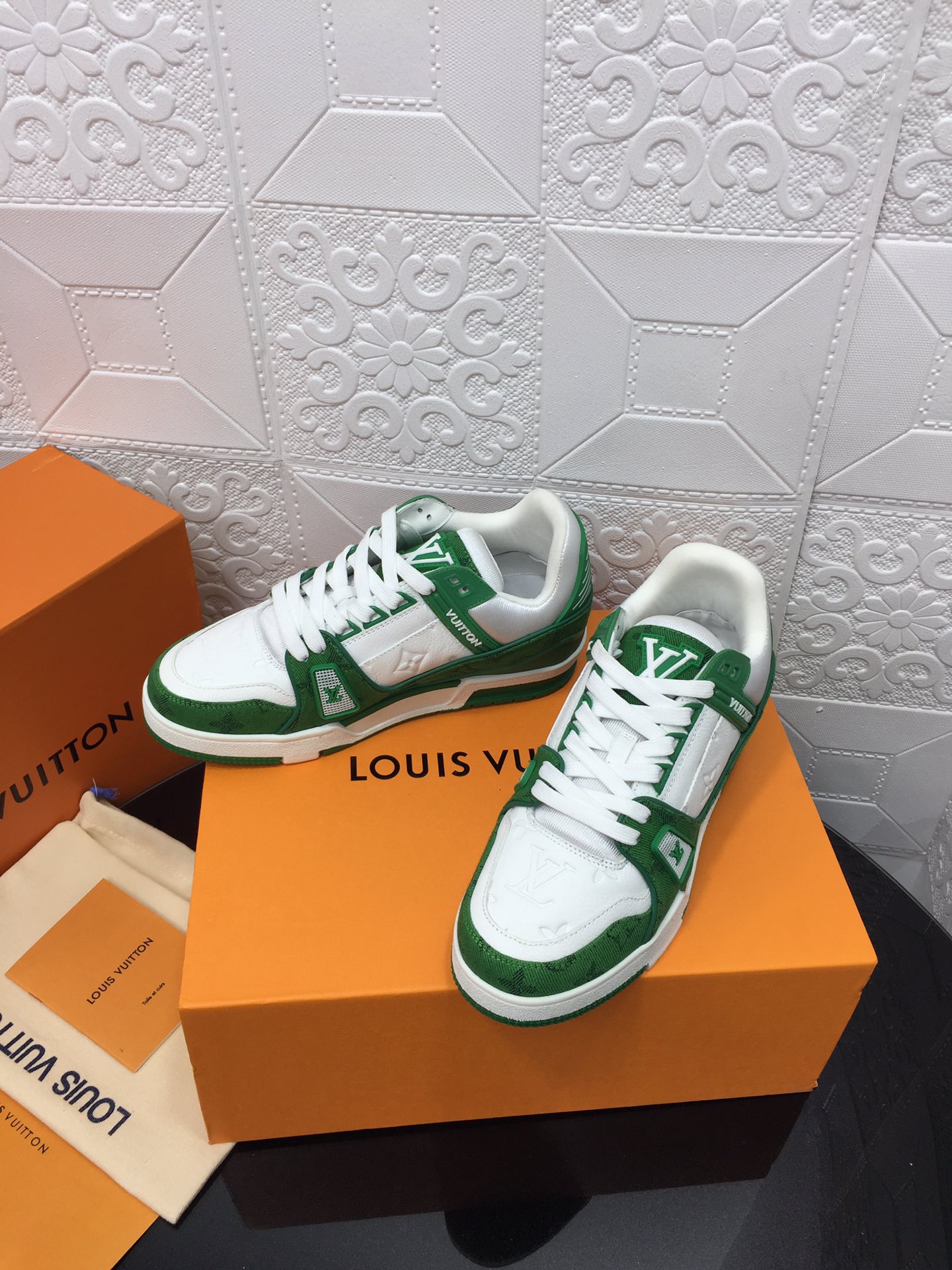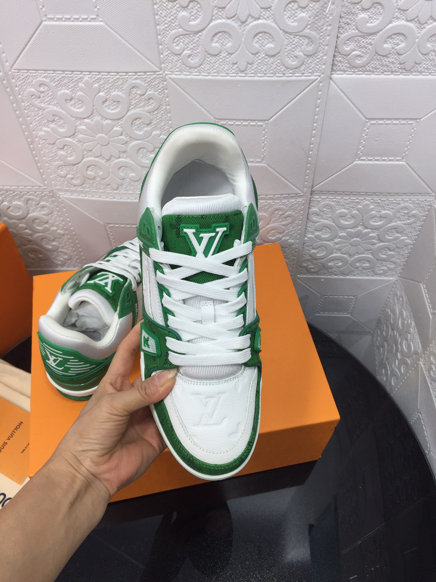这款鞋子是AAAAA 1:1 质量 (非常棒). 使用了和原版一模一样的材料. 商标部分也保持了和路易威登/Louis Vuitton一样. 图片拍摄是实物鞋子拍摄, 您所收到的实物保证和我们图片一模一样.
