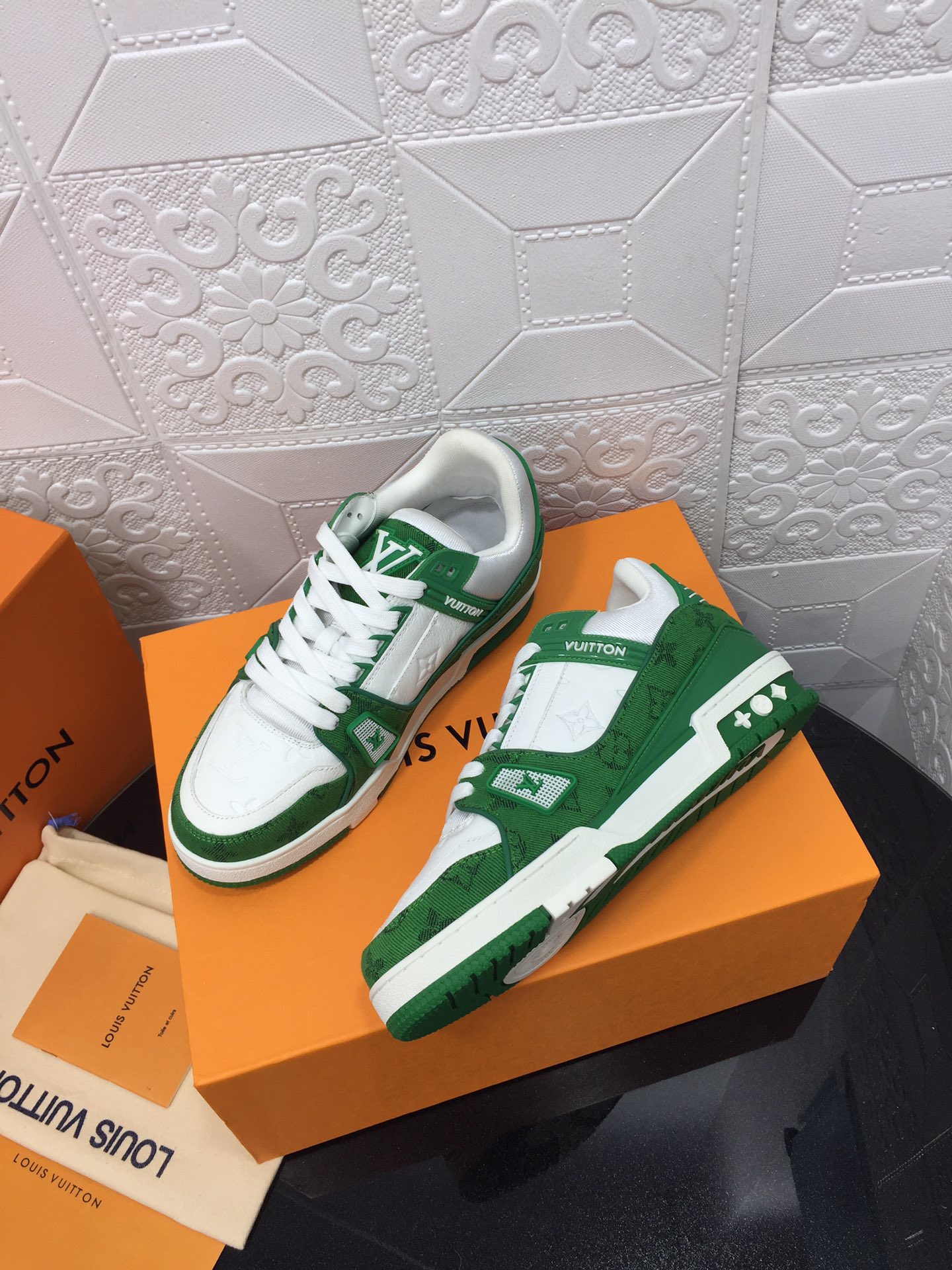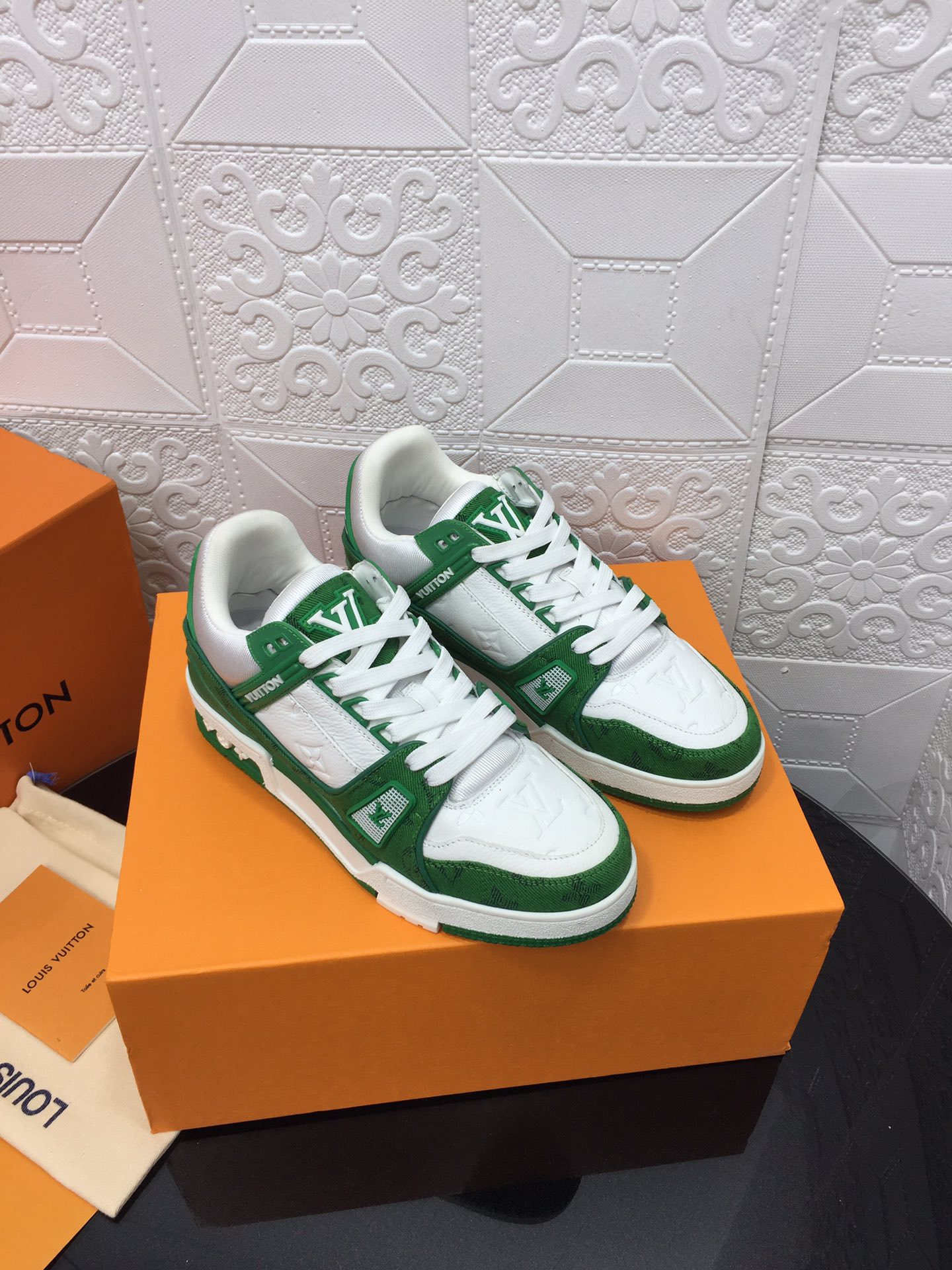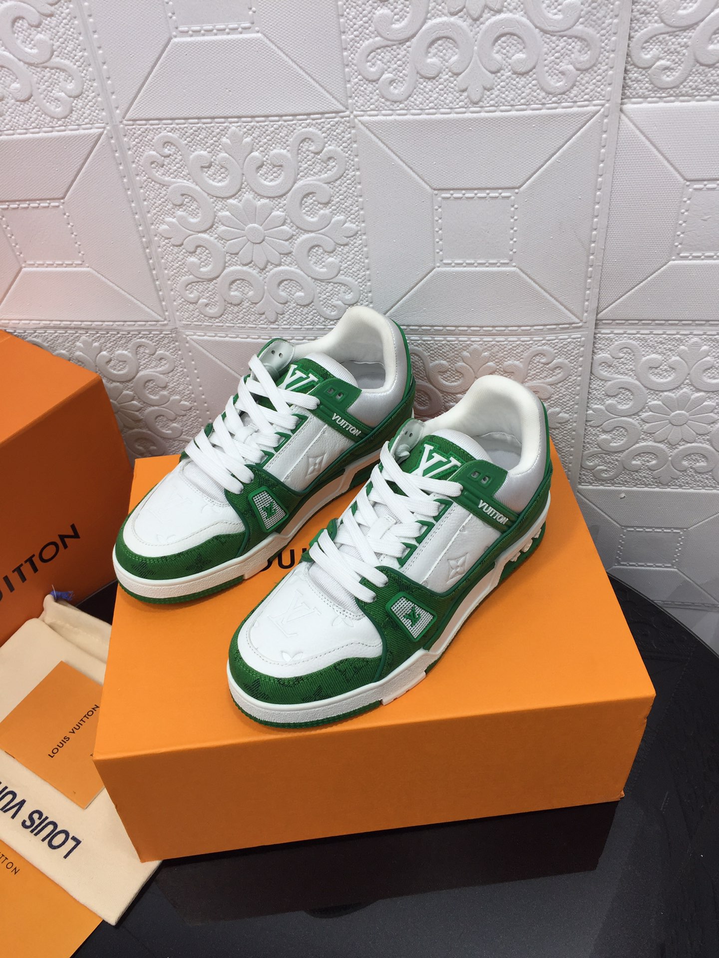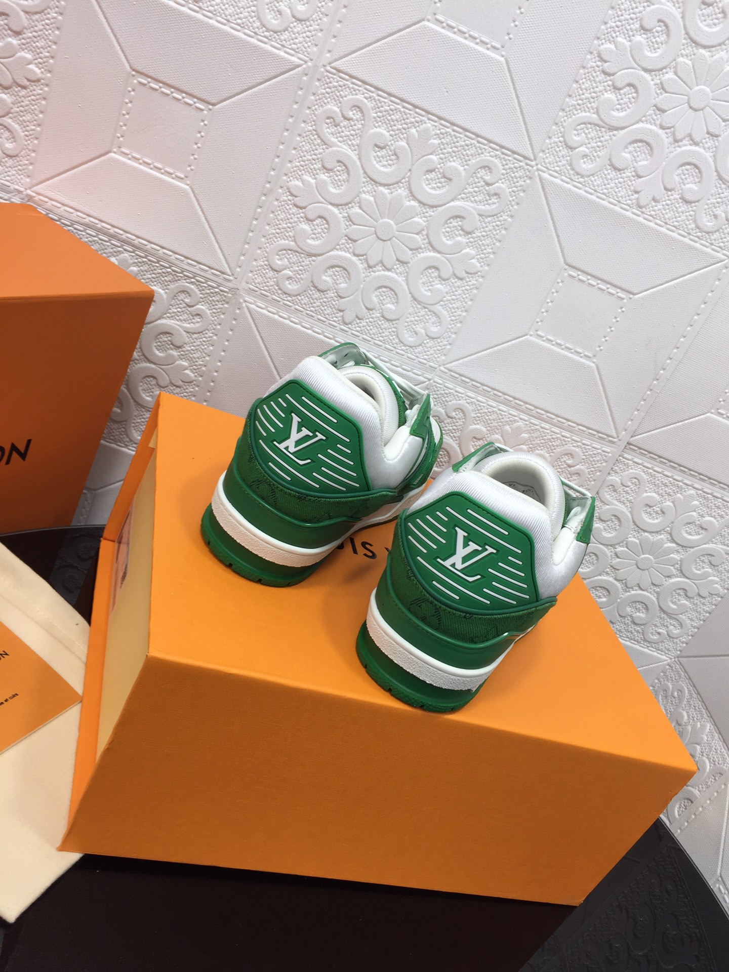 这款鞋子是AAAAA 1:1 质量 (非常棒). 使用了和原版一模一样的材料. 商标部分也保持了和路易威登/Louis Vuitton一样. 图片拍摄是实物鞋子拍摄, 您所收到的实物保证和我们图片一模一样.