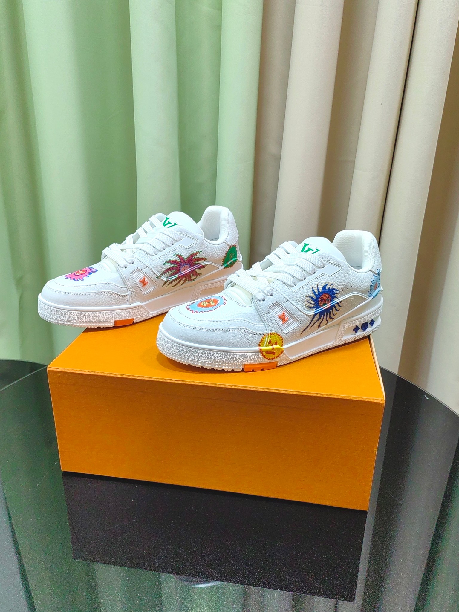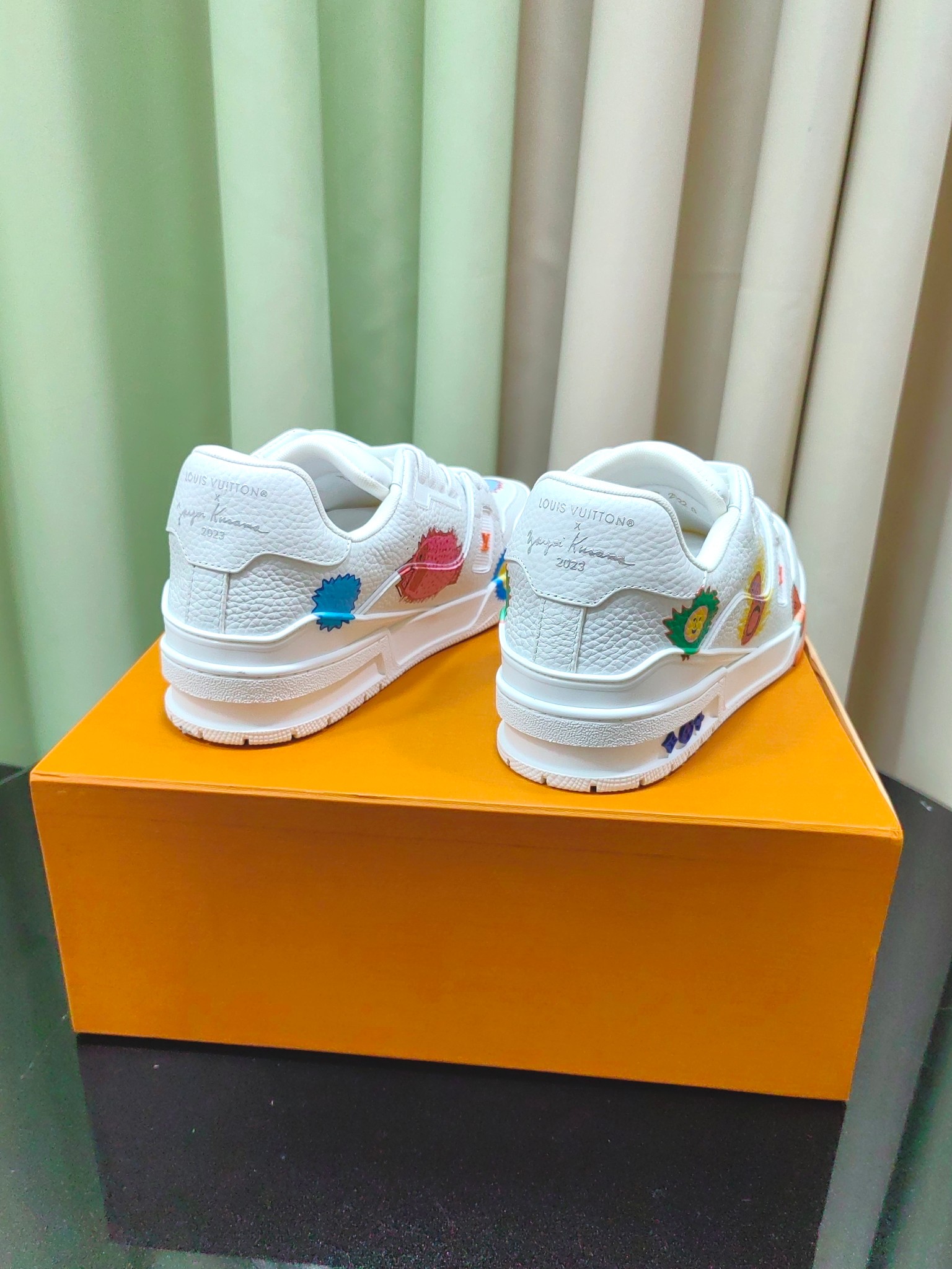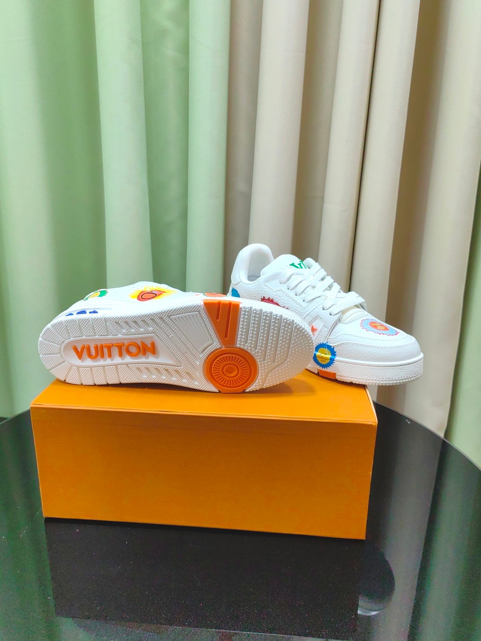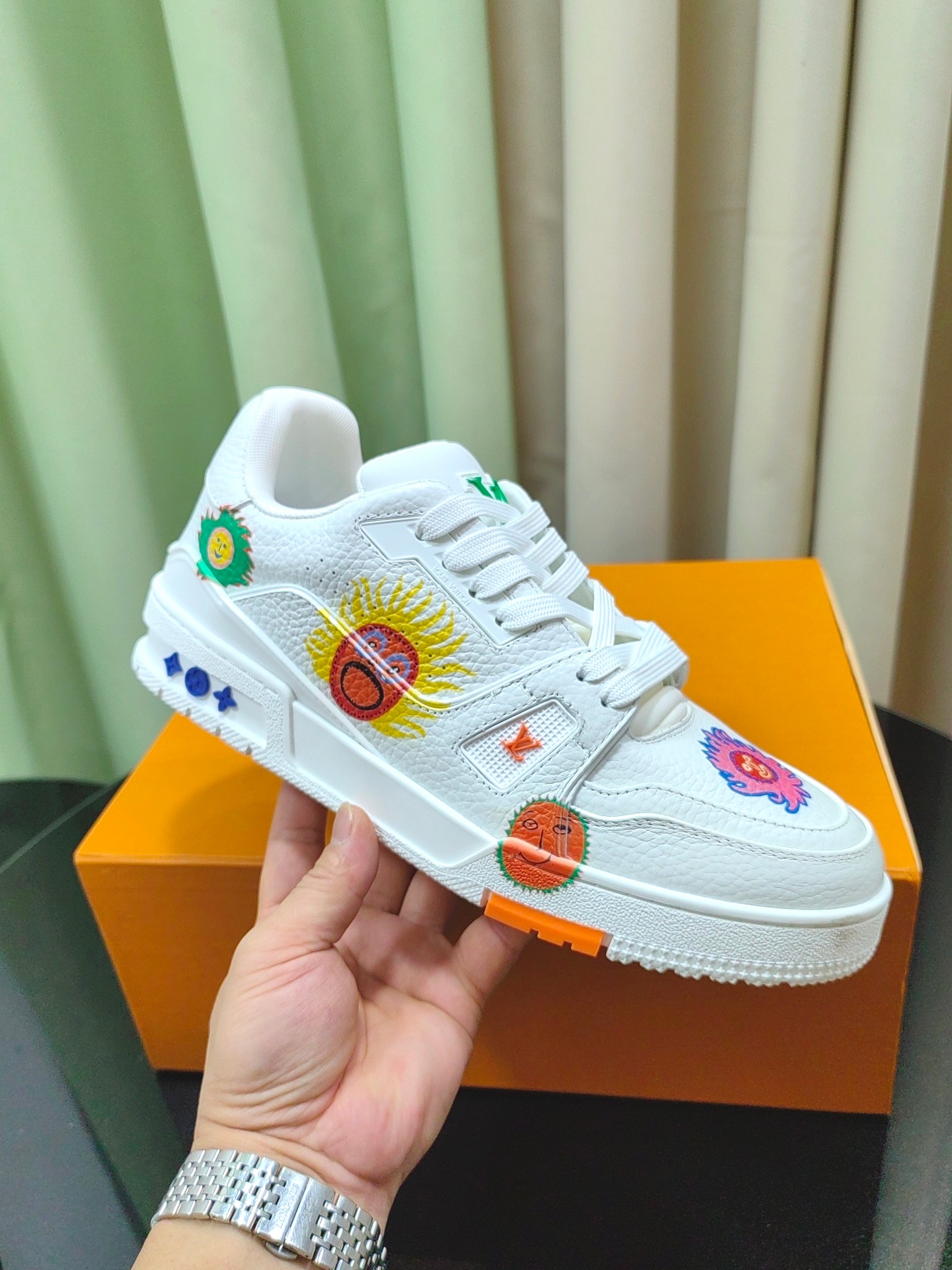 这款鞋子是AAAAA 1:1 质量 (非常棒). 使用了和原版一模一样的材料. 商标部分也保持了和路易威登/Louis Vuitton一样. 图片拍摄是实物鞋子拍摄, 您所收到的实物保证和我们图片一模一样.
