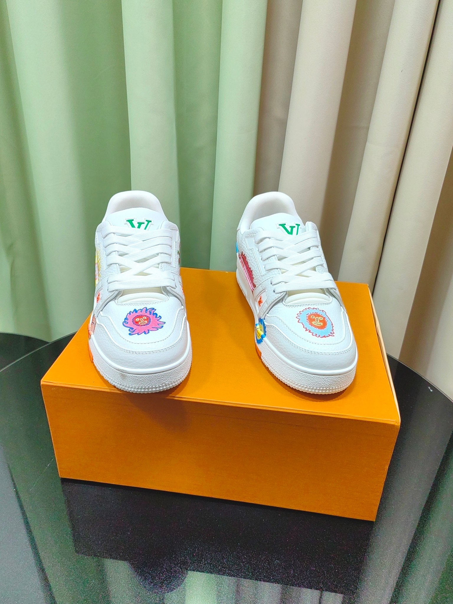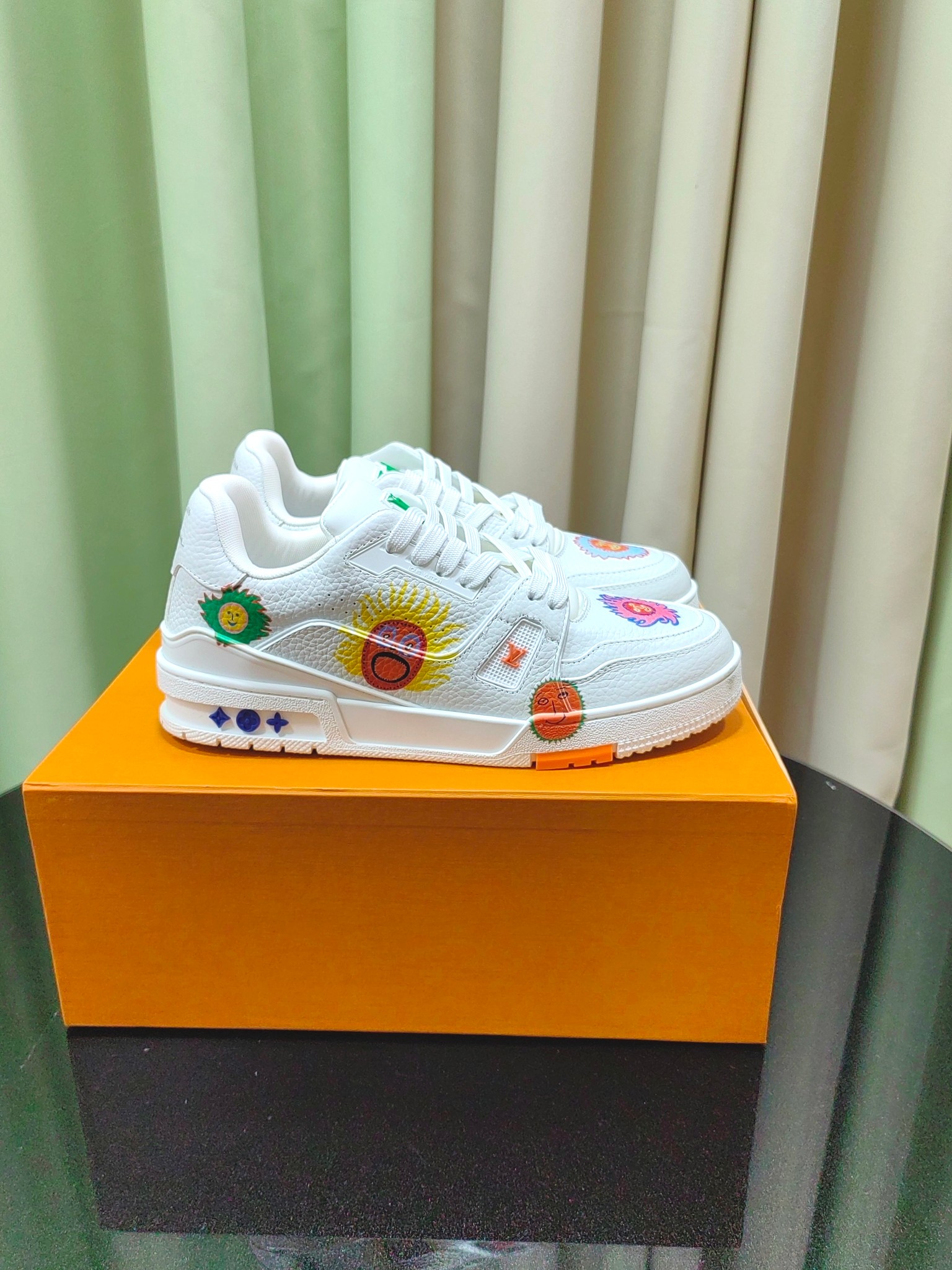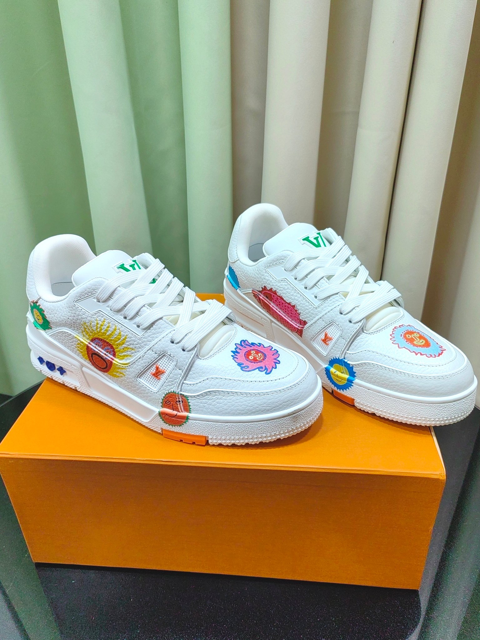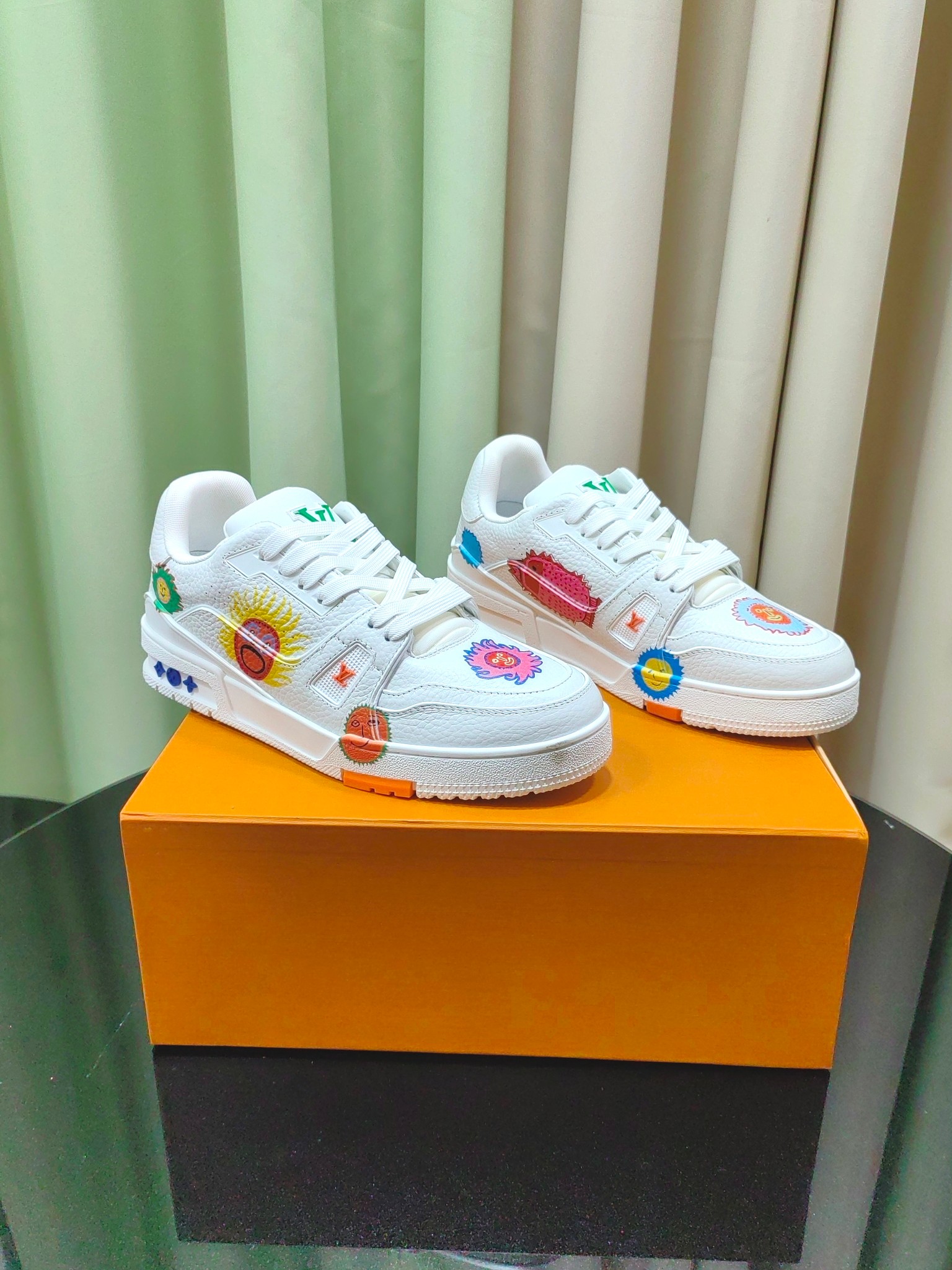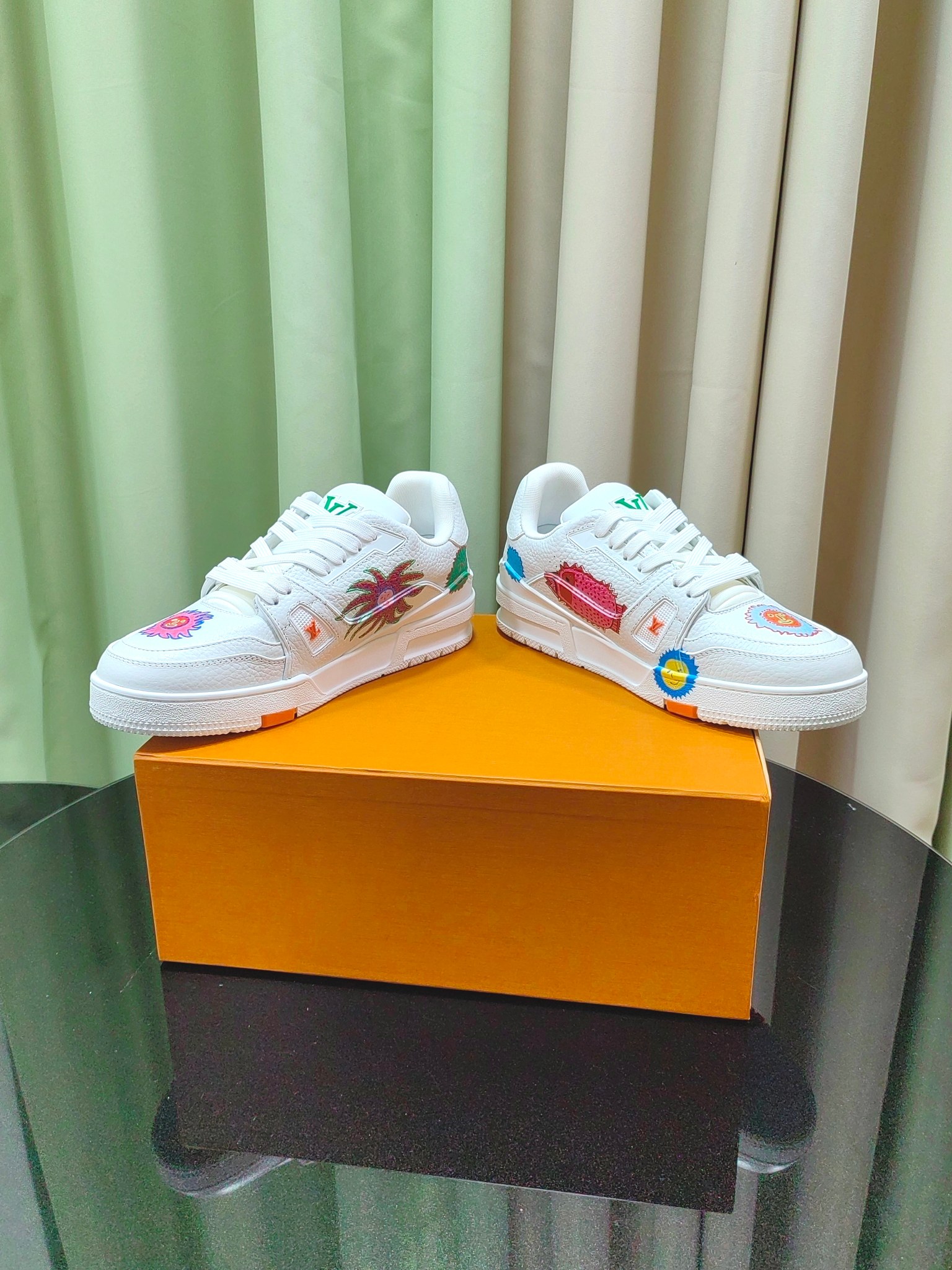 这款鞋子是AAAAA 1:1 质量 (非常棒). 使用了和原版一模一样的材料. 商标部分也保持了和路易威登/Louis Vuitton一样. 图片拍摄是实物鞋子拍摄, 您所收到的实物保证和我们图片一模一样.