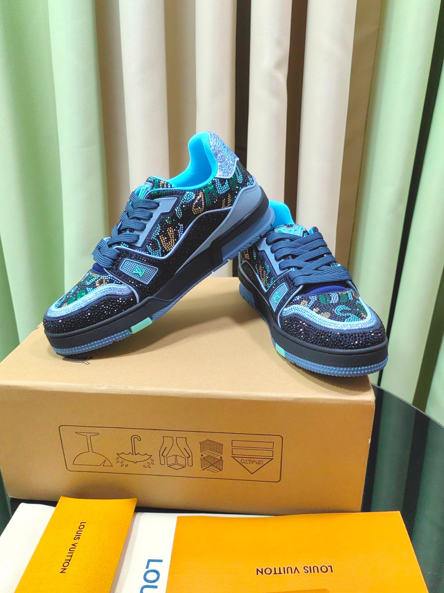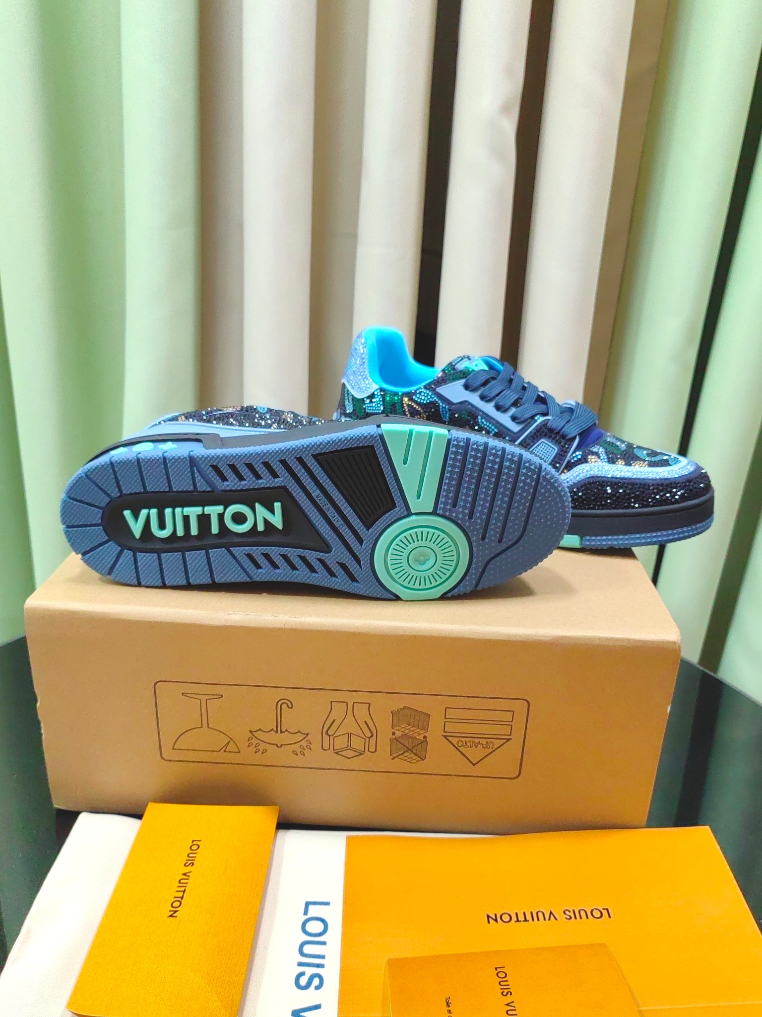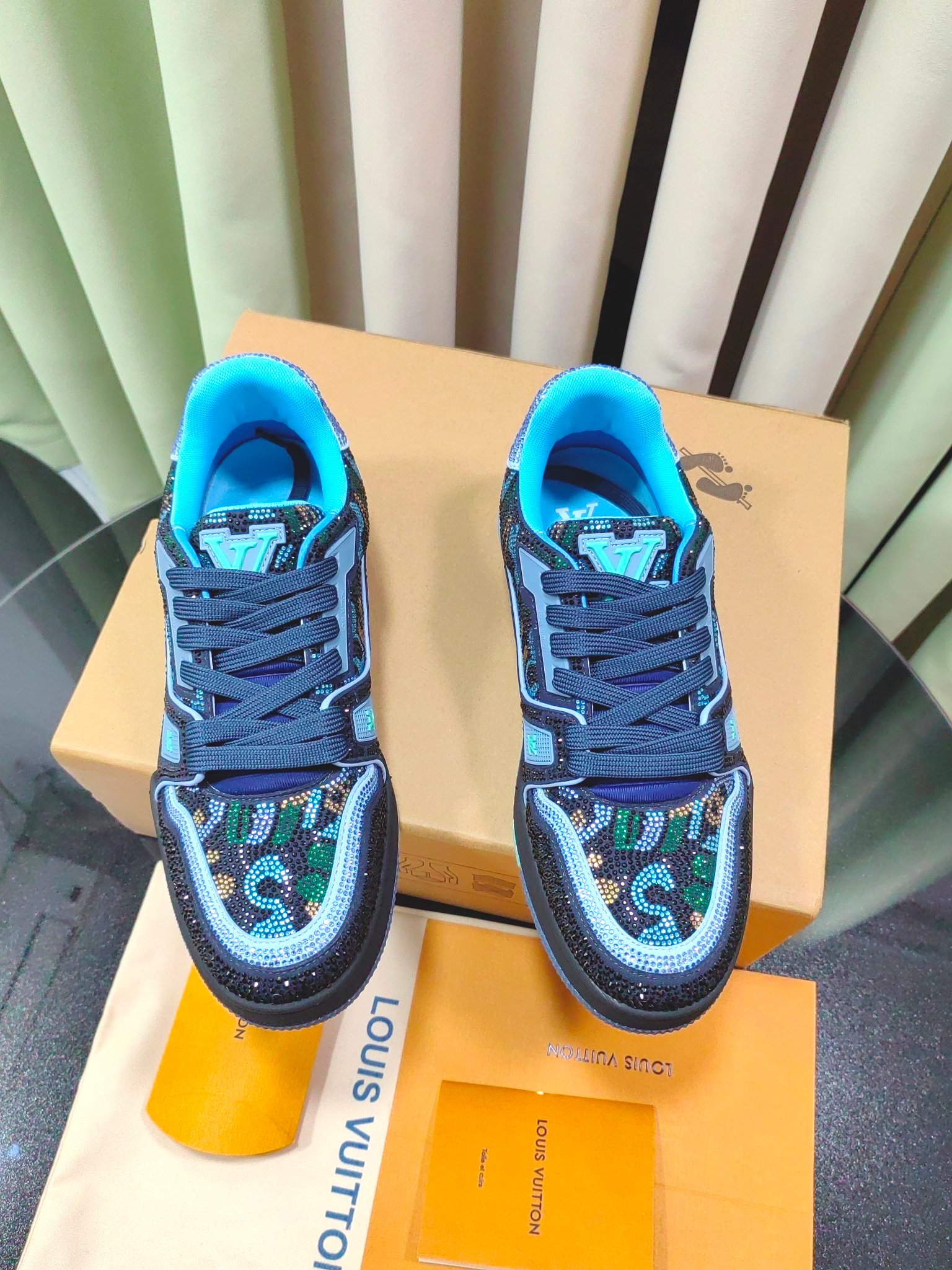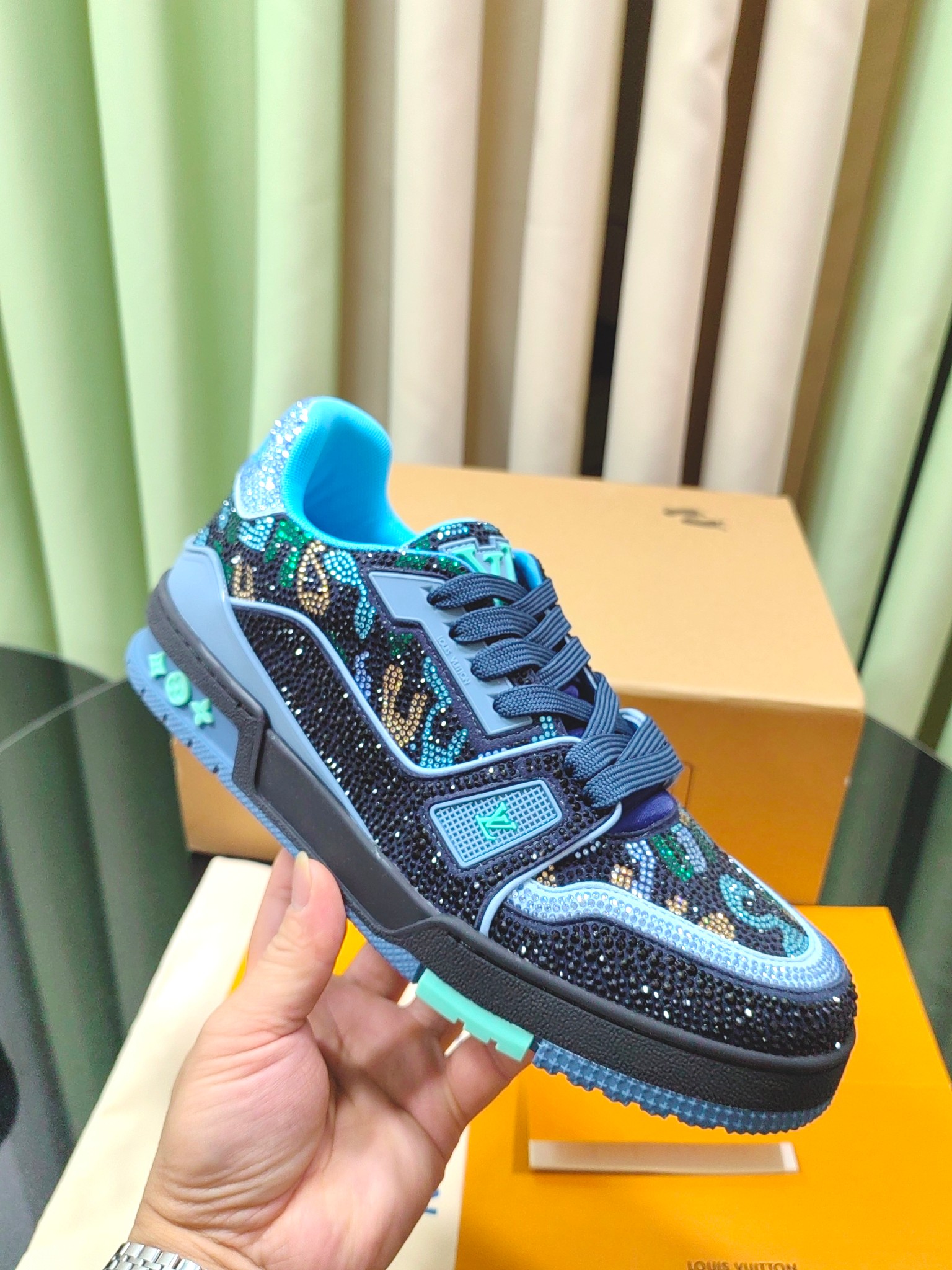这款鞋子是AAAAA 1:1 质量 (非常棒). 使用了和原版一模一样的材料. 商标部分也保持了和路易威登/Louis Vuitton一样. 图片拍摄是实物鞋子拍摄, 您所收到的实物保证和我们图片一模一样.