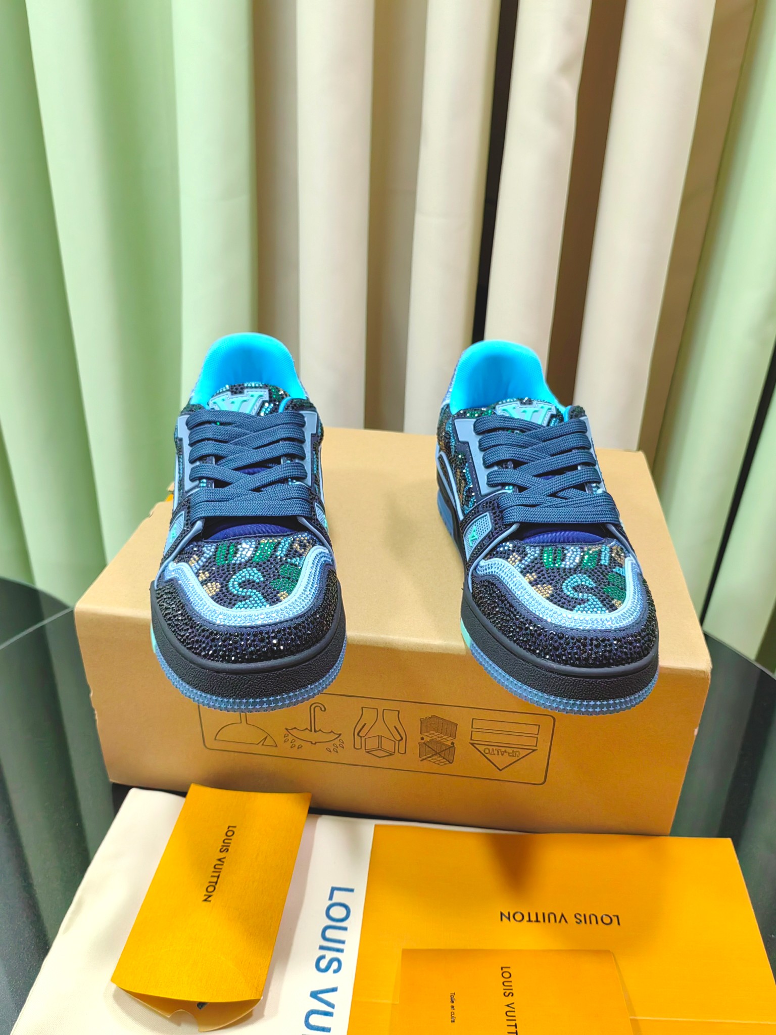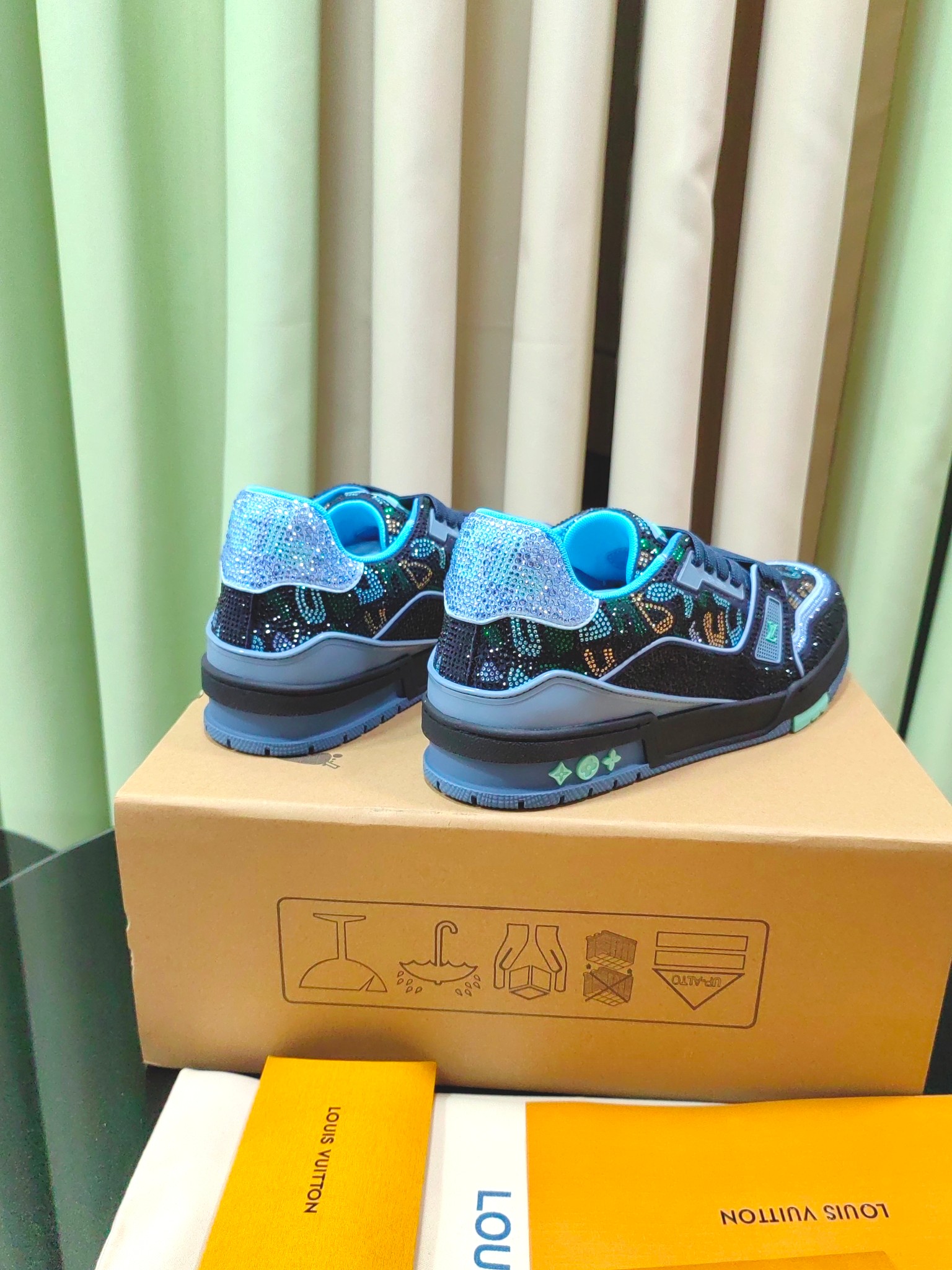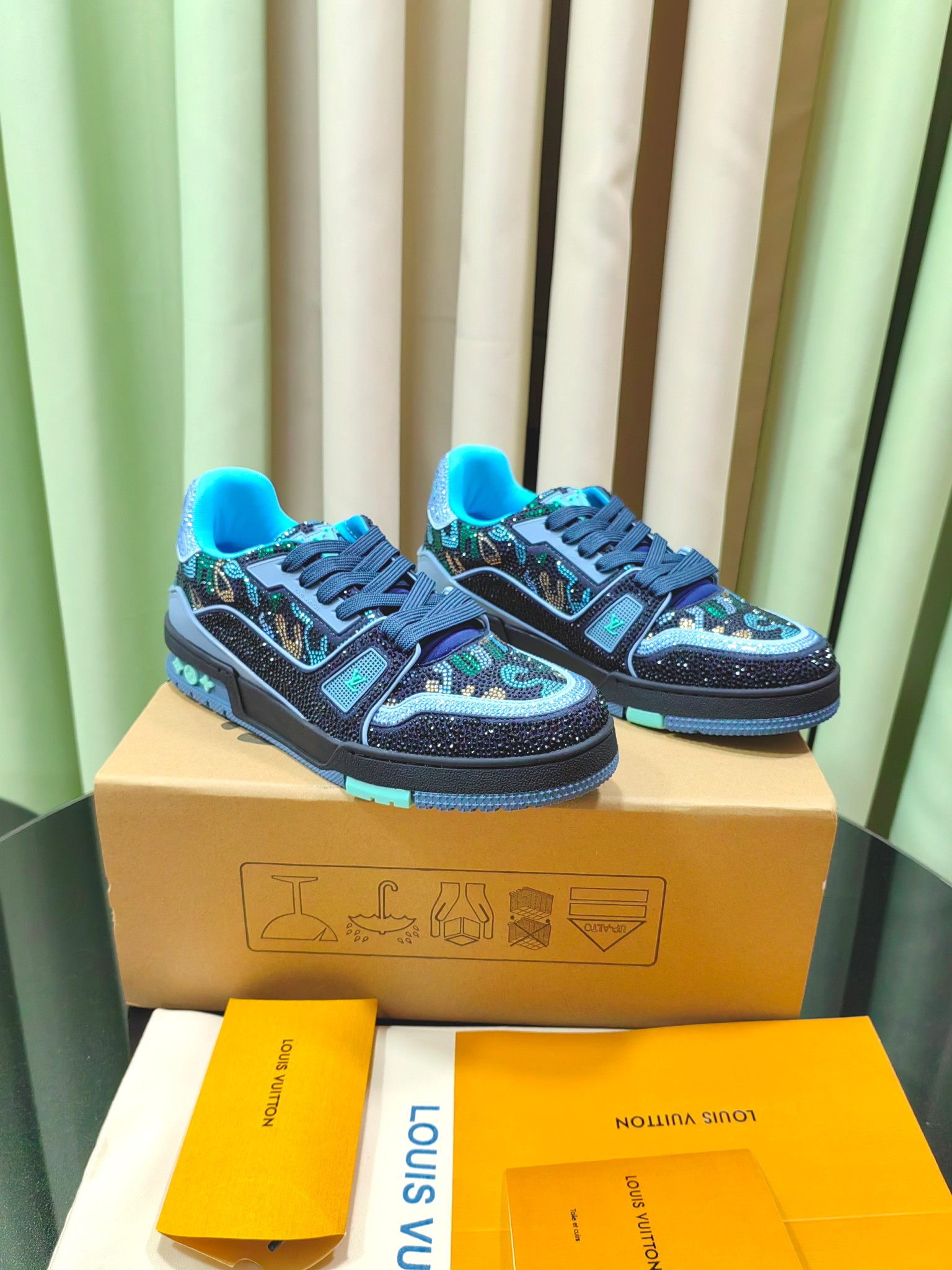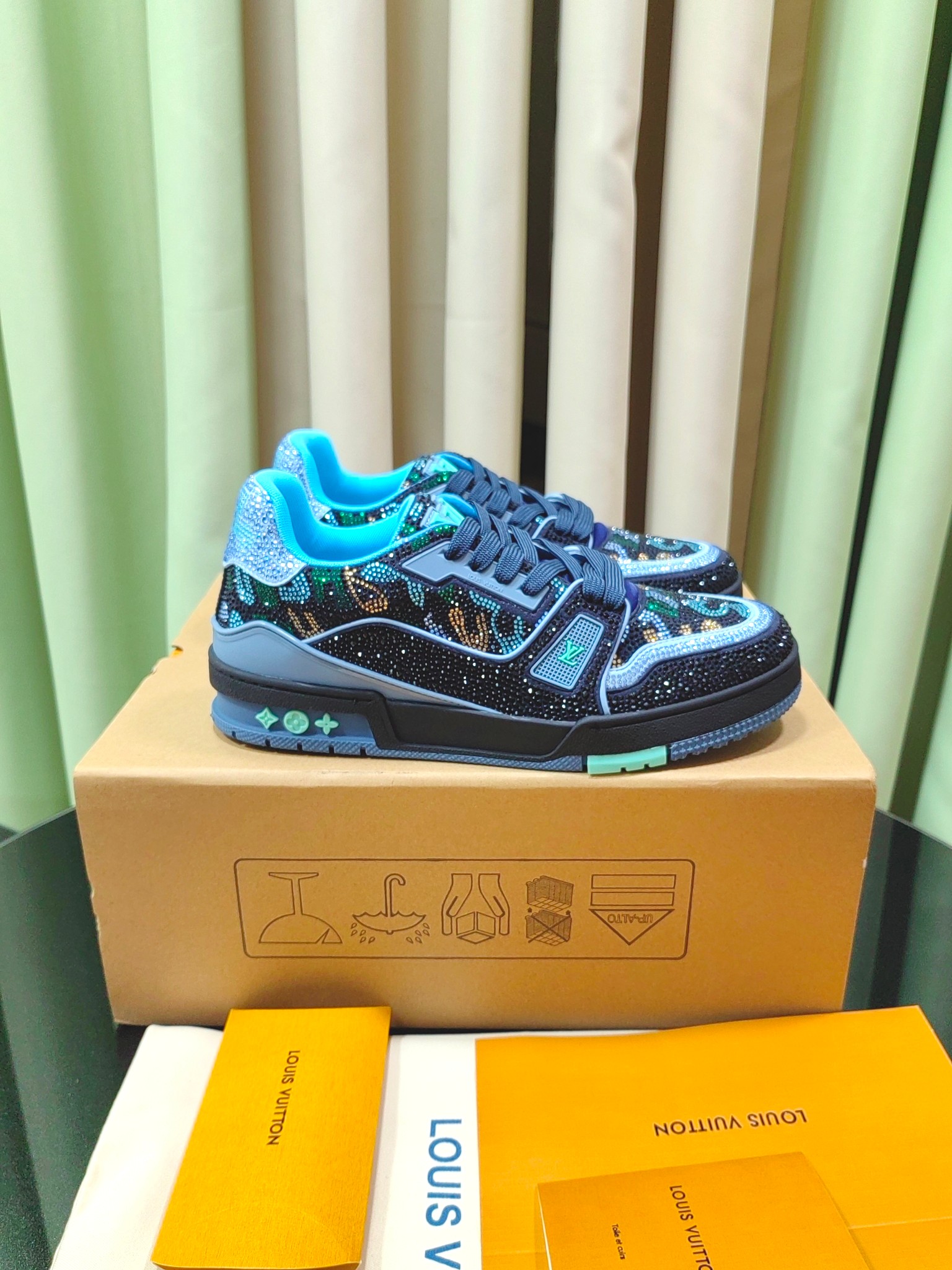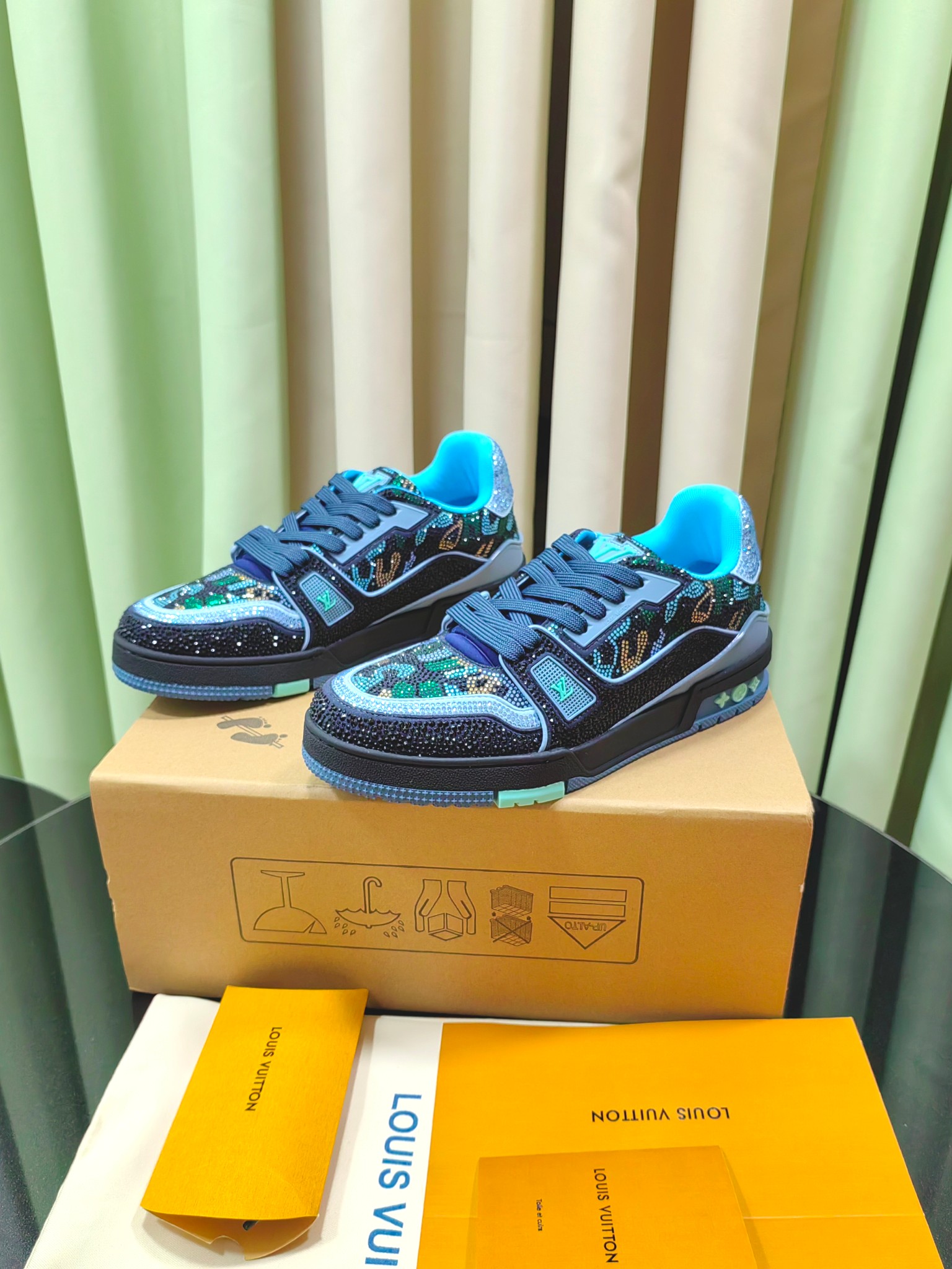 这款鞋子是AAAAA 1:1 质量 (非常棒). 使用了和原版一模一样的材料. 商标部分也保持了和路易威登/Louis Vuitton一样. 图片拍摄是实物鞋子拍摄, 您所收到的实物保证和我们图片一模一样.