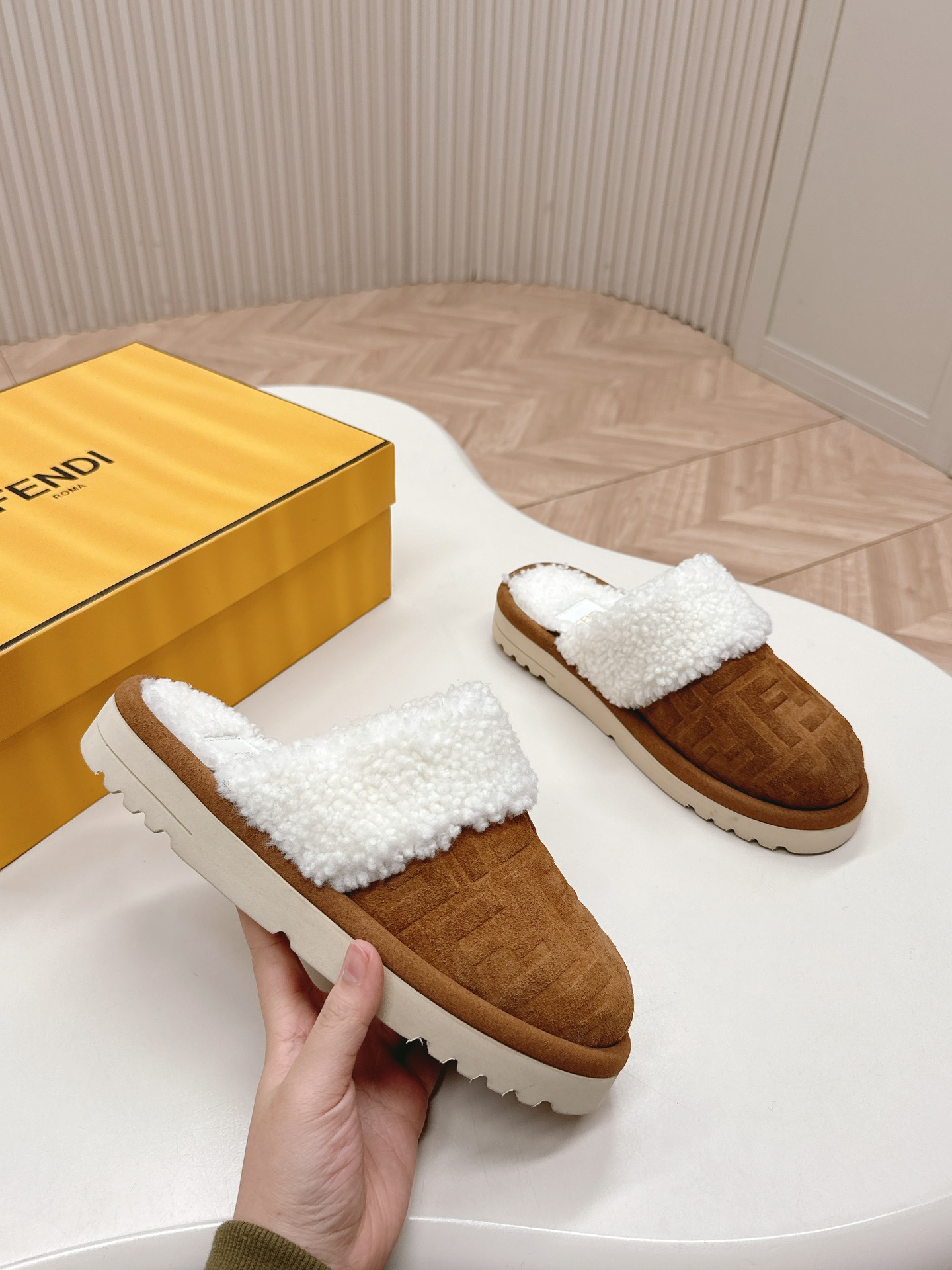 这款鞋子是AAAAA 1:1 质量 (非常棒). 使用了和原版一模一样的材料. 商标部分也保持了和芬迪/Fendi一样. 图片拍摄是实物鞋子拍摄, 您所收到的实物保证和我们图片一模一样.