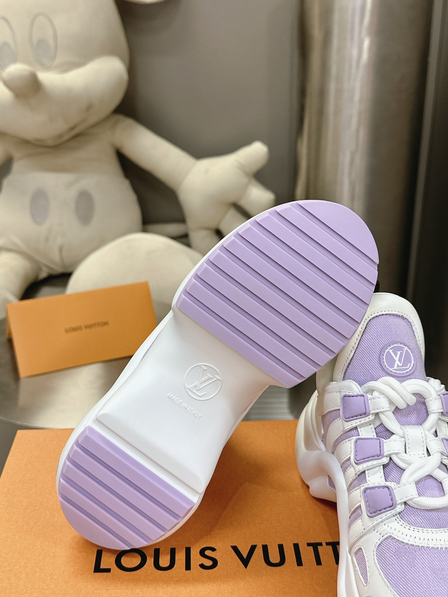 这款鞋子是AAAAA 1:1 质量 (非常棒). 使用了和原版一模一样的材料. 商标部分也保持了和路易威登/Louis Vuitton一样. 图片拍摄是实物鞋子拍摄, 您所收到的实物保证和我们图片一模一样.