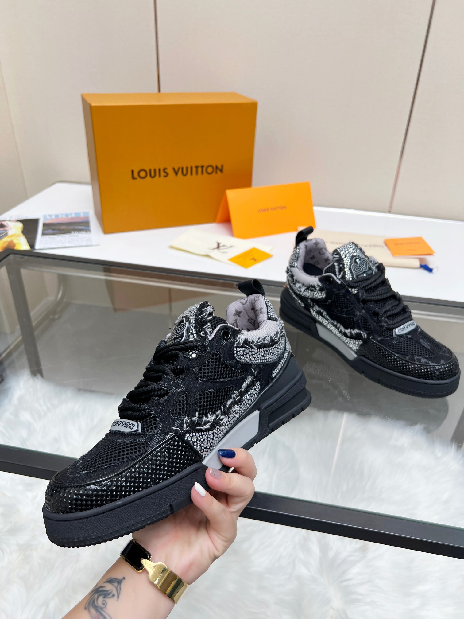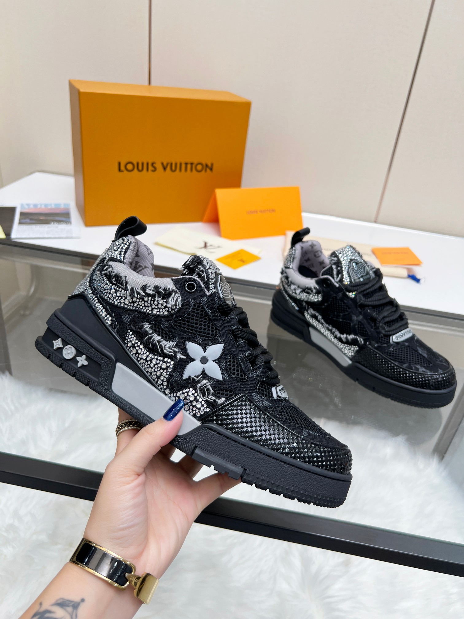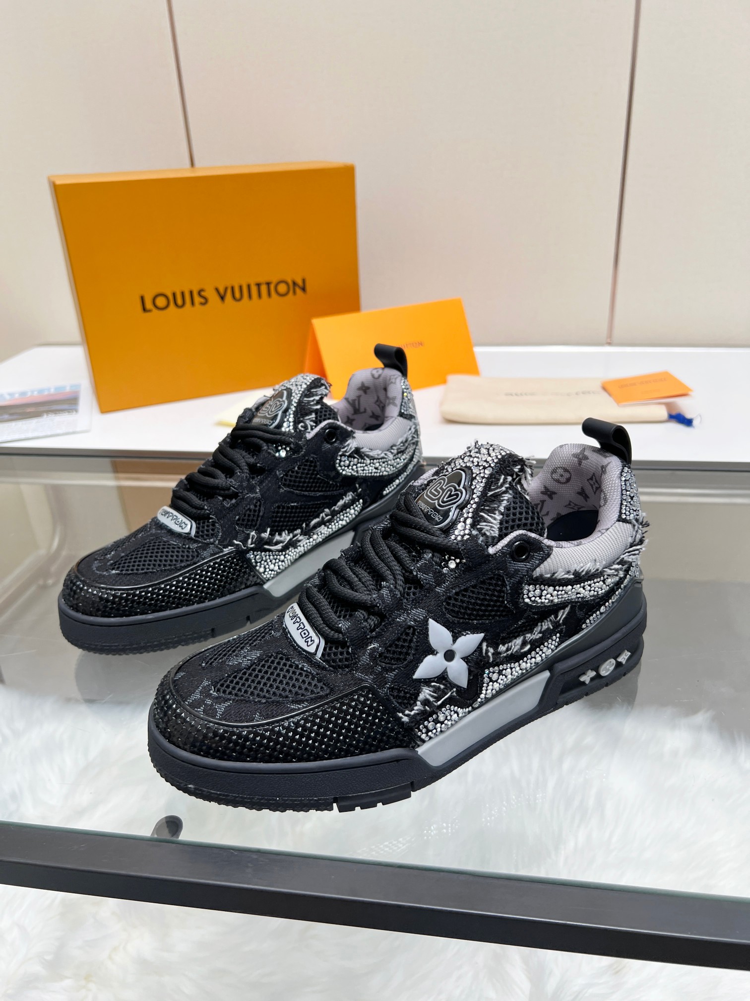 这款鞋子是AAAAA 1:1 质量 (非常棒). 使用了和原版一模一样的材料. 商标部分也保持了和路易威登/Louis Vuitton一样. 图片拍摄是实物鞋子拍摄, 您所收到的实物保证和我们图片一模一样.