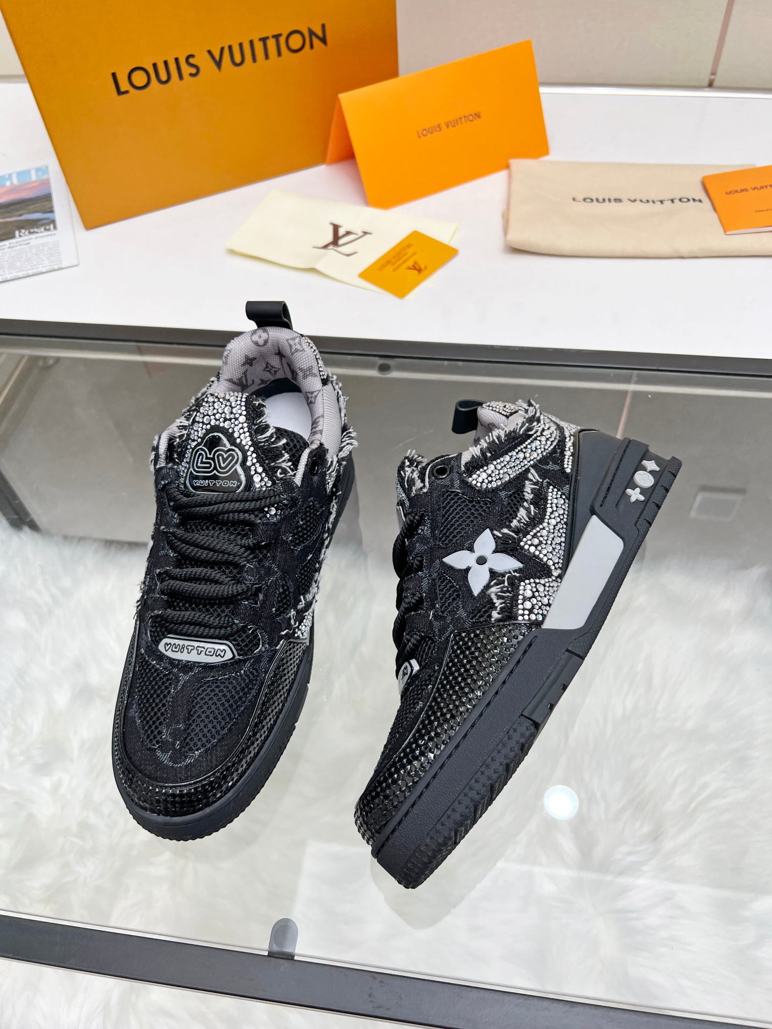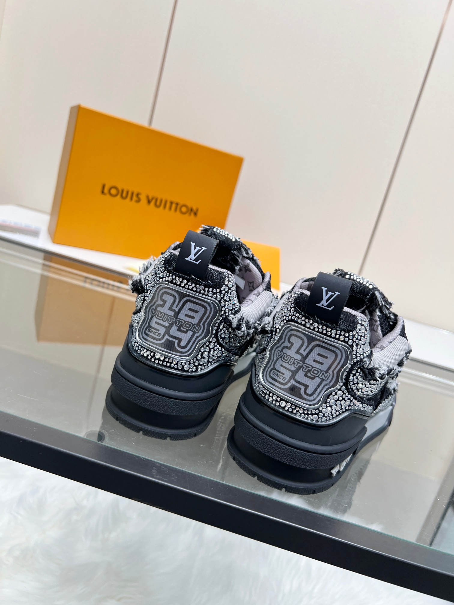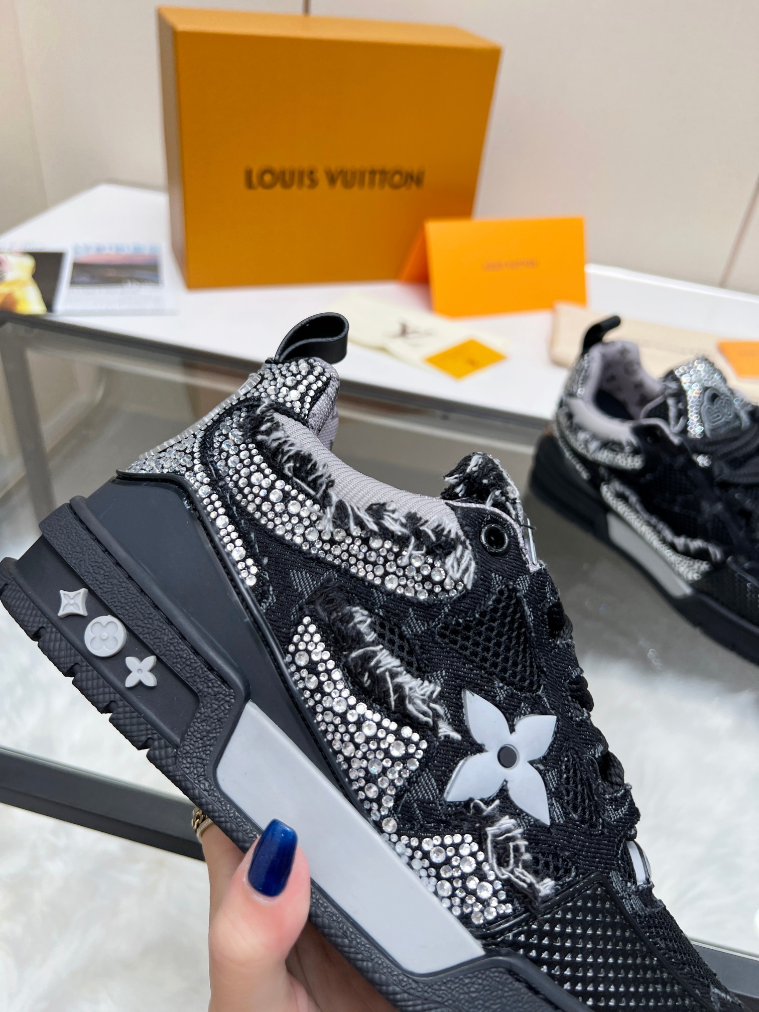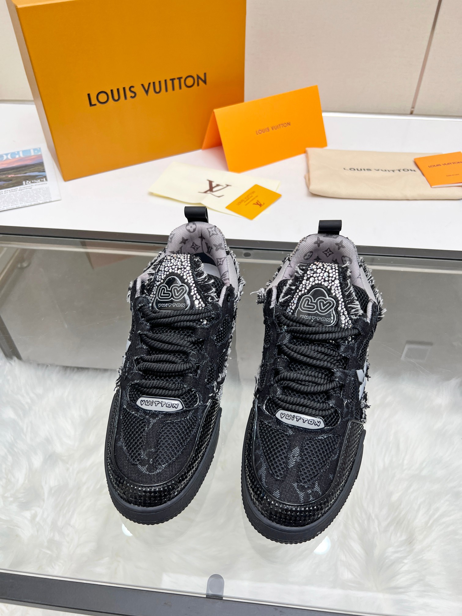 这款鞋子是AAAAA 1:1 质量 (非常棒). 使用了和原版一模一样的材料. 商标部分也保持了和路易威登/Louis Vuitton一样. 图片拍摄是实物鞋子拍摄, 您所收到的实物保证和我们图片一模一样.