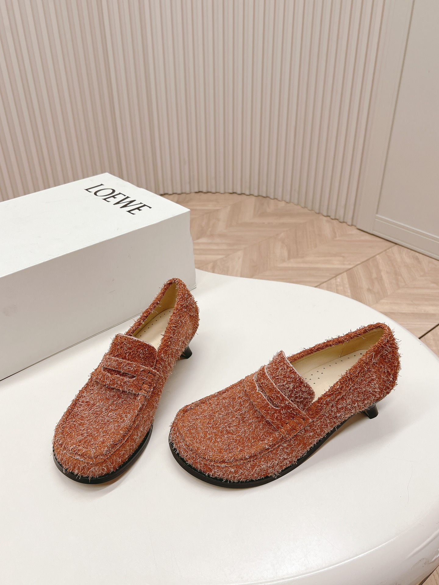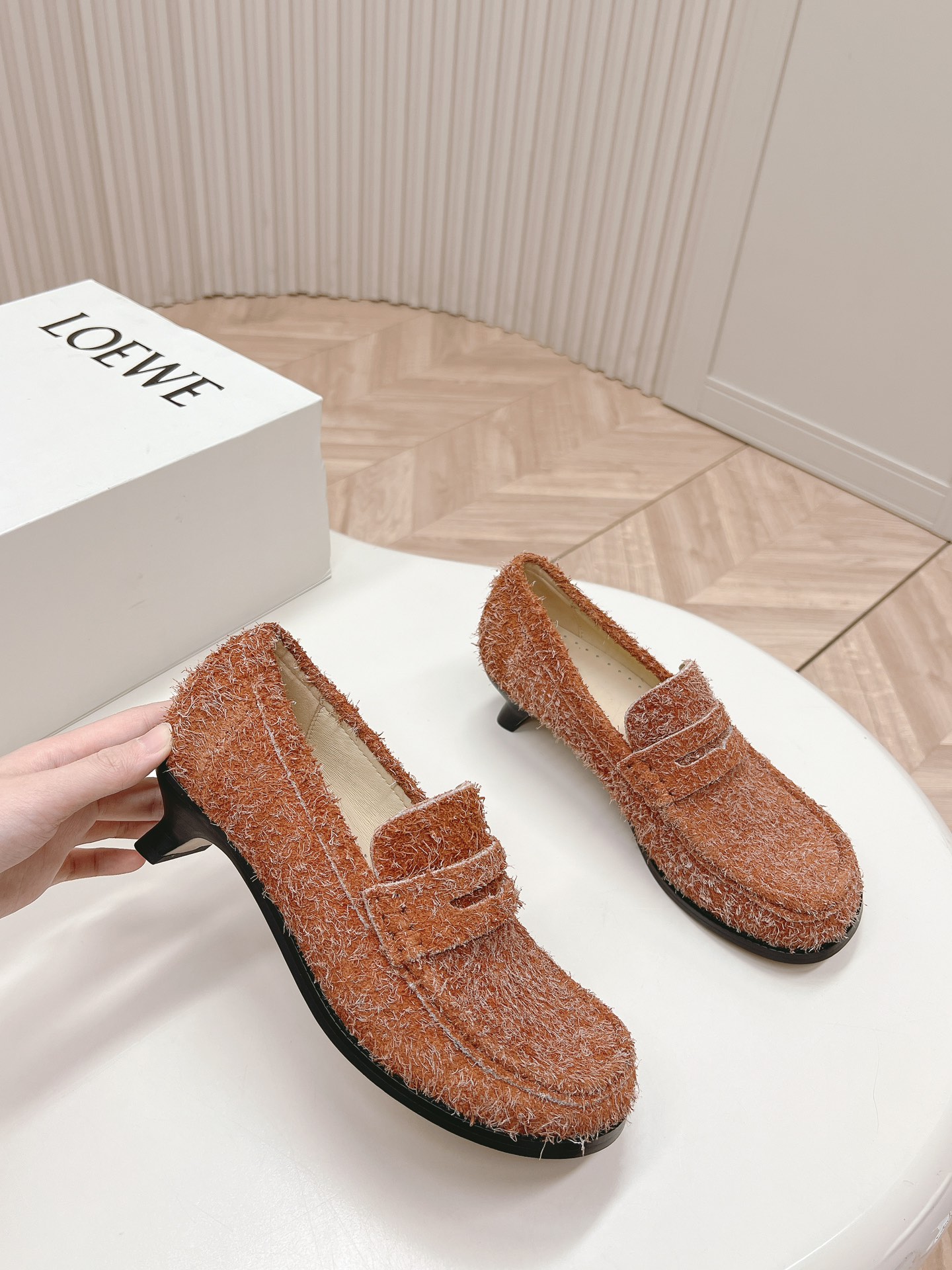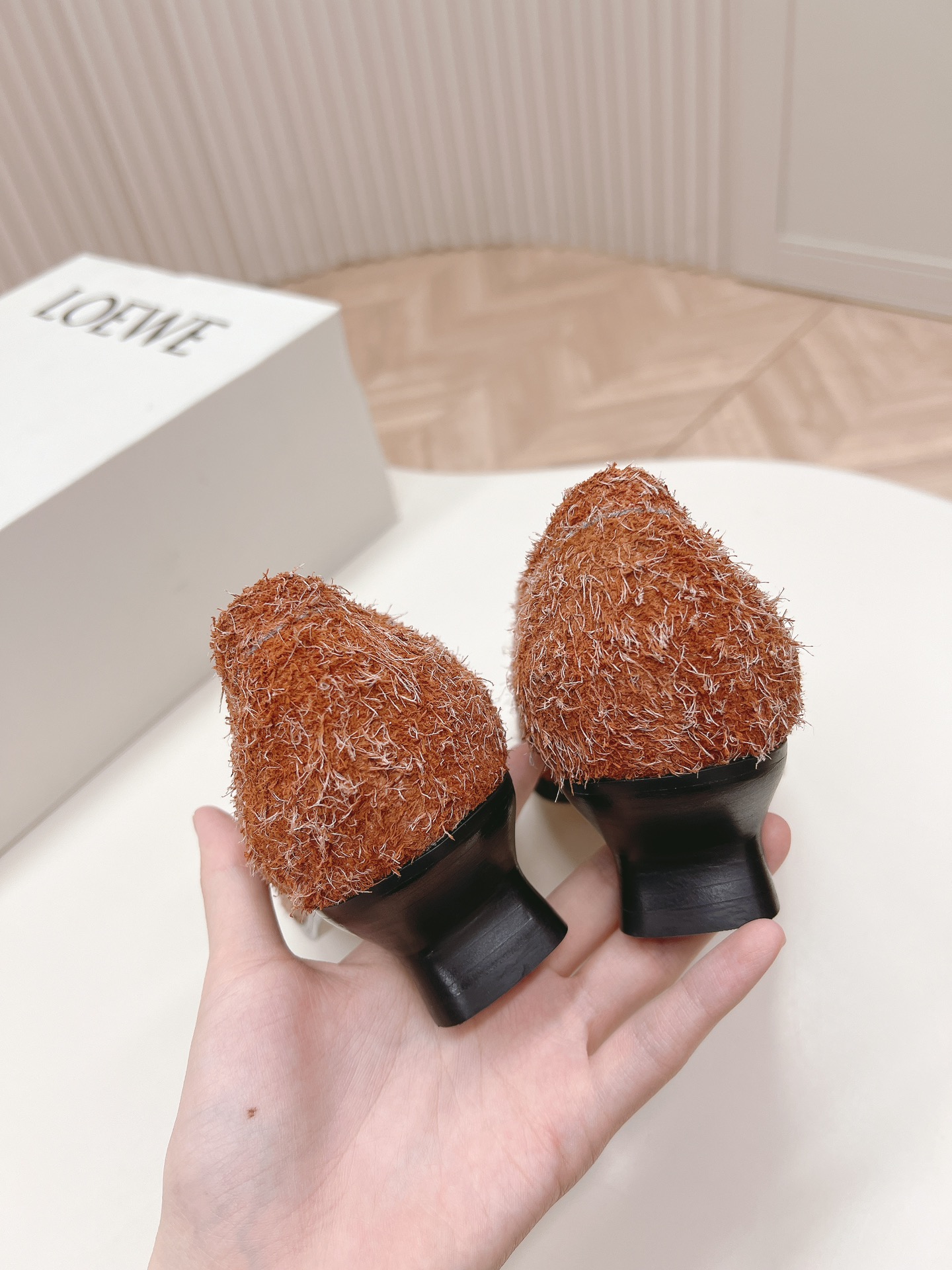 这款鞋子是AAAAA 1:1 质量 (非常棒). 使用了和原版一模一样的材料. 商标部分也保持了和罗意威/Loewe一样. 图片拍摄是实物鞋子拍摄, 您所收到的实物保证和我们图片一模一样.