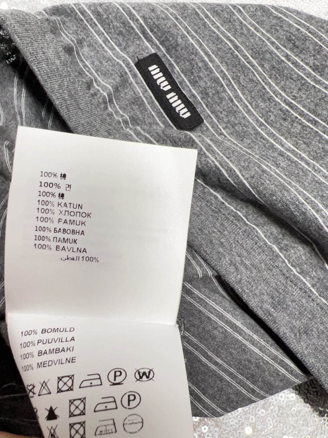 这款衣服是AAAAA 1:1 质量 (非常棒). 使用了和原版一模一样的材料. 商标部分也保持了和缪缪/Miu Miu一样. 图片拍摄是实物衣服拍摄, 您所收到的实物保证和我们图片一模一样.