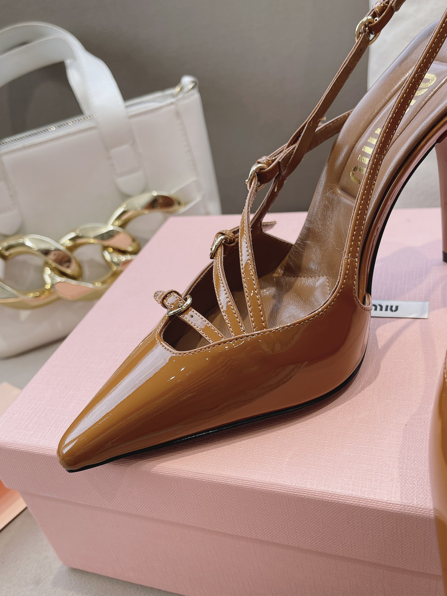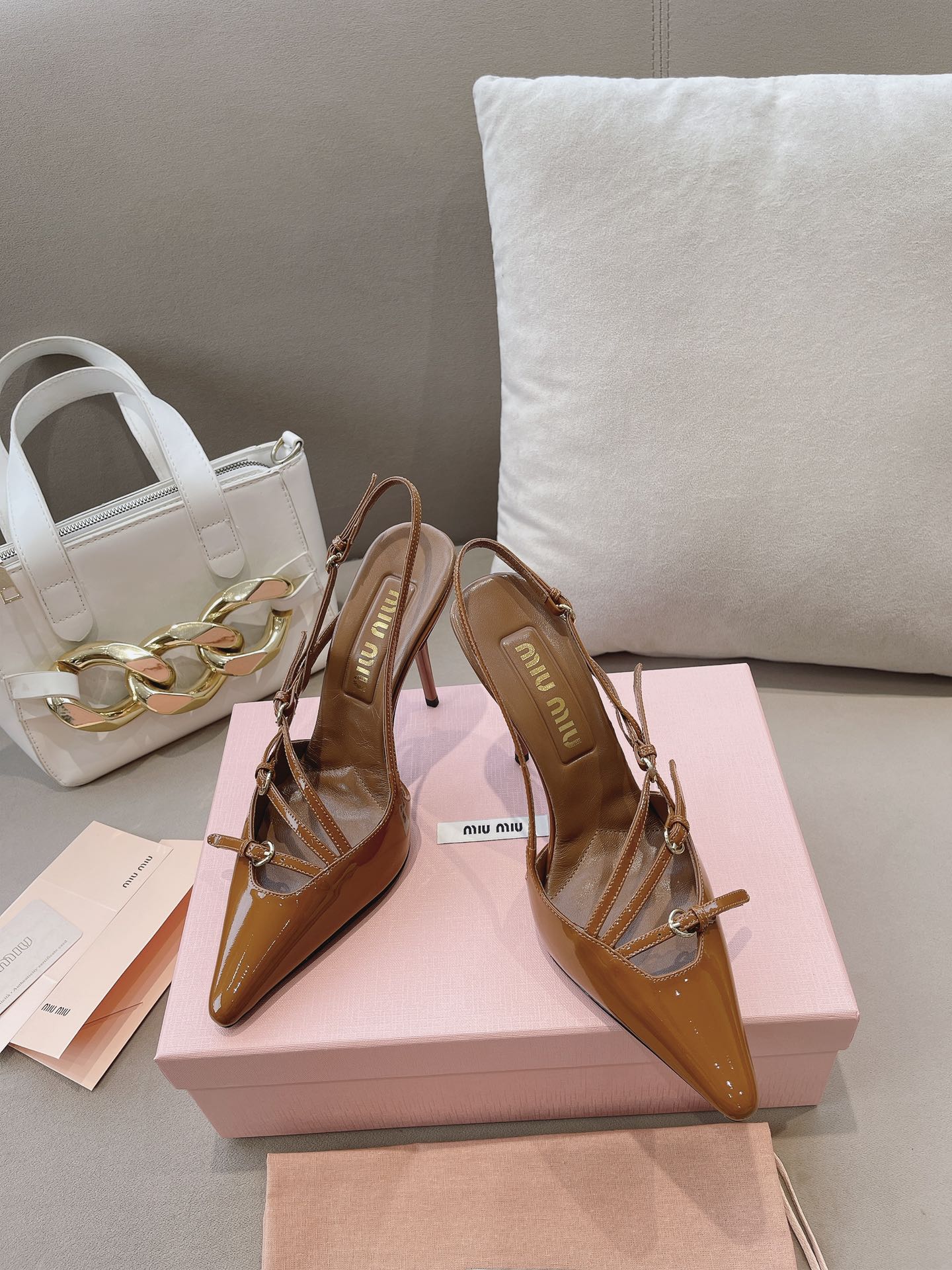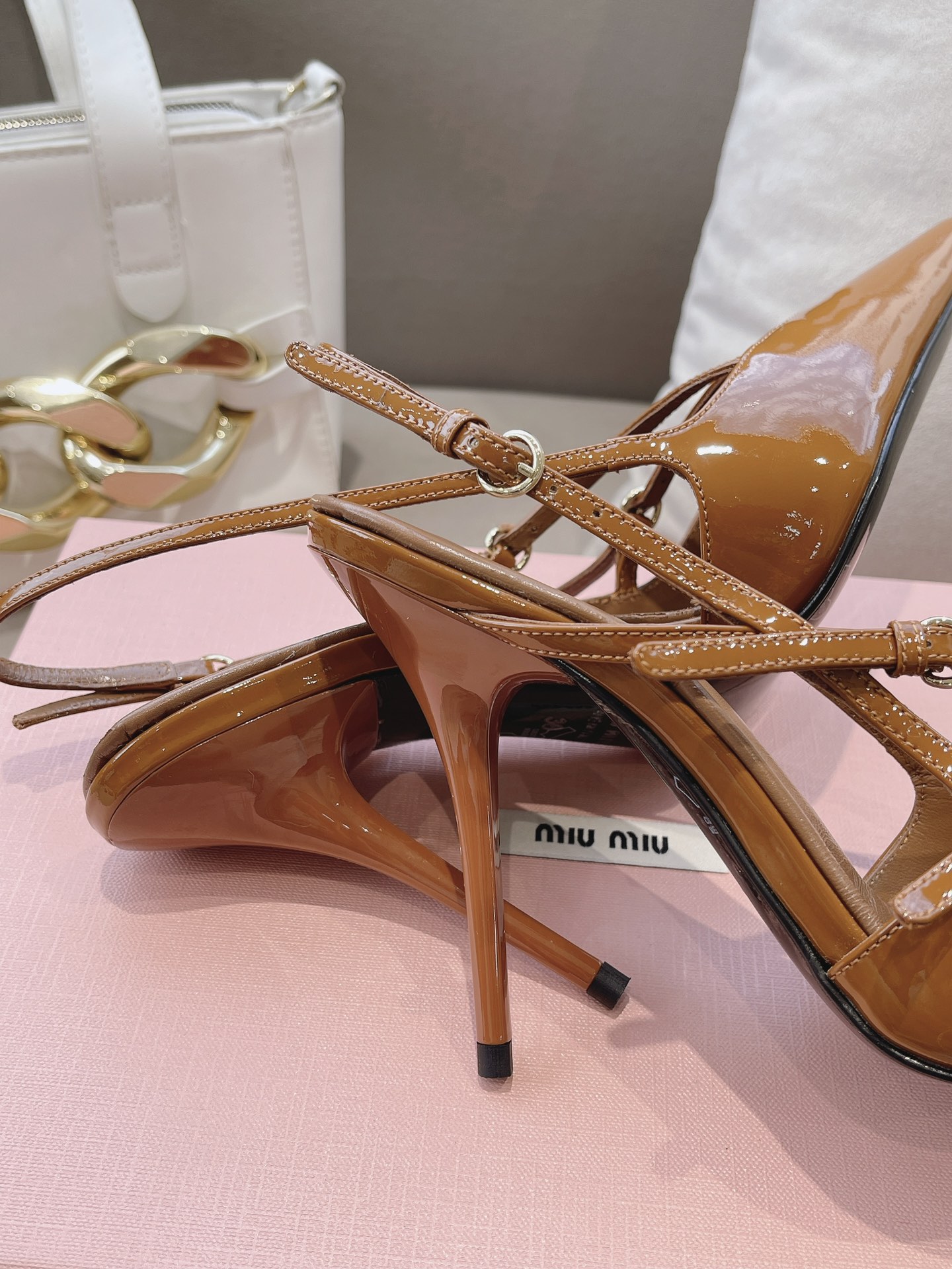 这款鞋子是AAAAA 1:1 质量 (非常棒). 使用了和原版一模一样的材料. 商标部分也保持了和缪缪/Miu Miu一样. 图片拍摄是实物鞋子拍摄, 您所收到的实物保证和我们图片一模一样.