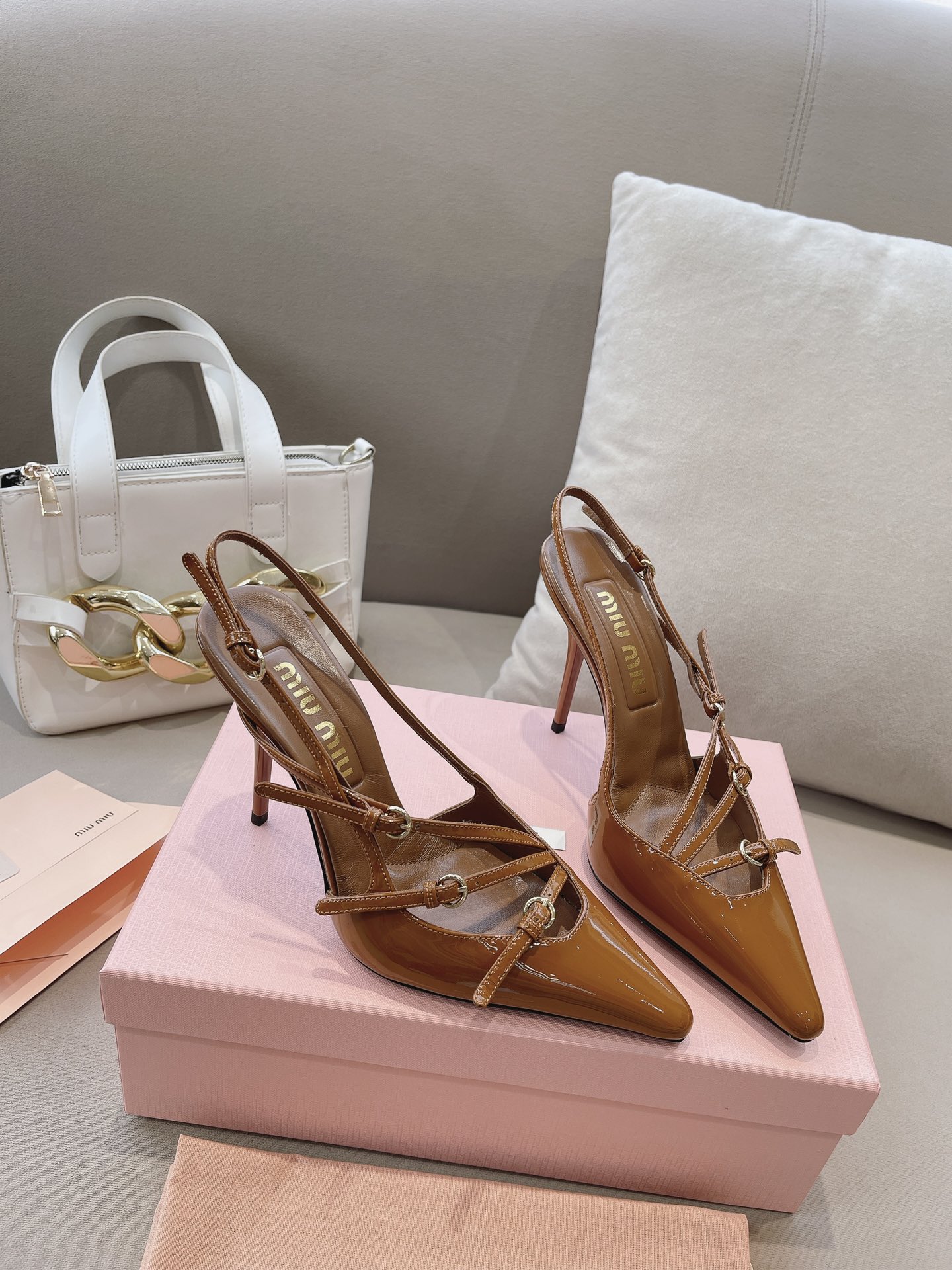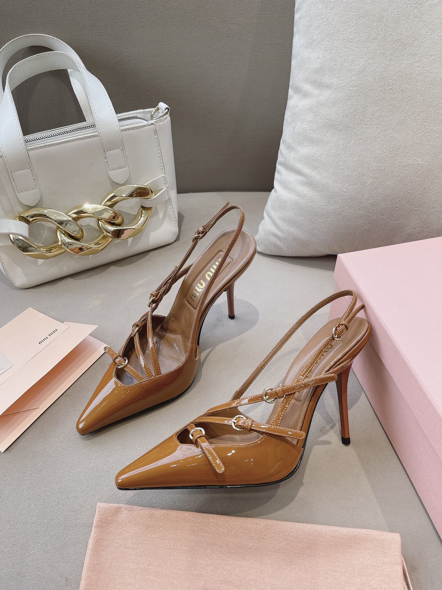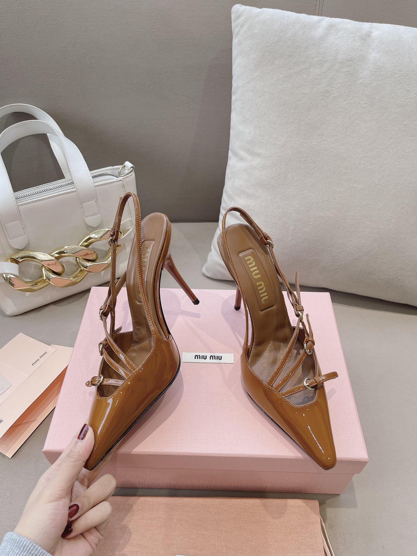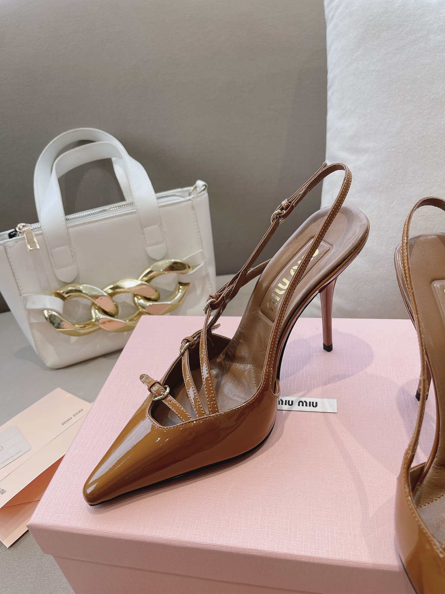 这款鞋子是AAAAA 1:1 质量 (非常棒). 使用了和原版一模一样的材料. 商标部分也保持了和缪缪/Miu Miu一样. 图片拍摄是实物鞋子拍摄, 您所收到的实物保证和我们图片一模一样.