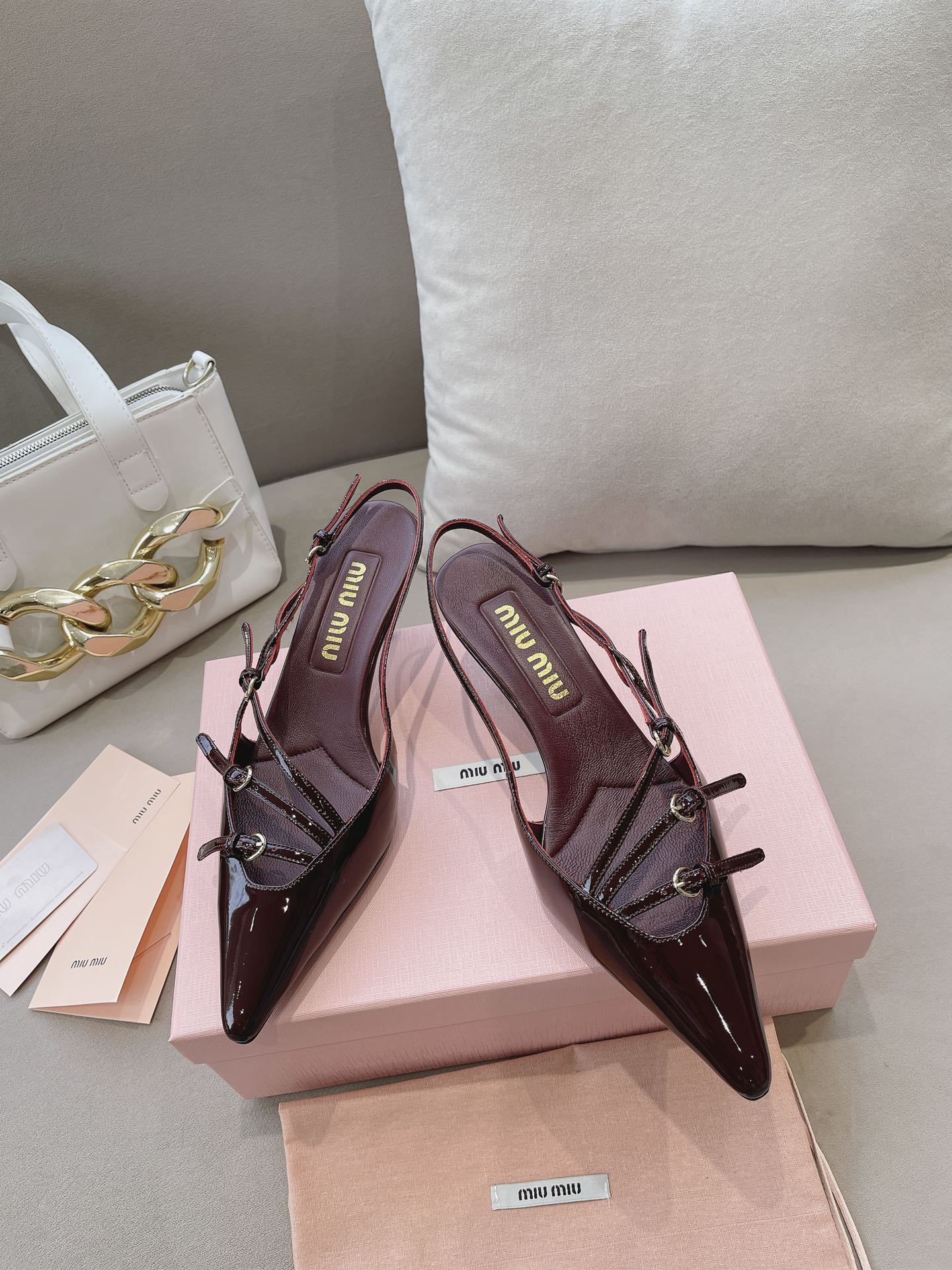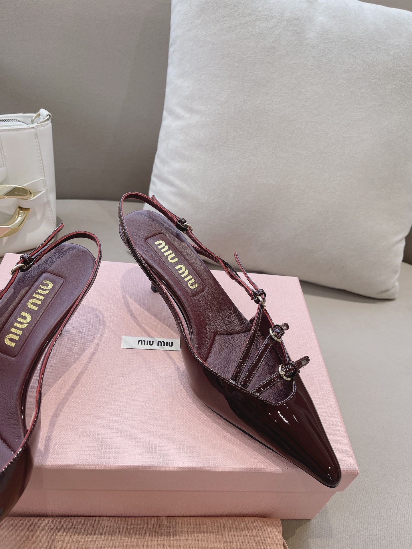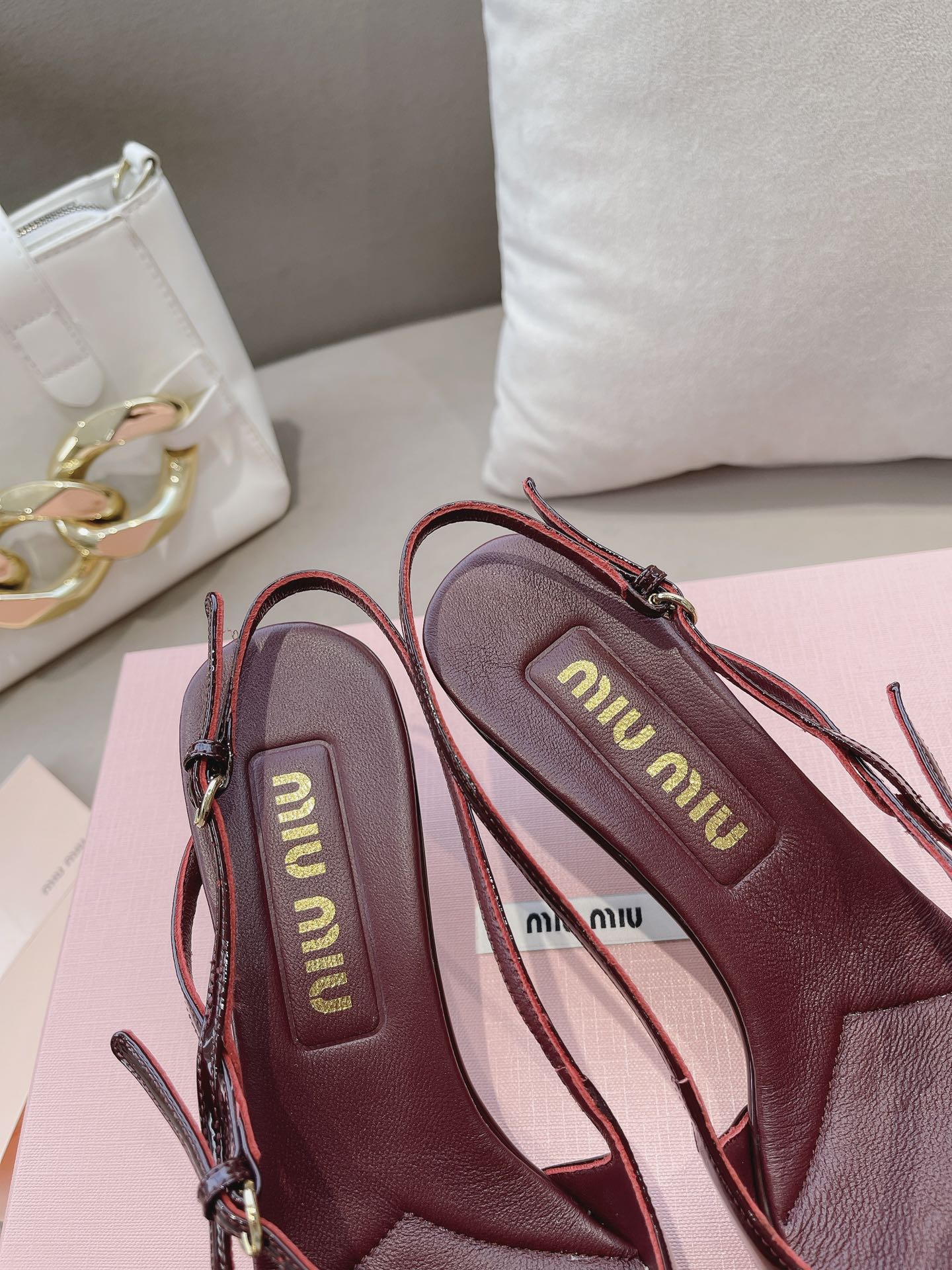 这款鞋子是AAAAA 1:1 质量 (非常棒). 使用了和原版一模一样的材料. 商标部分也保持了和缪缪/Miu Miu一样. 图片拍摄是实物鞋子拍摄, 您所收到的实物保证和我们图片一模一样.