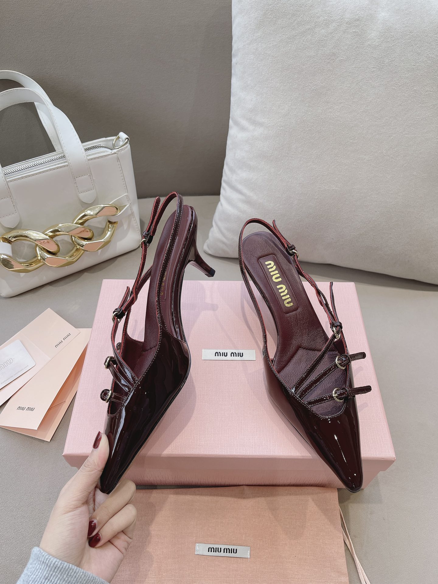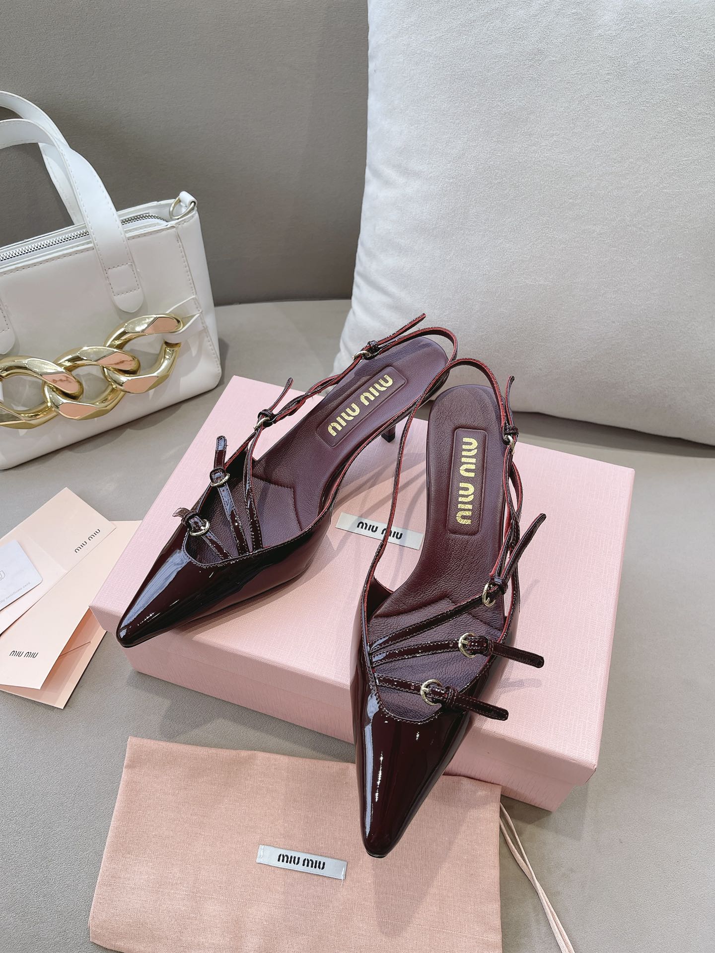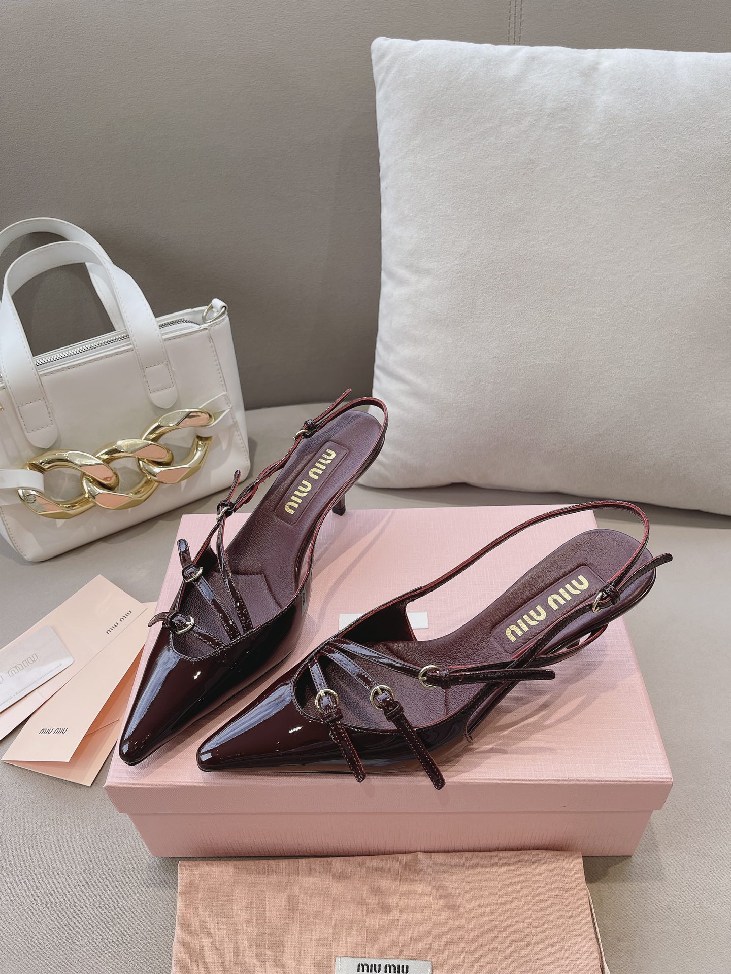 这款鞋子是AAAAA 1:1 质量 (非常棒). 使用了和原版一模一样的材料. 商标部分也保持了和缪缪/Miu Miu一样. 图片拍摄是实物鞋子拍摄, 您所收到的实物保证和我们图片一模一样.