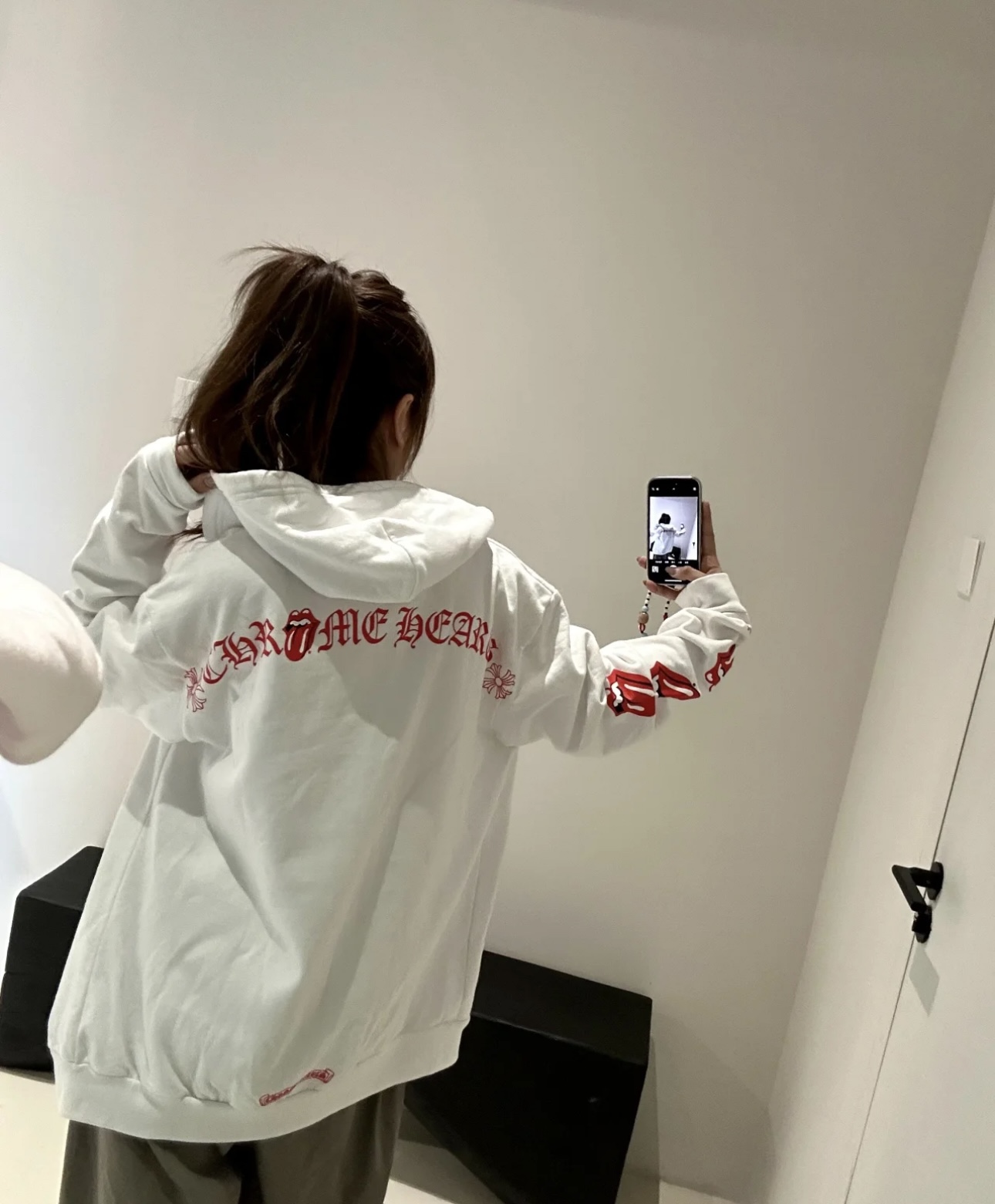 这款衣服是AAAAA 1:1 质量 (非常棒). 使用了和原版一模一样的材料. 商标部分也保持了和克罗心/Chrome Hearts一样. 图片拍摄是实物衣服拍摄, 您所收到的实物保证和我们图片一模一样.