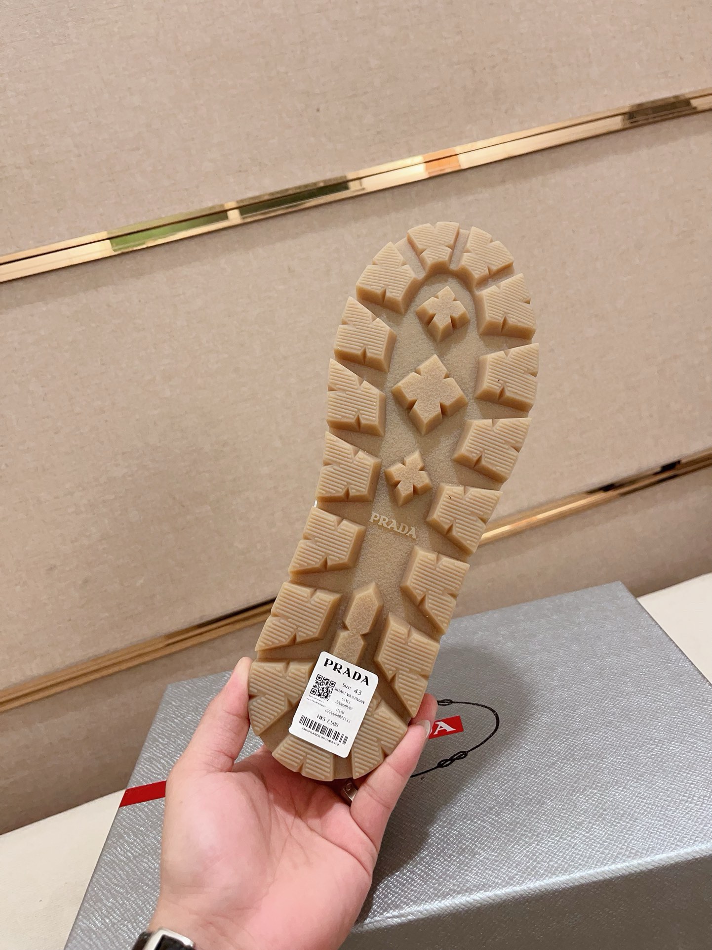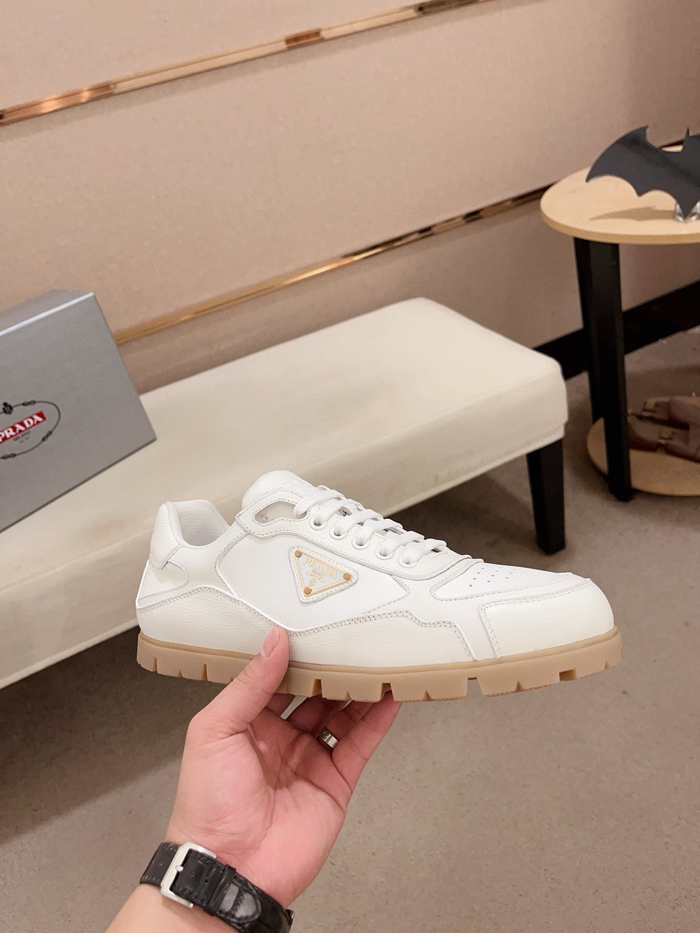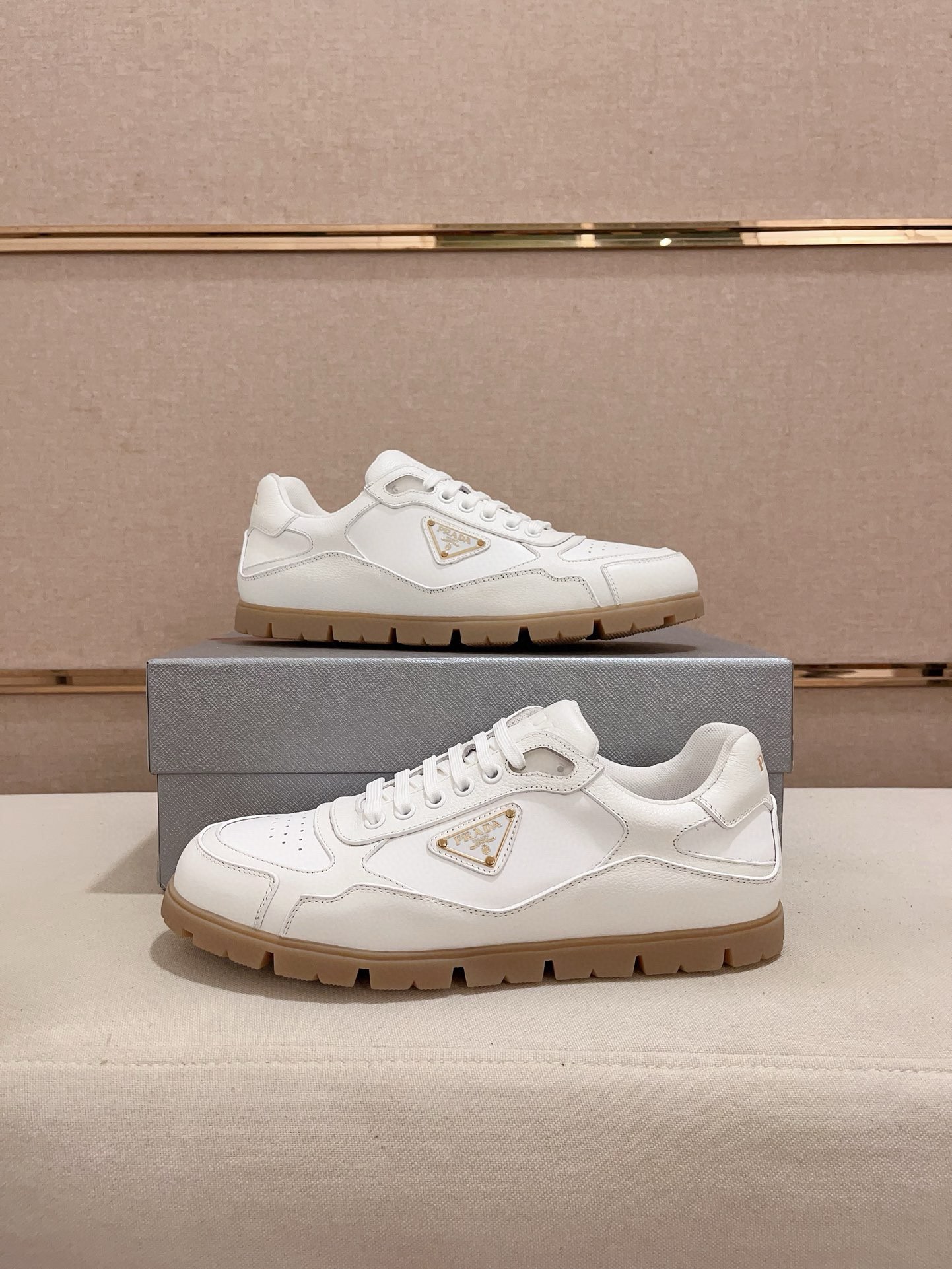 这款鞋子是AAAAA 1:1 质量 (非常棒). 使用了和原版一模一样的材料. 商标部分也保持了和普拉达/Prada一样. 图片拍摄是实物鞋子拍摄, 您所收到的实物保证和我们图片一模一样.