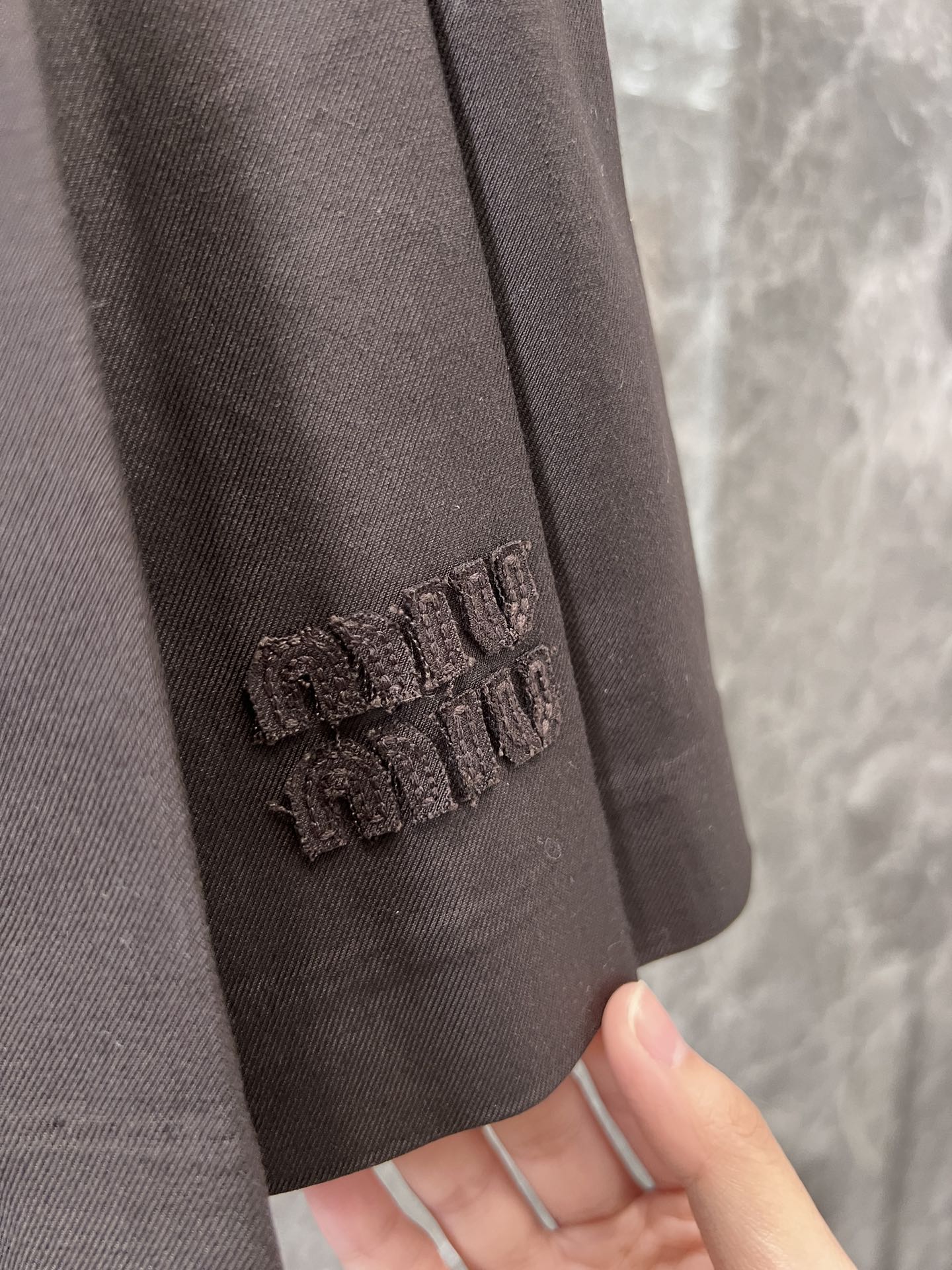 这款衣服是AAAAA 1:1 质量 (非常棒). 使用了和原版一模一样的材料. 商标部分也保持了和缪缪/Miu Miu一样. 图片拍摄是实物衣服拍摄, 您所收到的实物保证和我们图片一模一样.