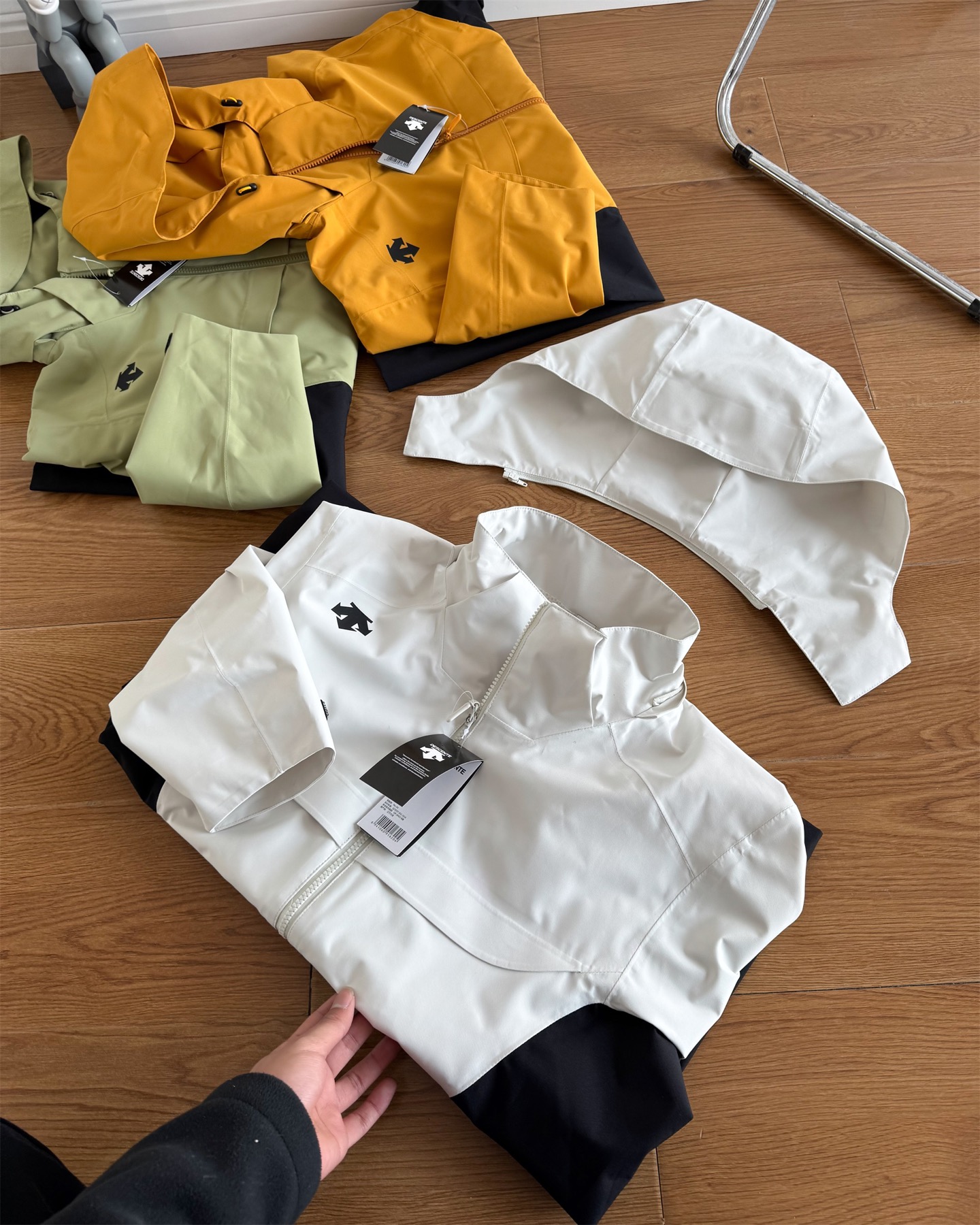 这款衣服是AAAAA 1:1 质量 (非常棒). 使用了和原版一模一样的材料. 商标部分也保持了和Descente一样. 图片拍摄是实物衣服拍摄, 您所收到的实物保证和我们图片一模一样.