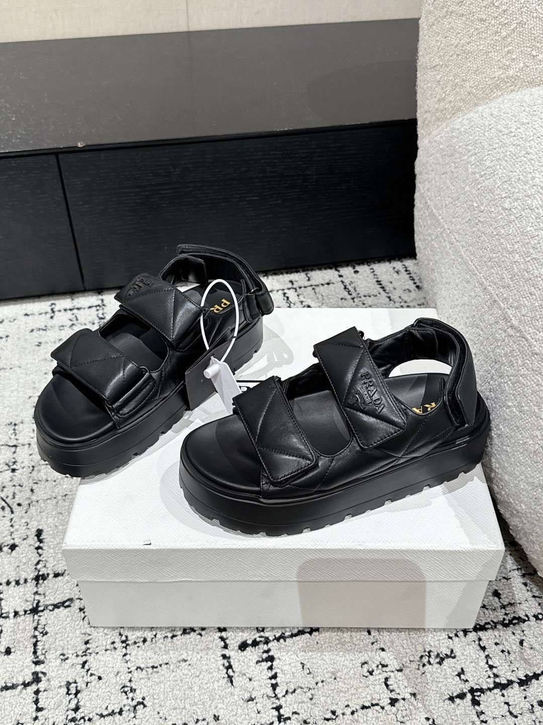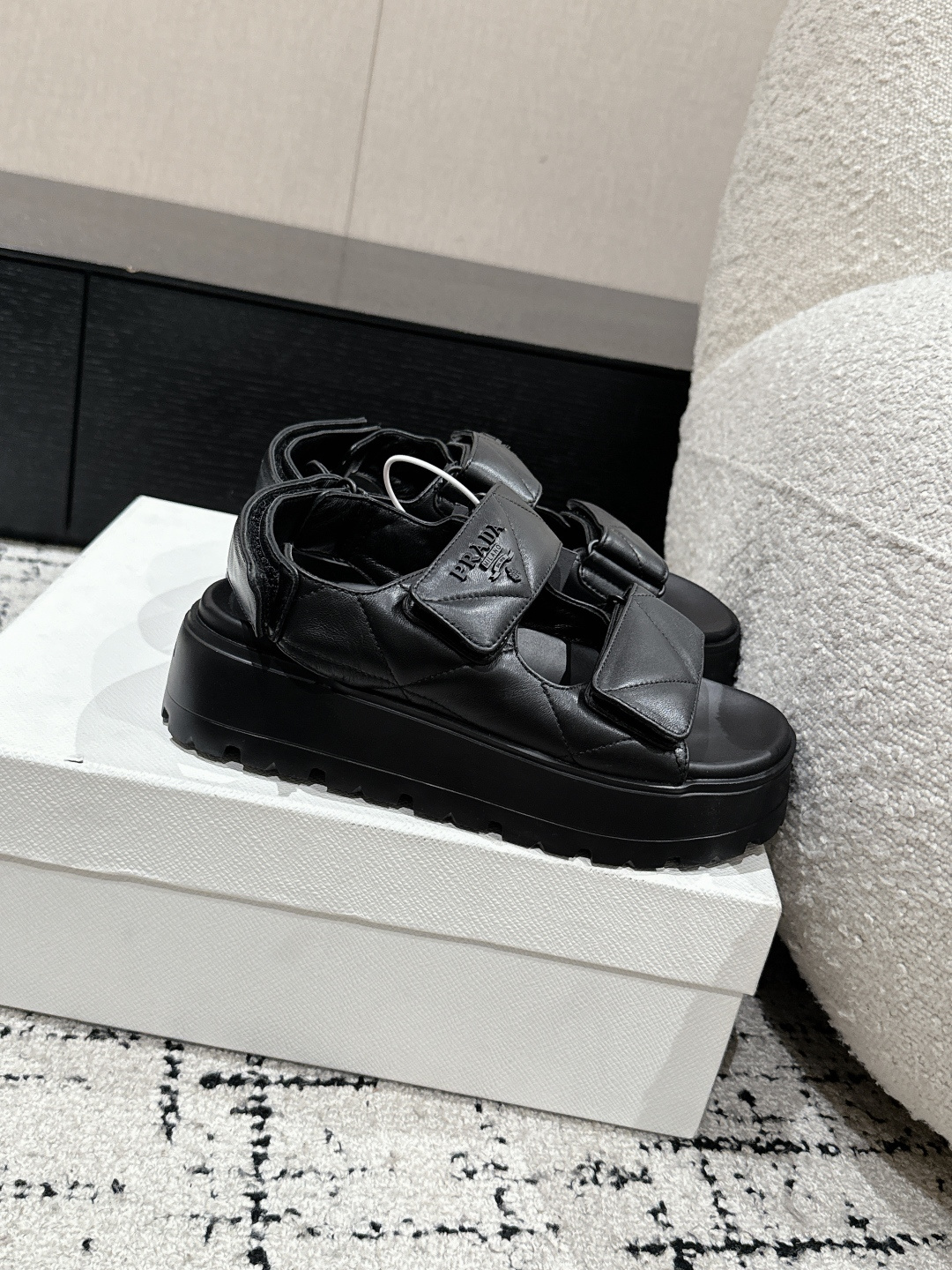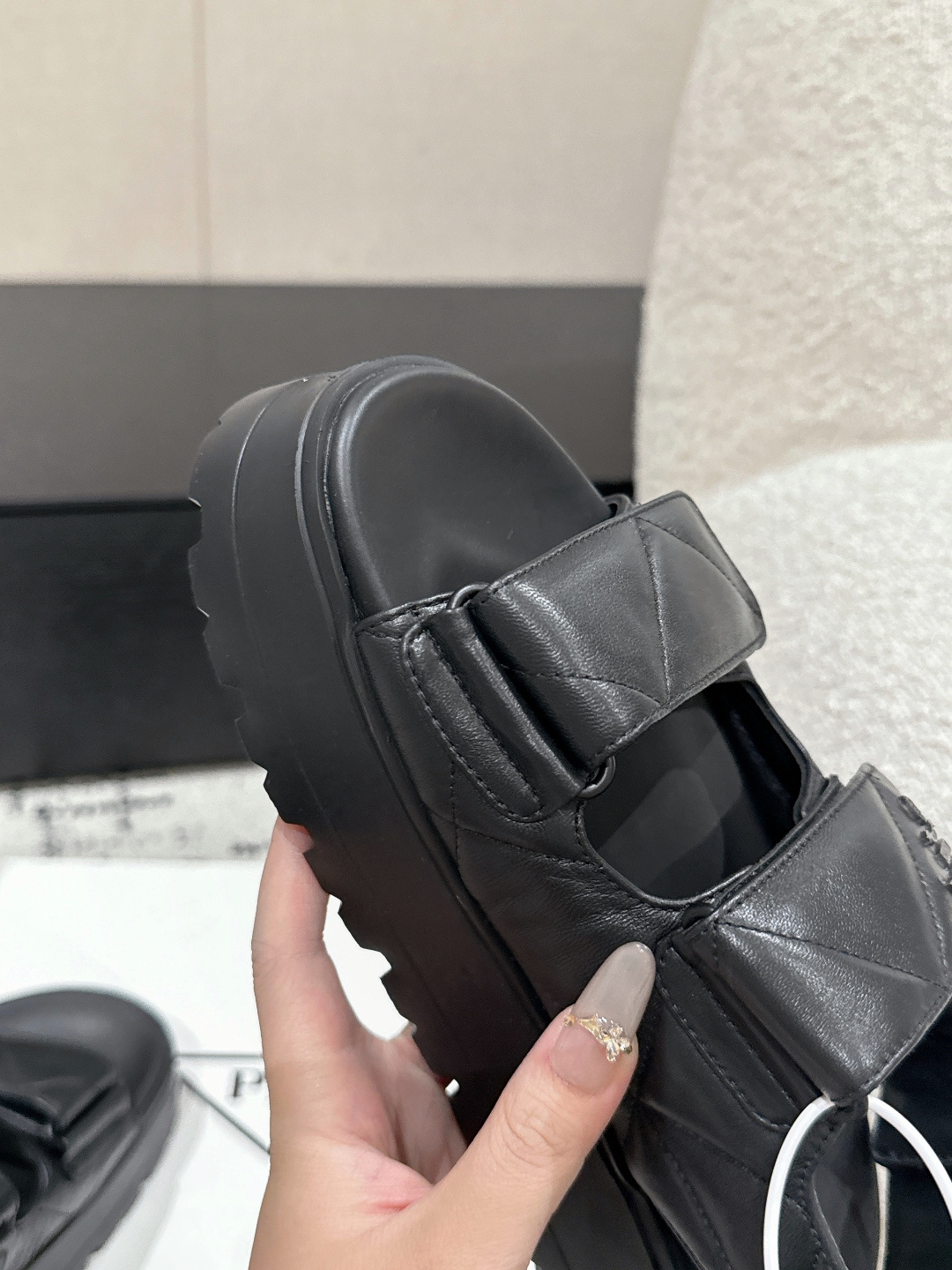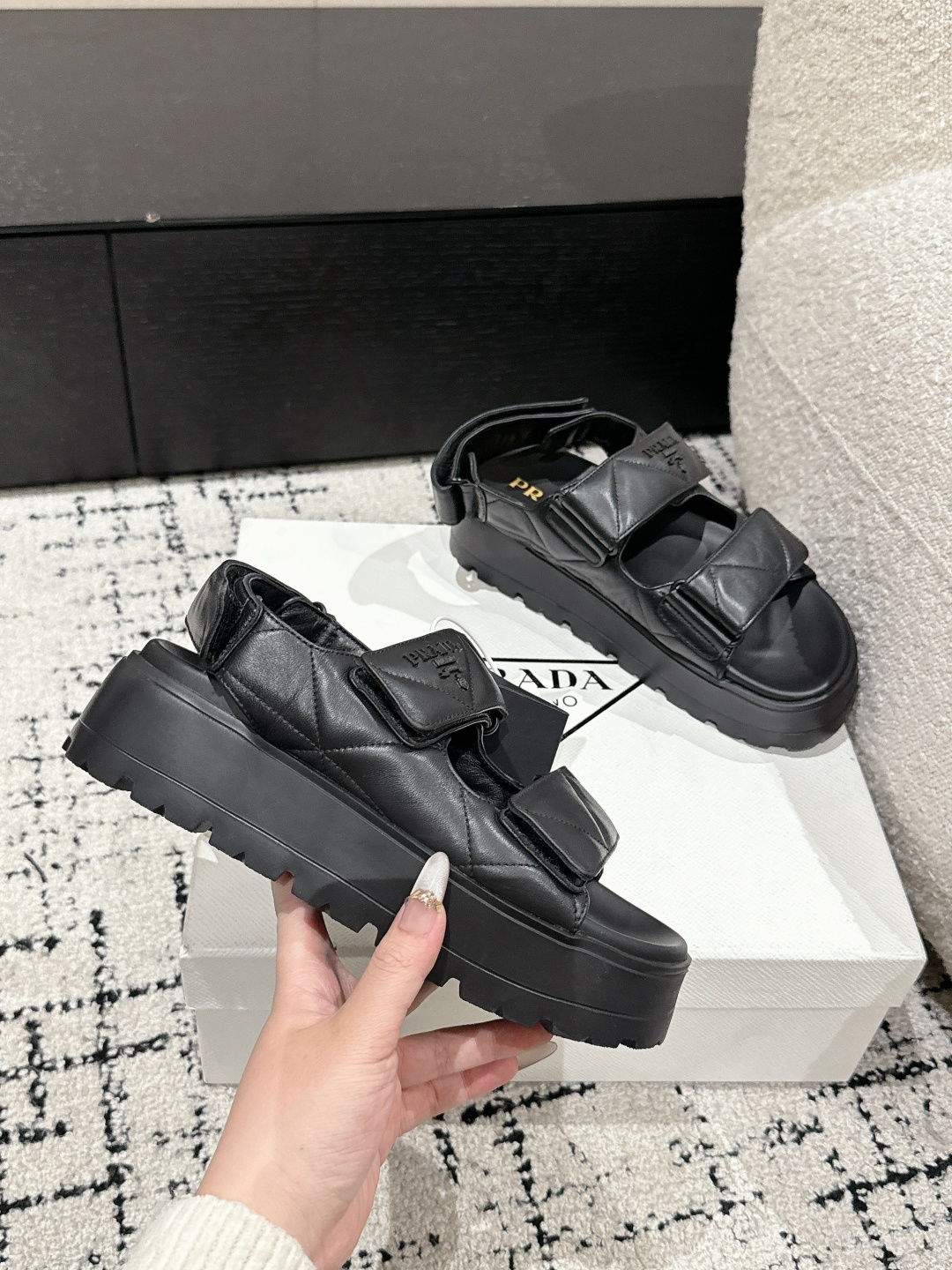 这款鞋子是AAAAA 1:1 质量 (非常棒). 使用了和原版一模一样的材料. 商标部分也保持了和普拉达/Prada一样. 图片拍摄是实物鞋子拍摄, 您所收到的实物保证和我们图片一模一样.