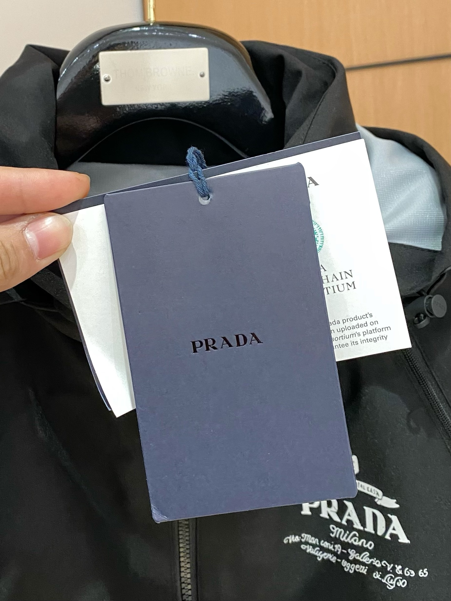 这款衣服是AAAAA 1:1 质量 (非常棒). 使用了和原版一模一样的材料. 商标部分也保持了和普拉达/Prada一样. 图片拍摄是实物衣服拍摄, 您所收到的实物保证和我们图片一模一样.