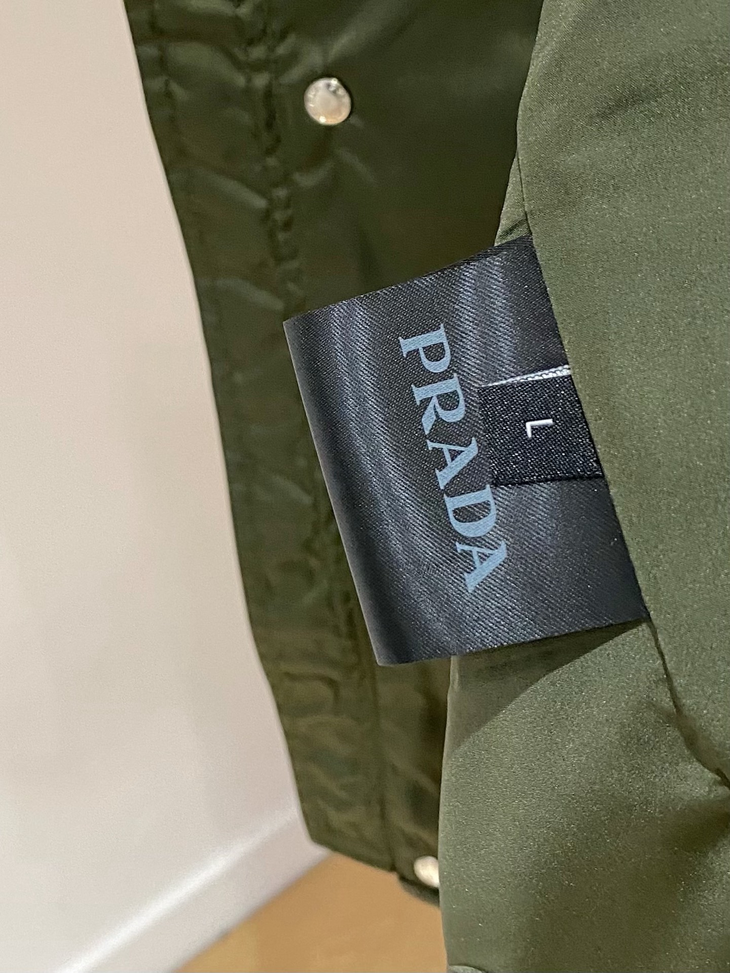 这款衣服是AAAAA 1:1 质量 (非常棒). 使用了和原版一模一样的材料. 商标部分也保持了和普拉达/Prada一样. 图片拍摄是实物衣服拍摄, 您所收到的实物保证和我们图片一模一样.