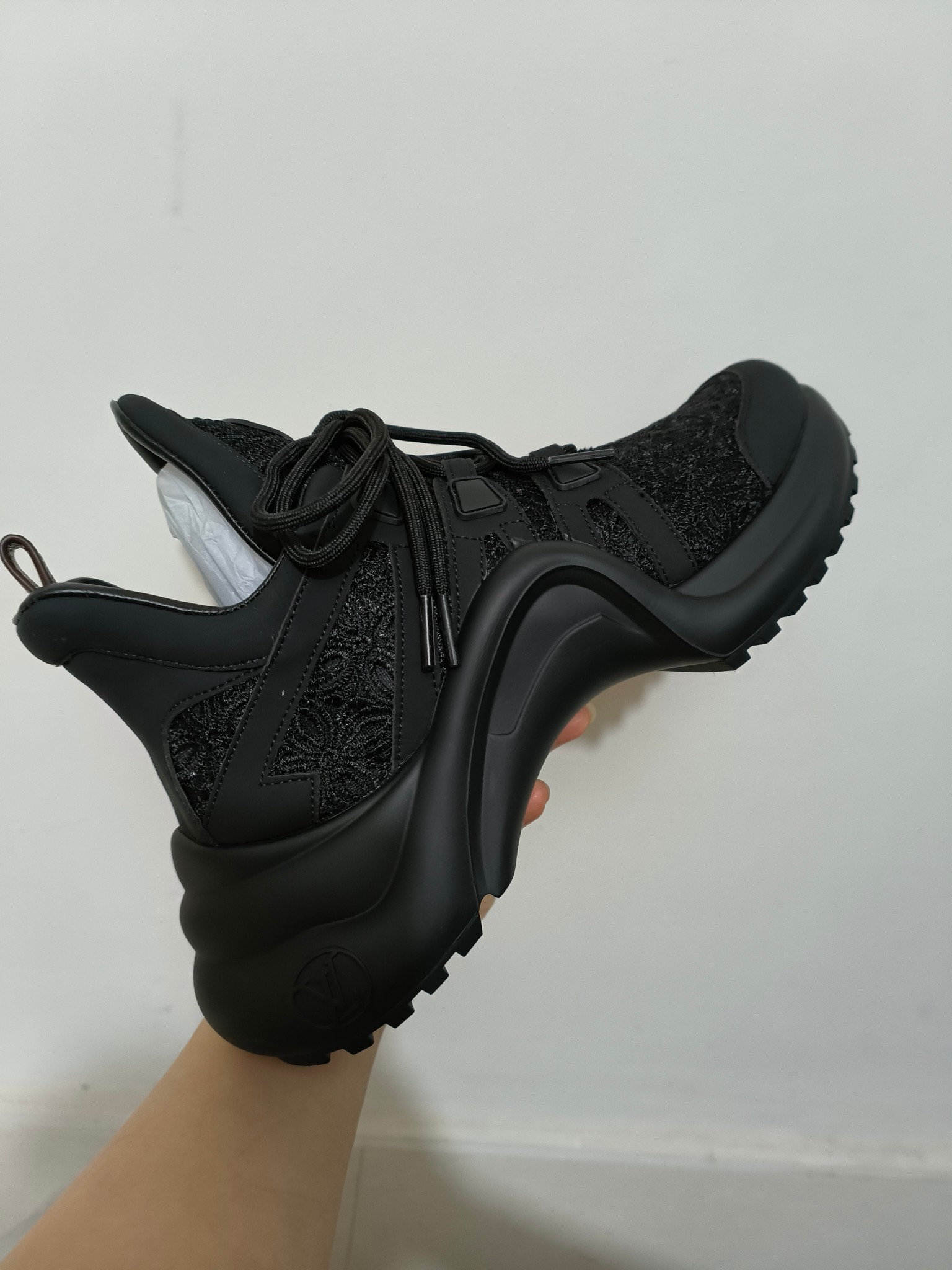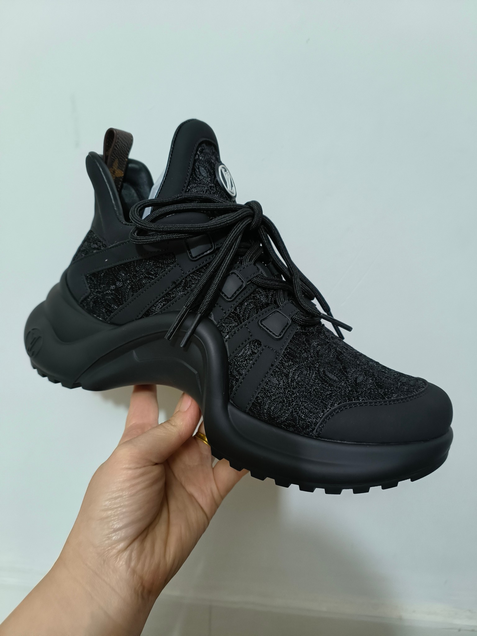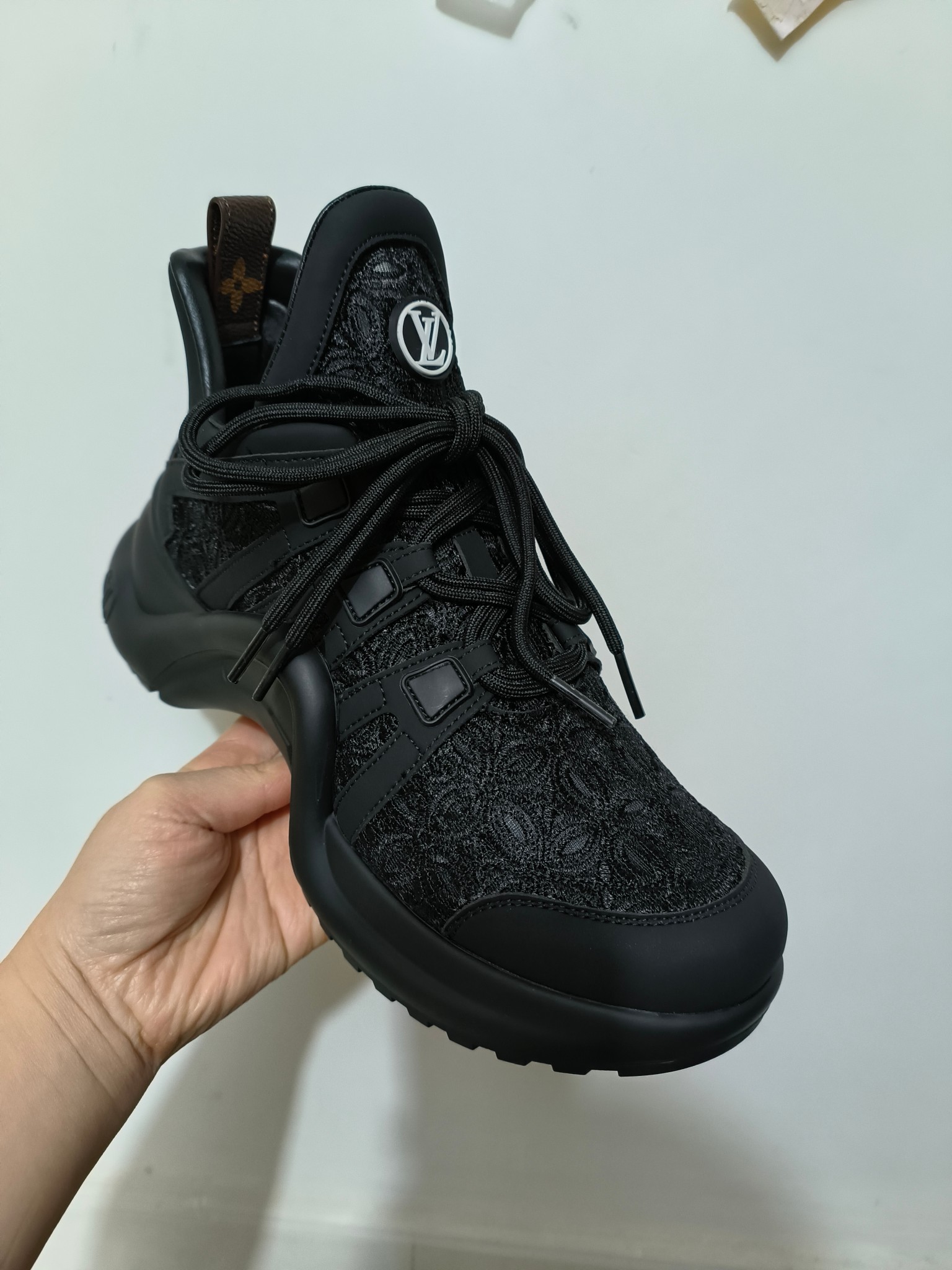 这款鞋子是AAAAA 1:1 质量 (非常棒). 使用了和原版一模一样的材料. 商标部分也保持了和路易威登/Louis Vuitton一样. 图片拍摄是实物鞋子拍摄, 您所收到的实物保证和我们图片一模一样.