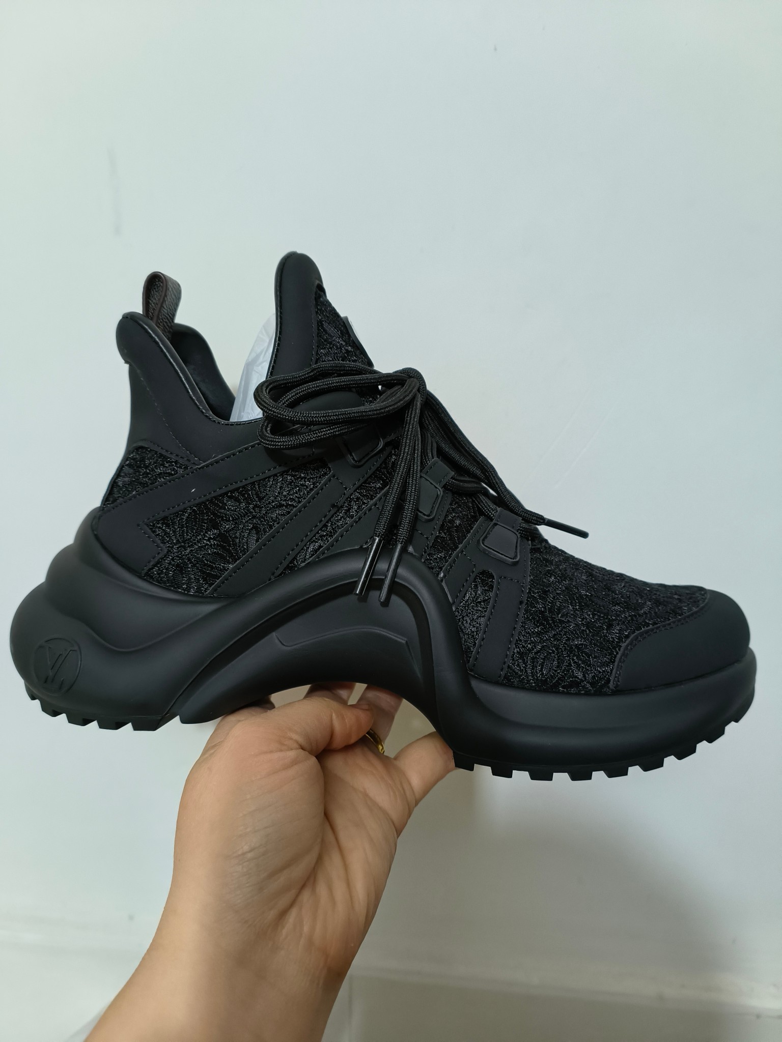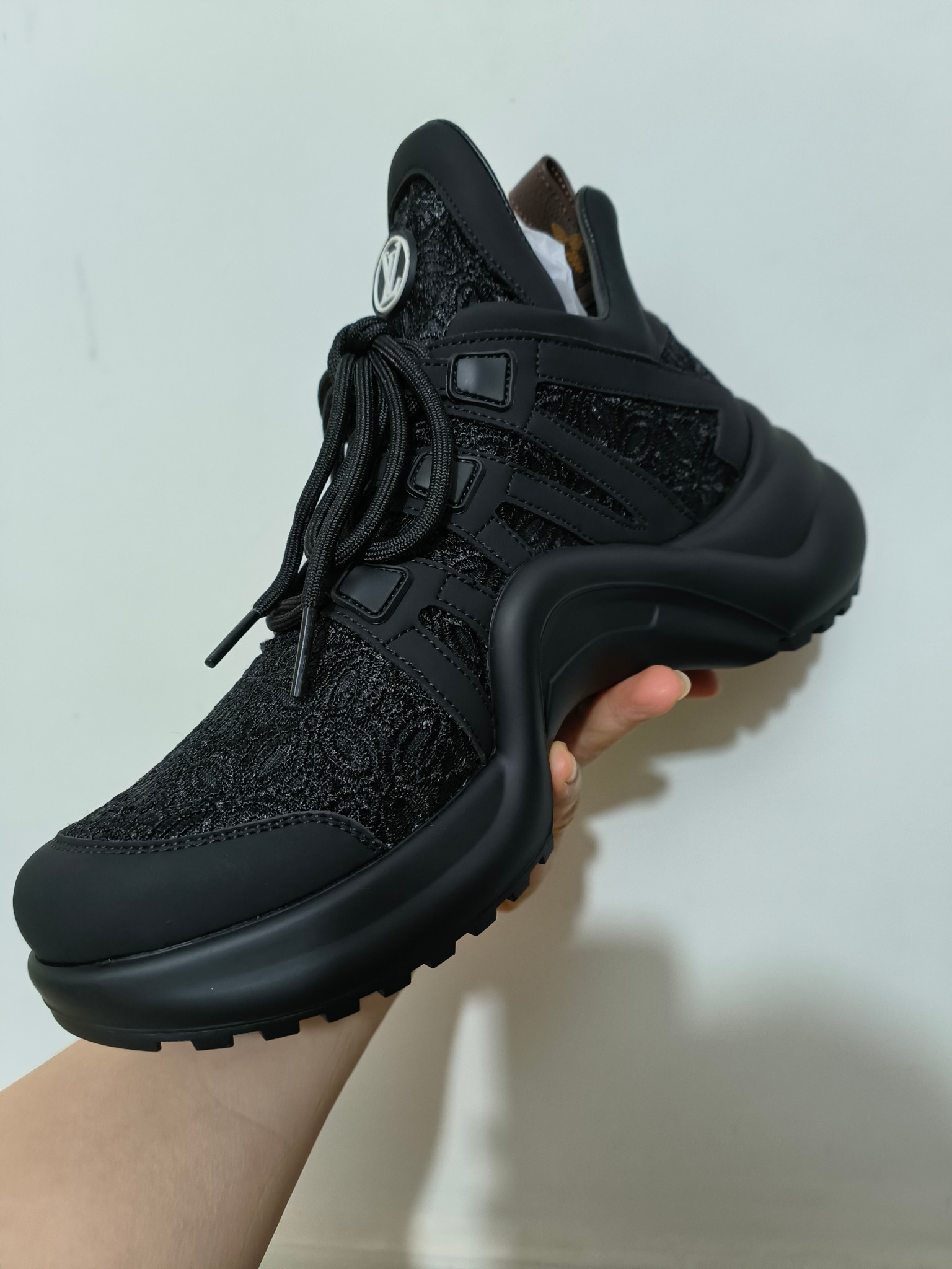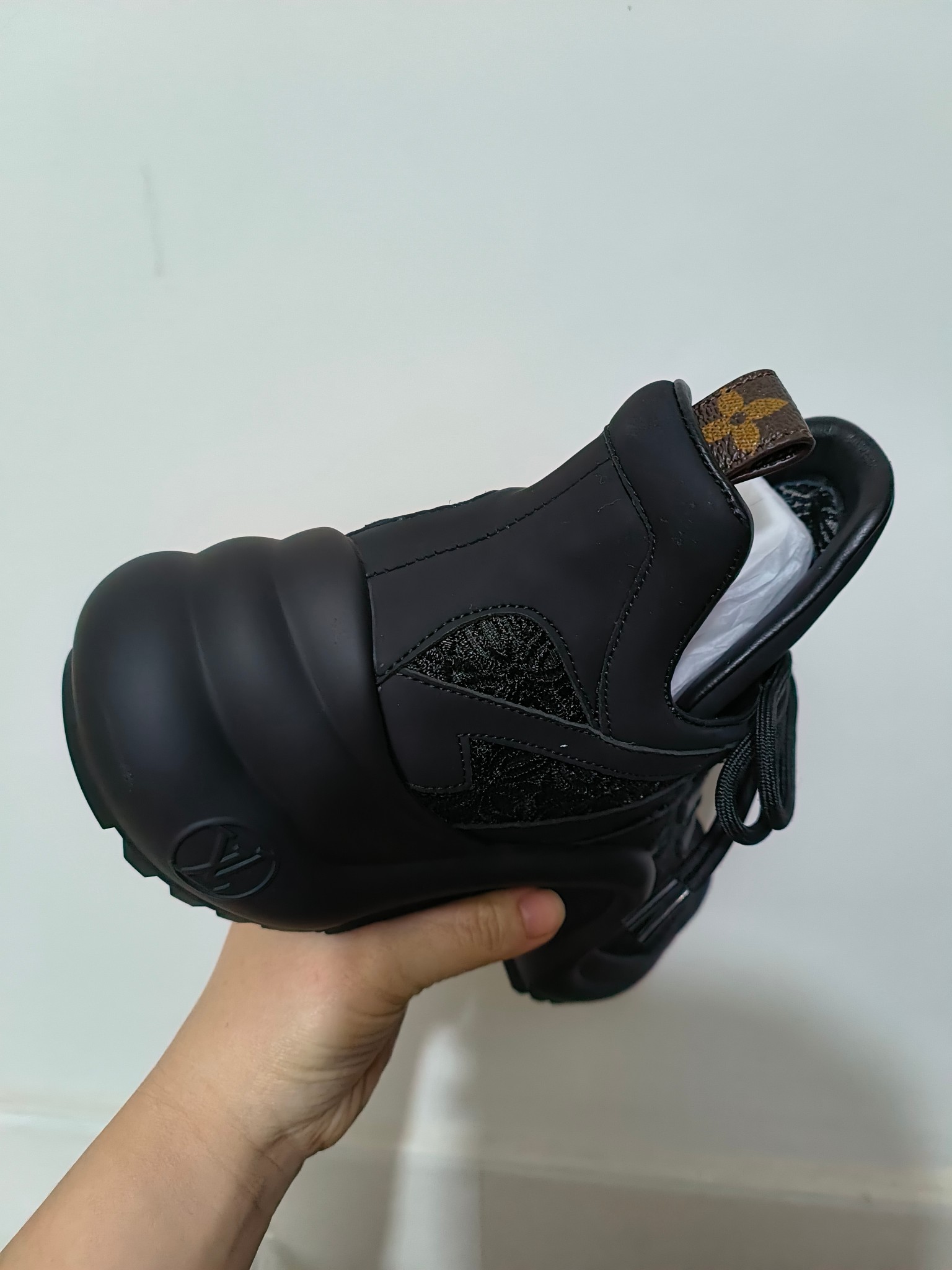 这款鞋子是AAAAA 1:1 质量 (非常棒). 使用了和原版一模一样的材料. 商标部分也保持了和路易威登/Louis Vuitton一样. 图片拍摄是实物鞋子拍摄, 您所收到的实物保证和我们图片一模一样.